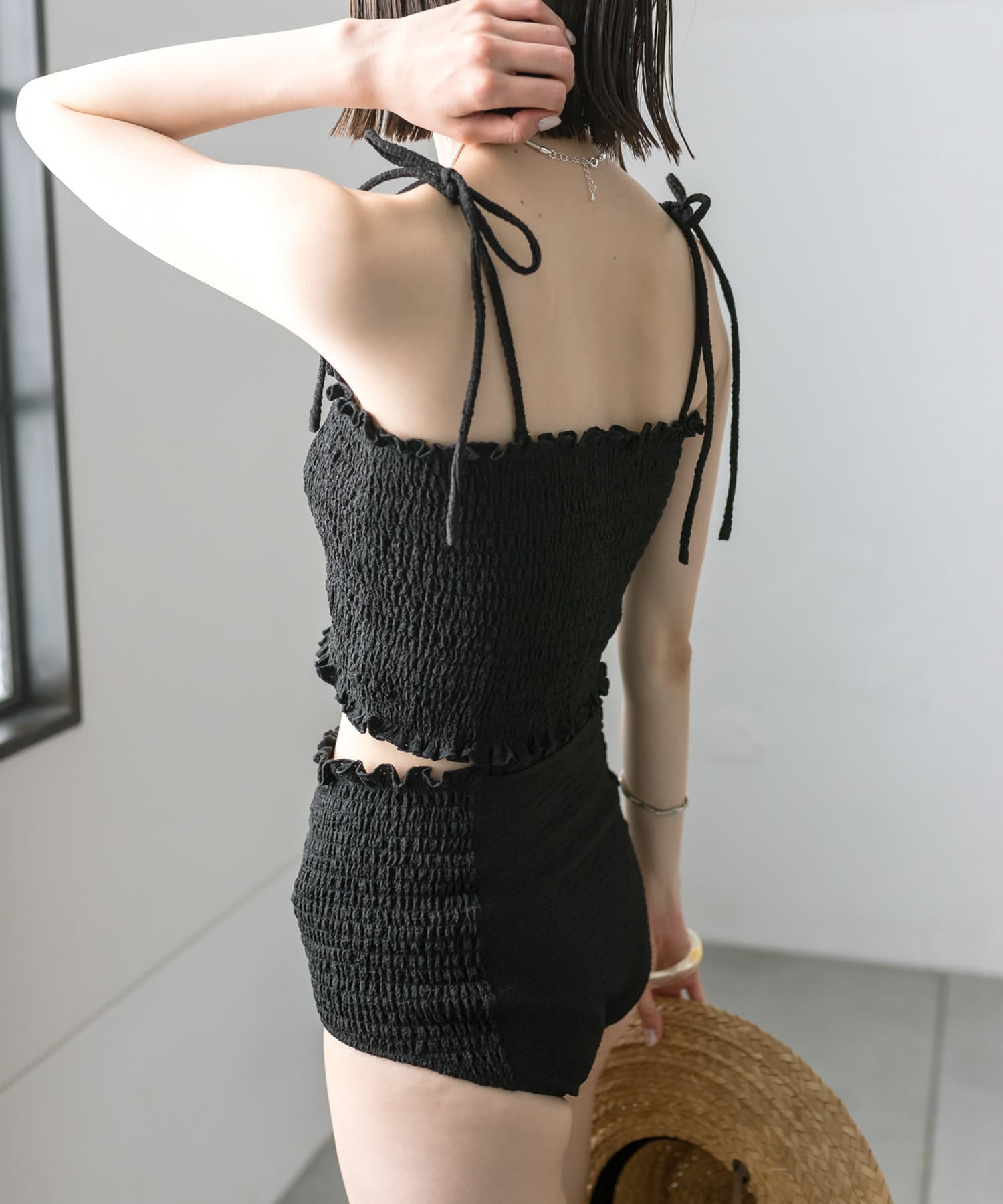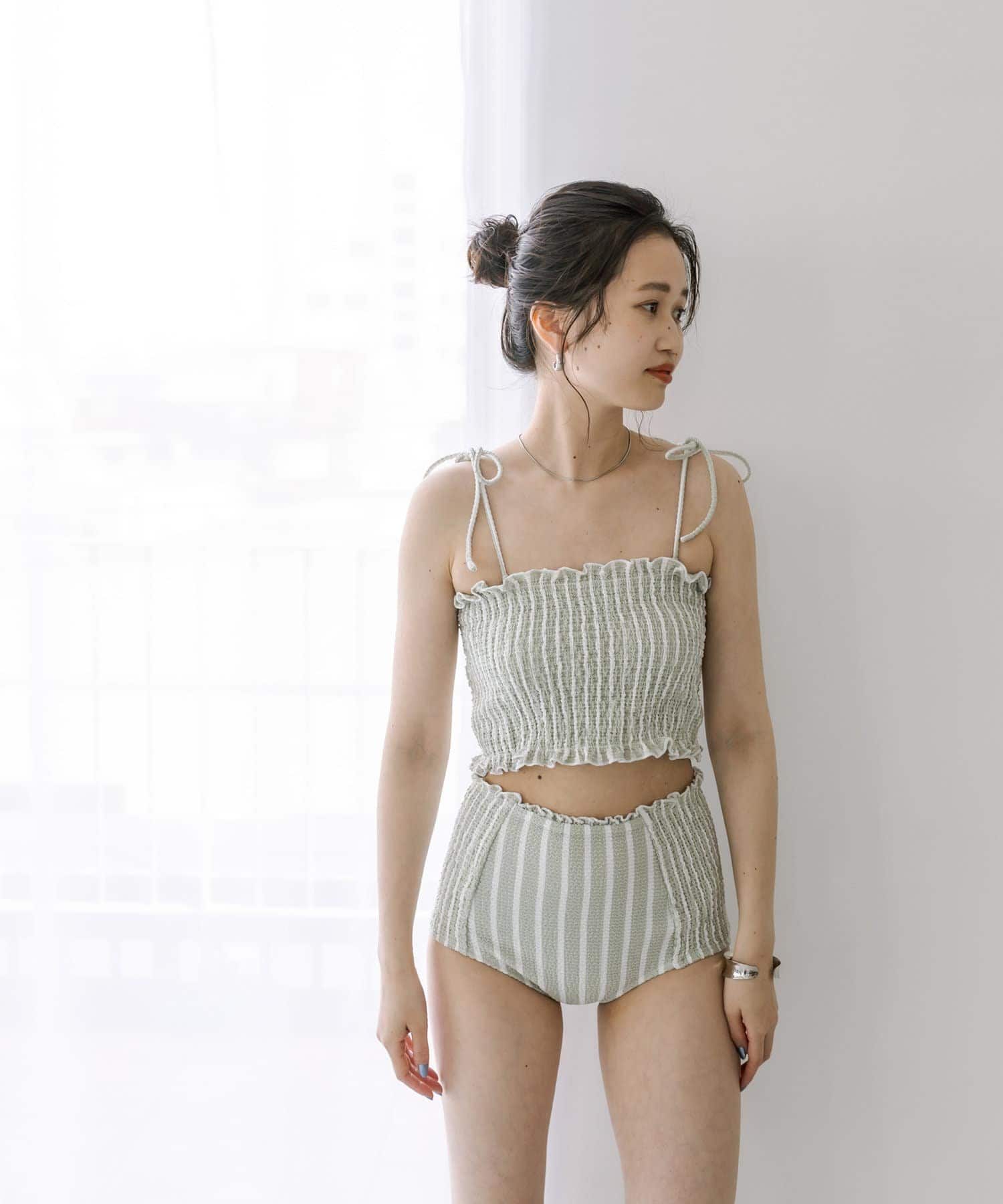 ・ハイウエストのパンツとセットになっており、スタイルアップ効果も抜群◎