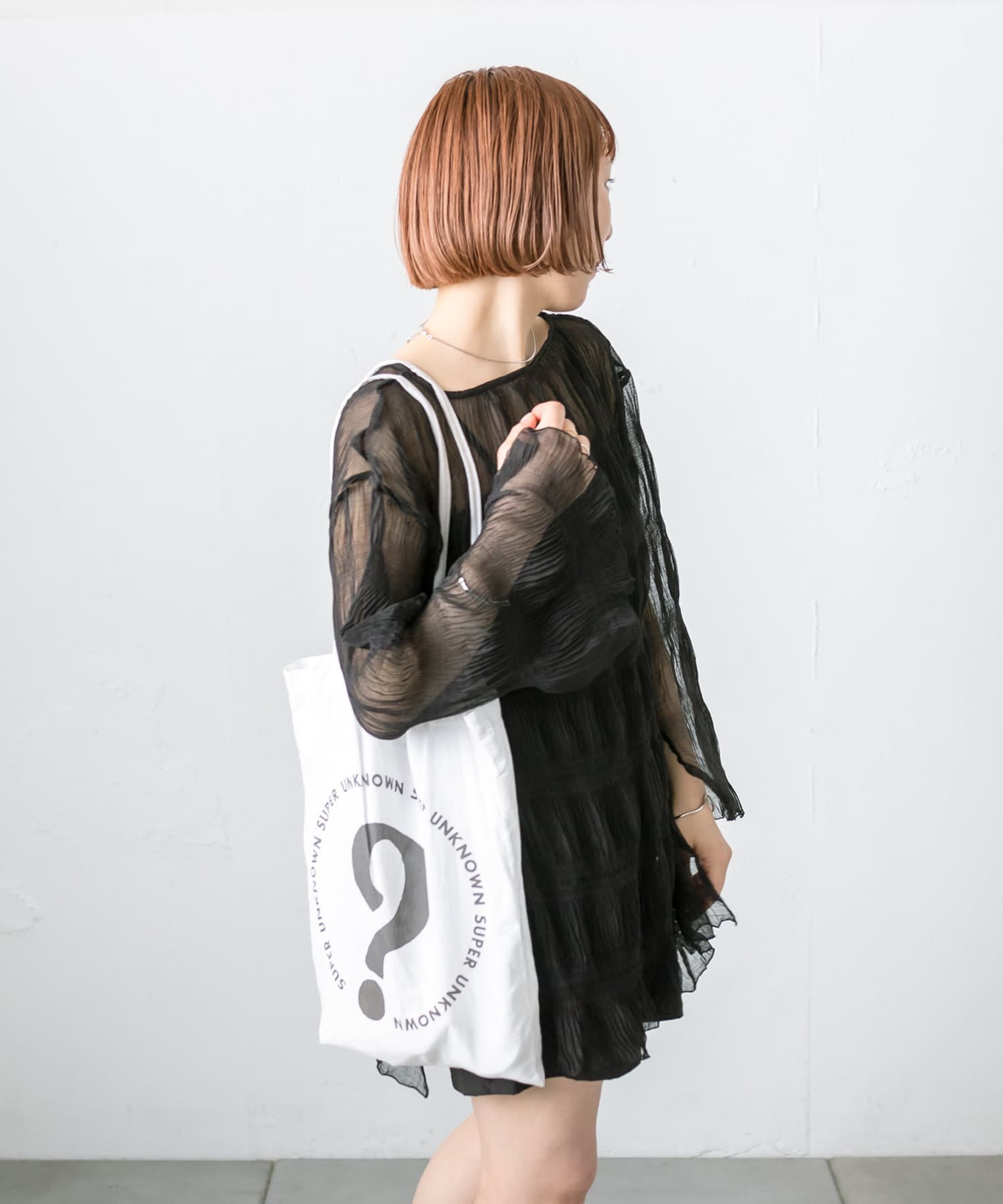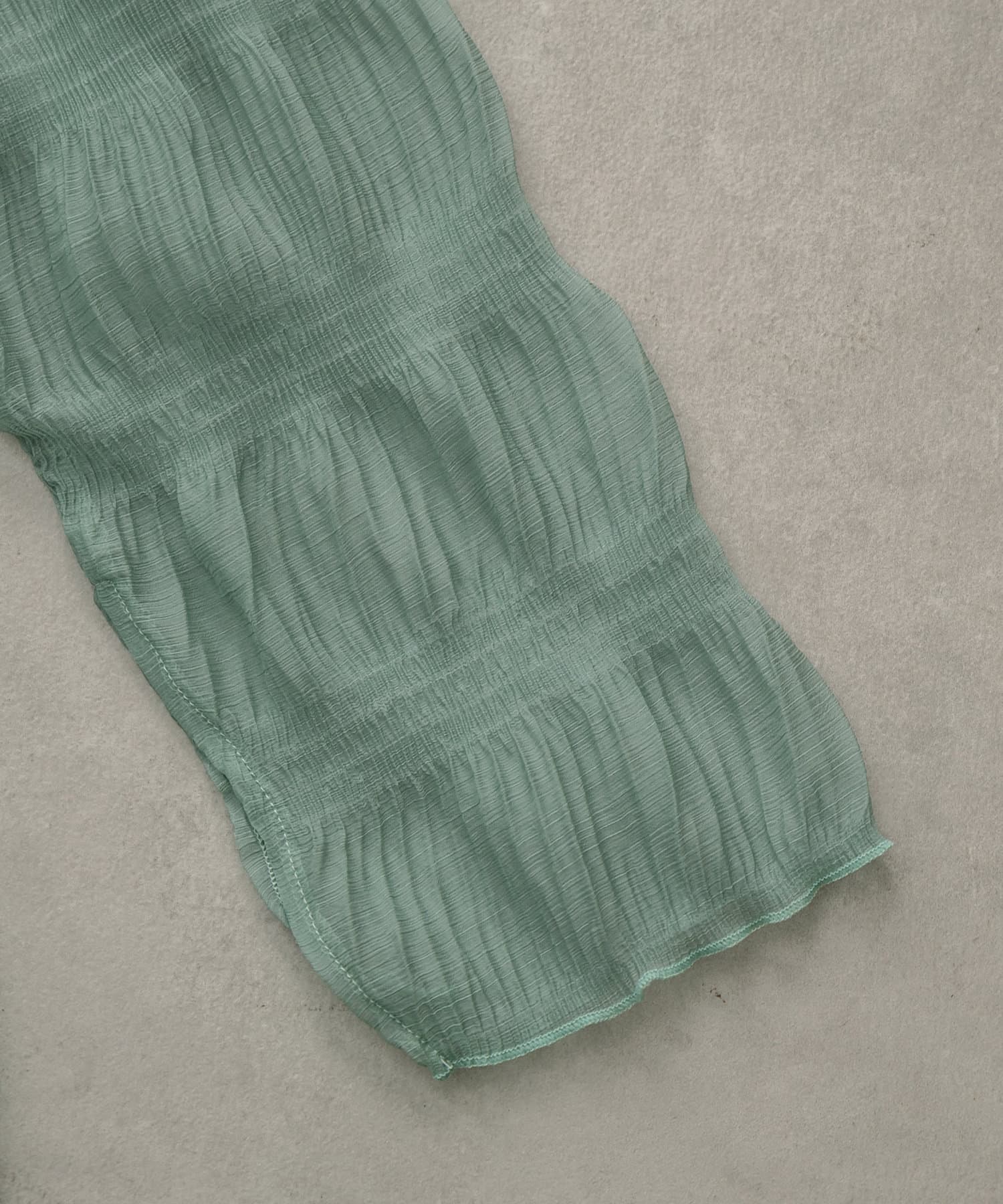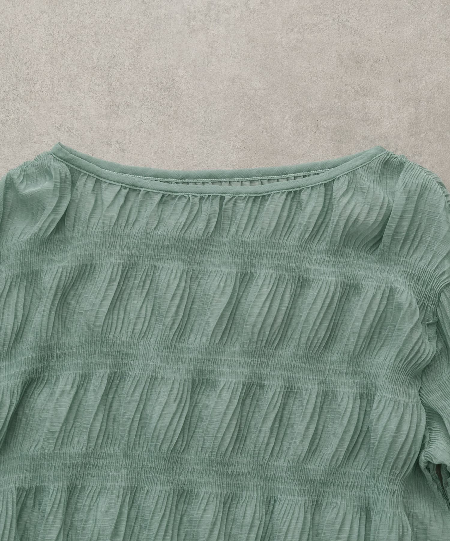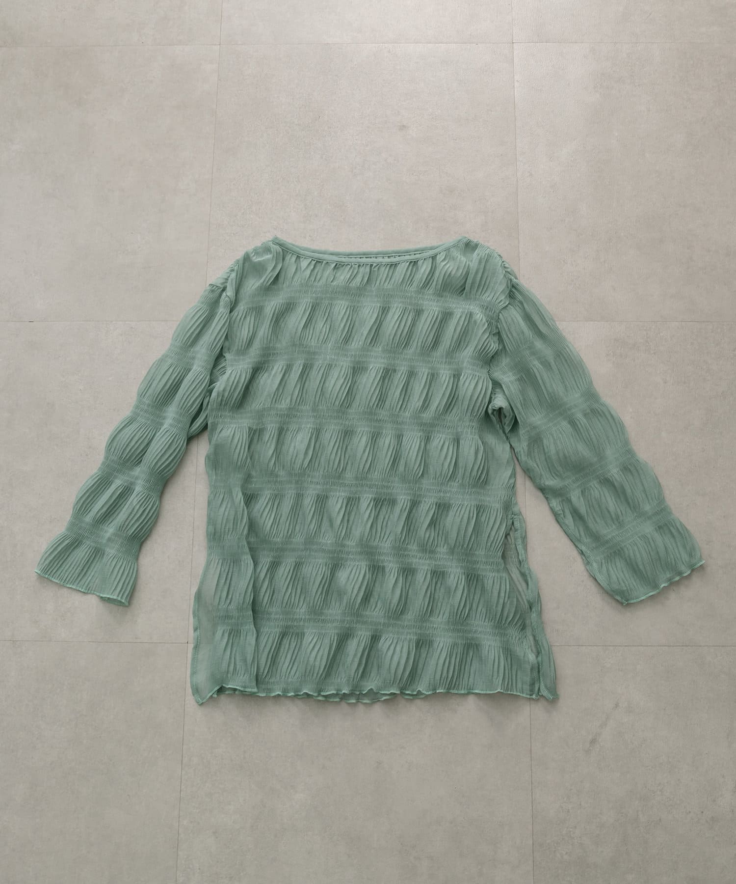 ・シアーブラウスはヒップラインが隠れる長めの丈感。