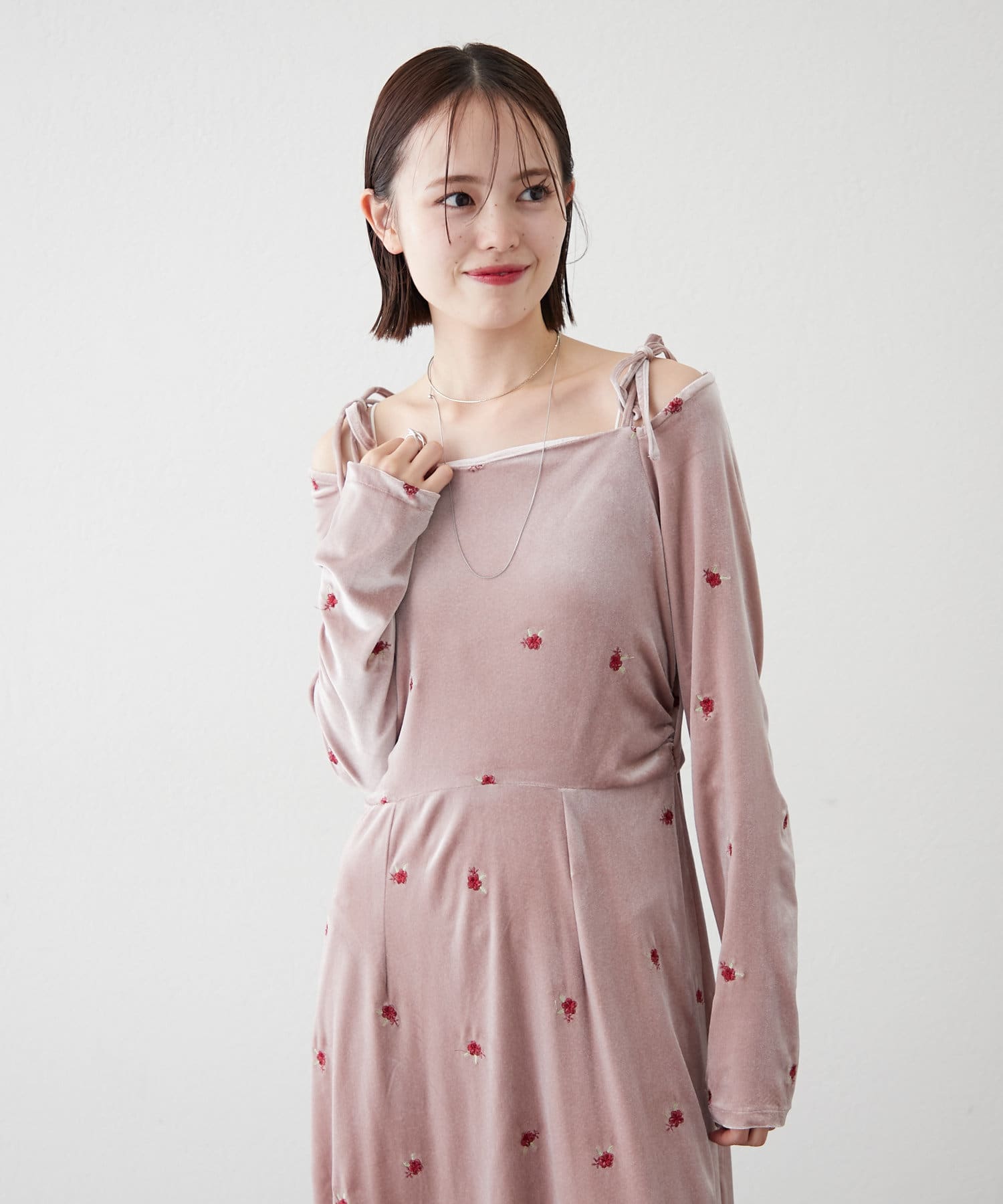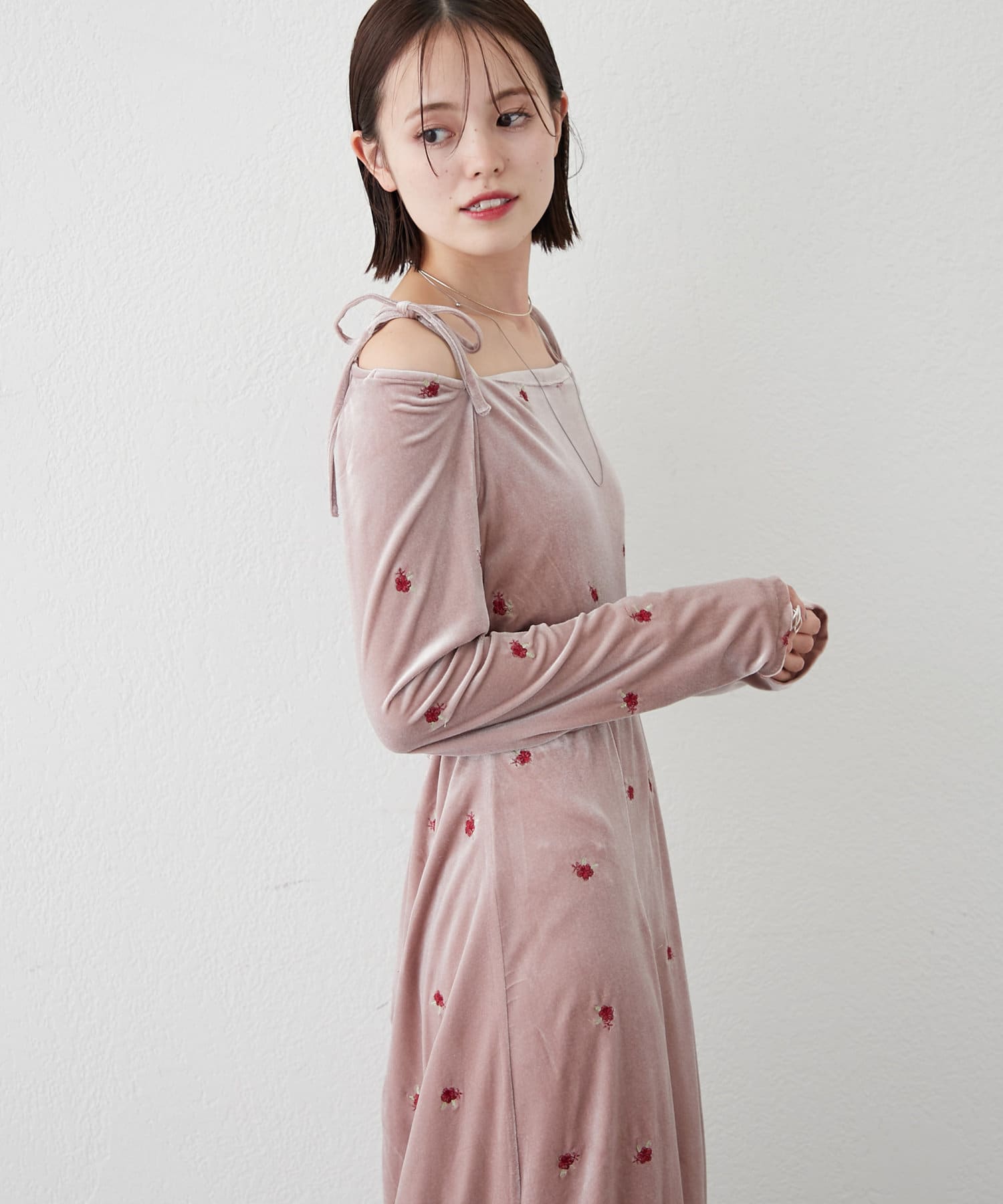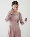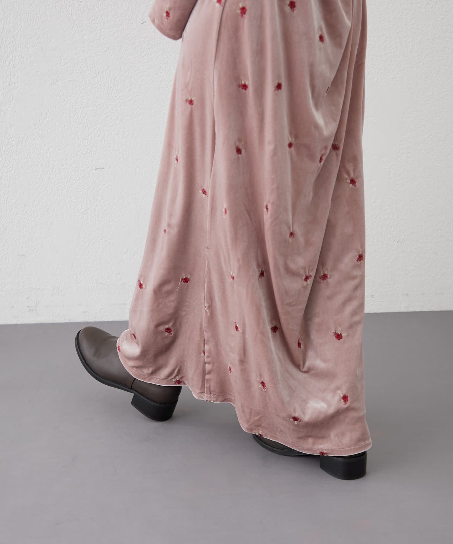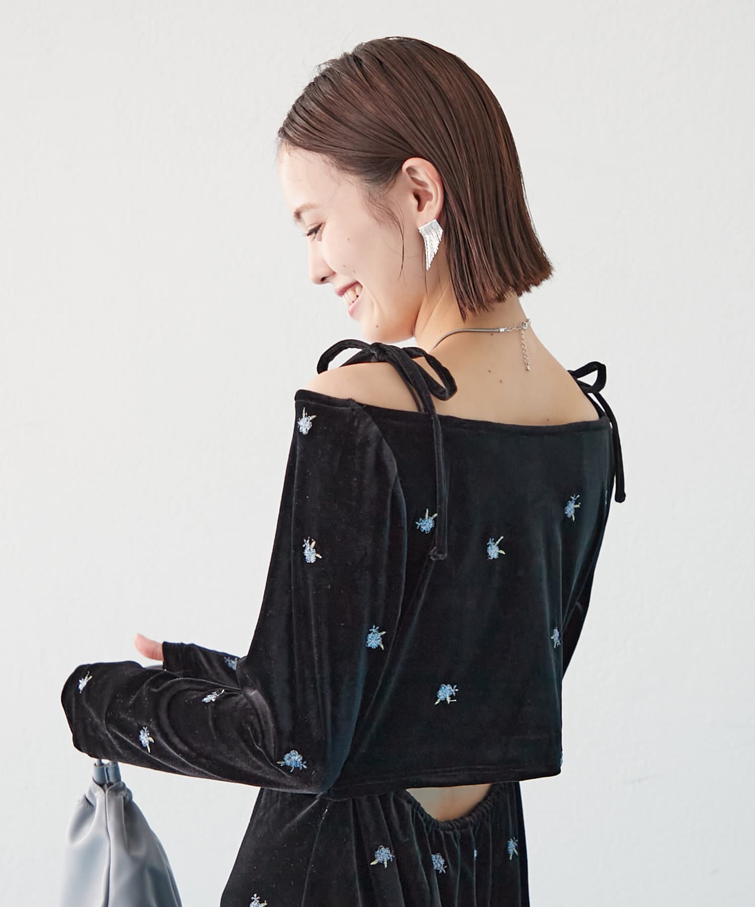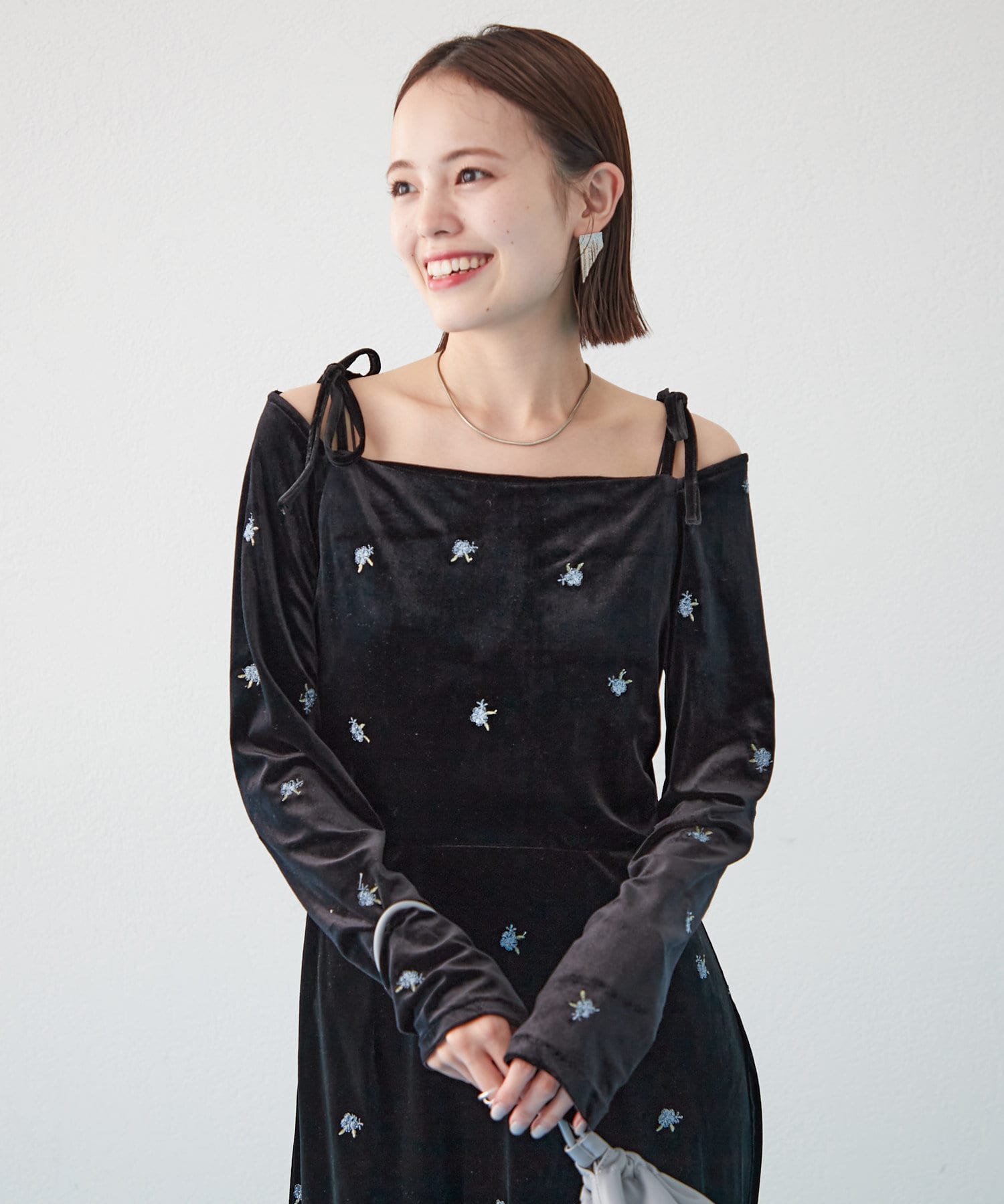 ・大人っぽいベロア素材でお花の刺繍がポイントの高見えワンピ♡!