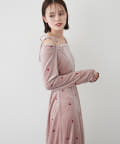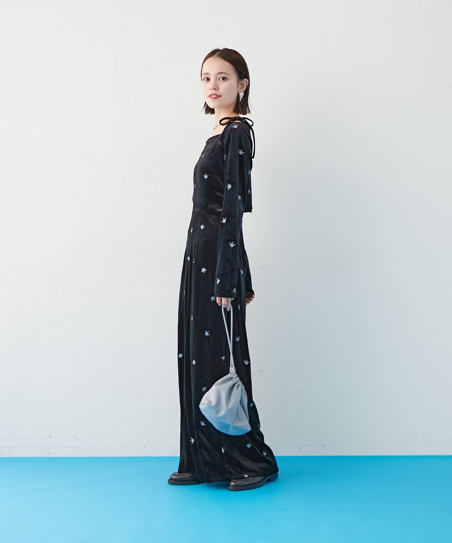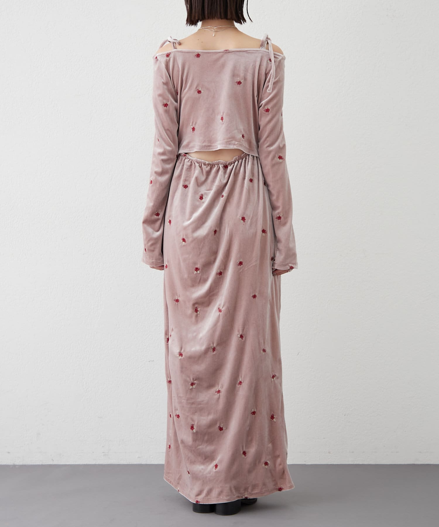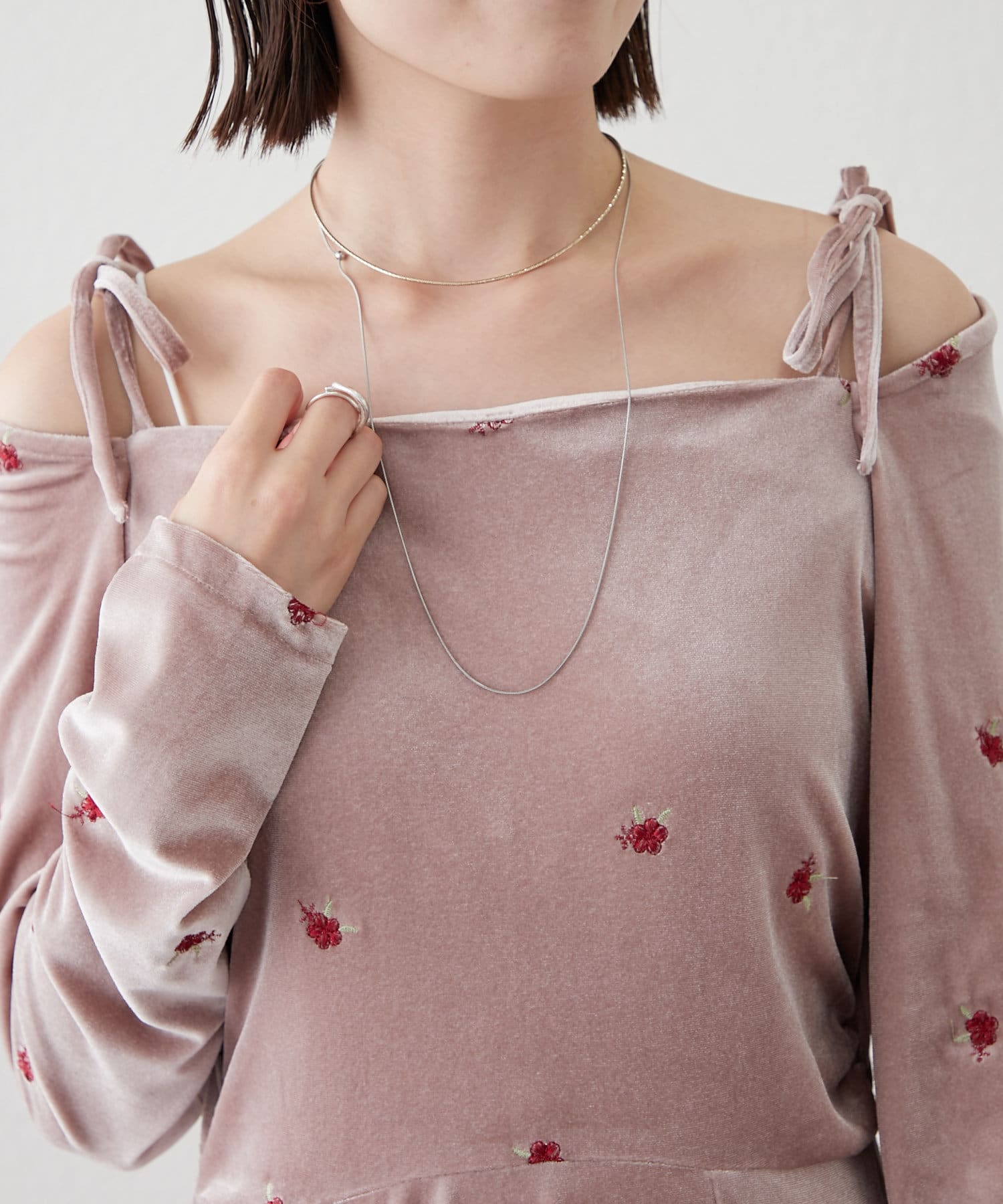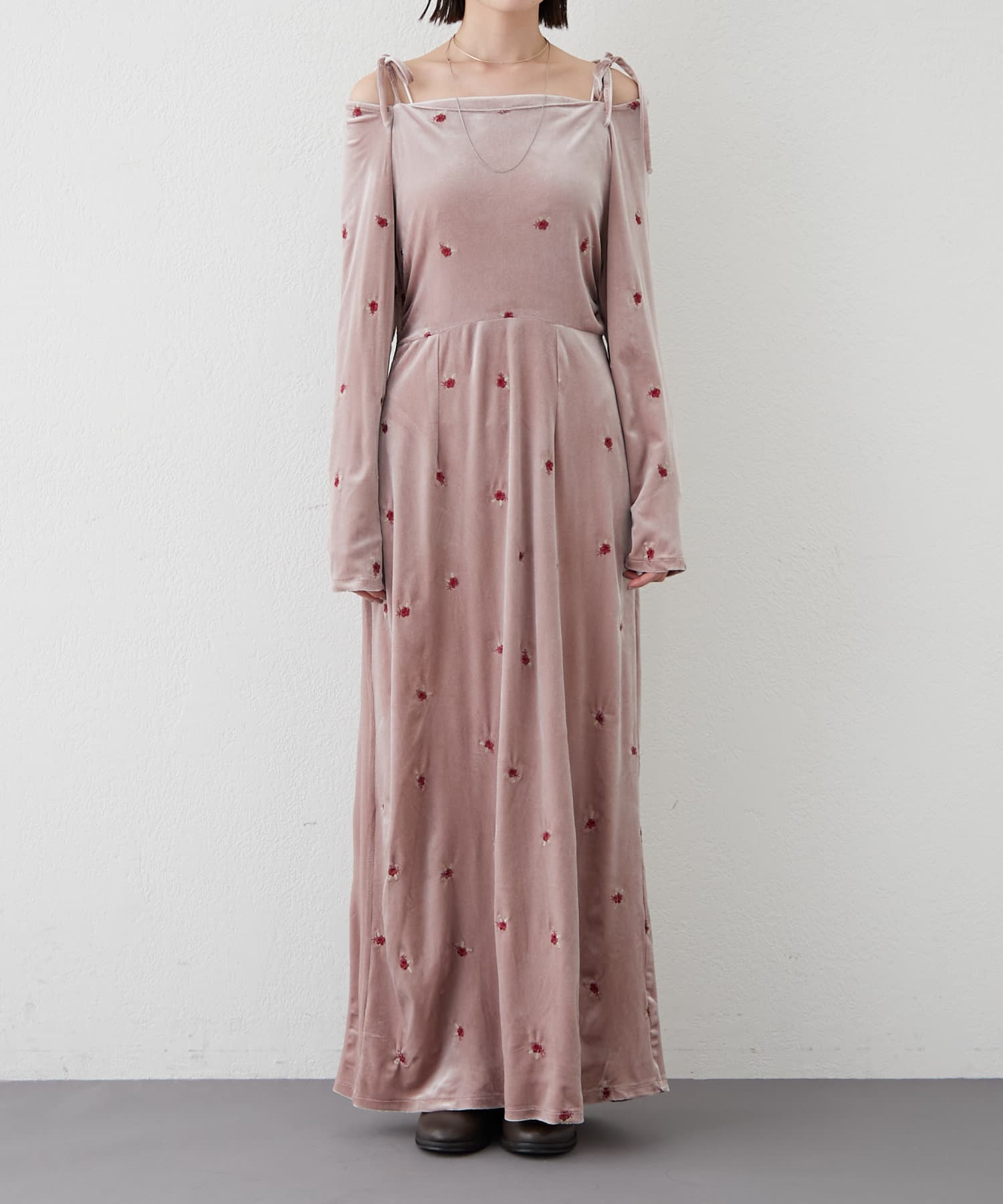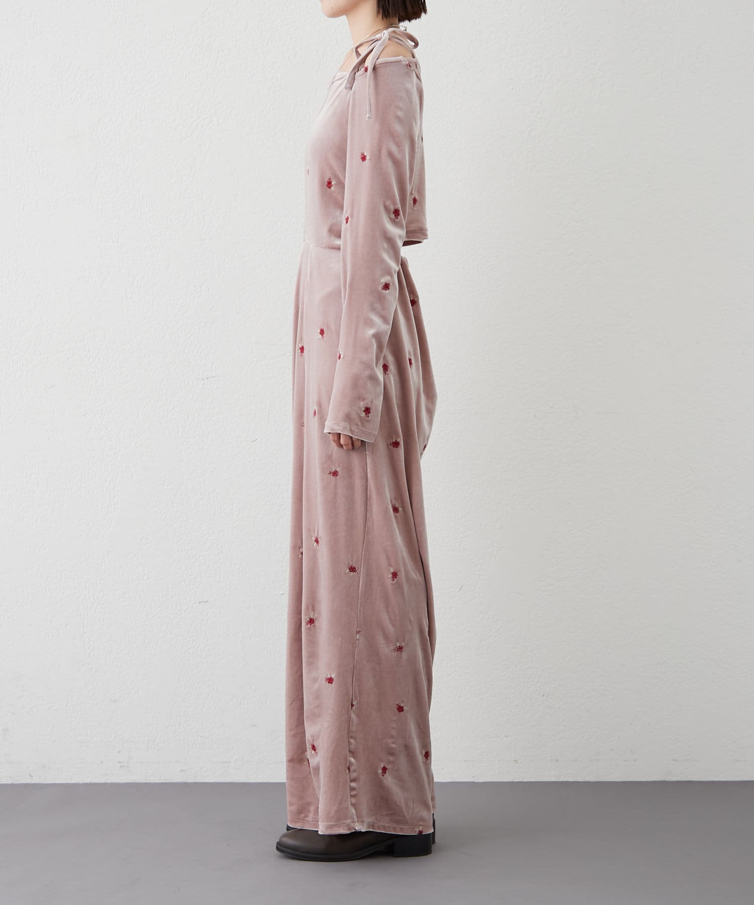 ・大人っぽいベロア素材でお花の刺繍がポイントの高見えワンピ♡!