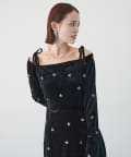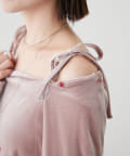 ・肩部分のリボンとバックの肌見せがアクセントになり程よい抜け感を演出◎