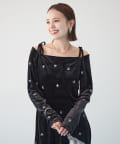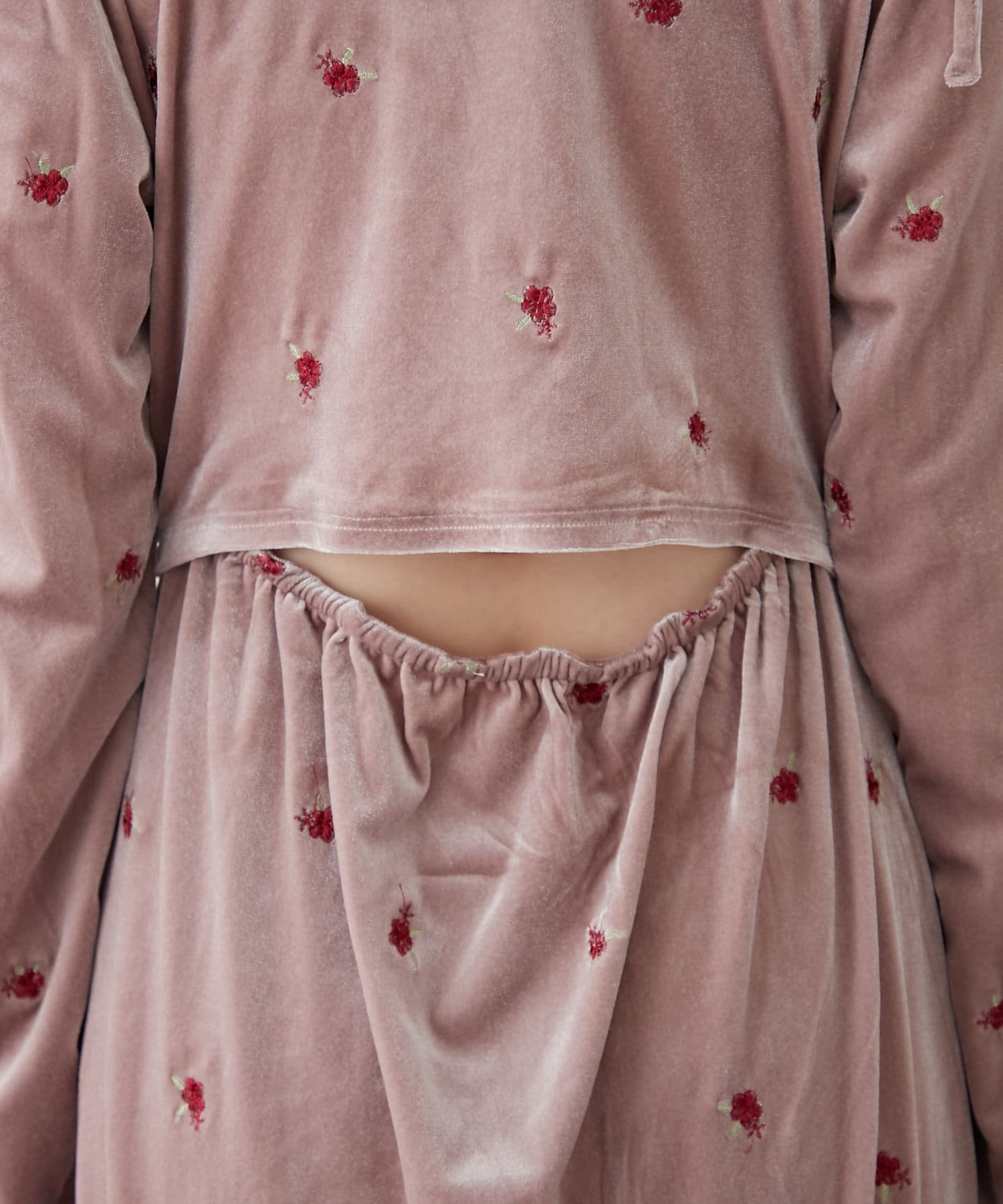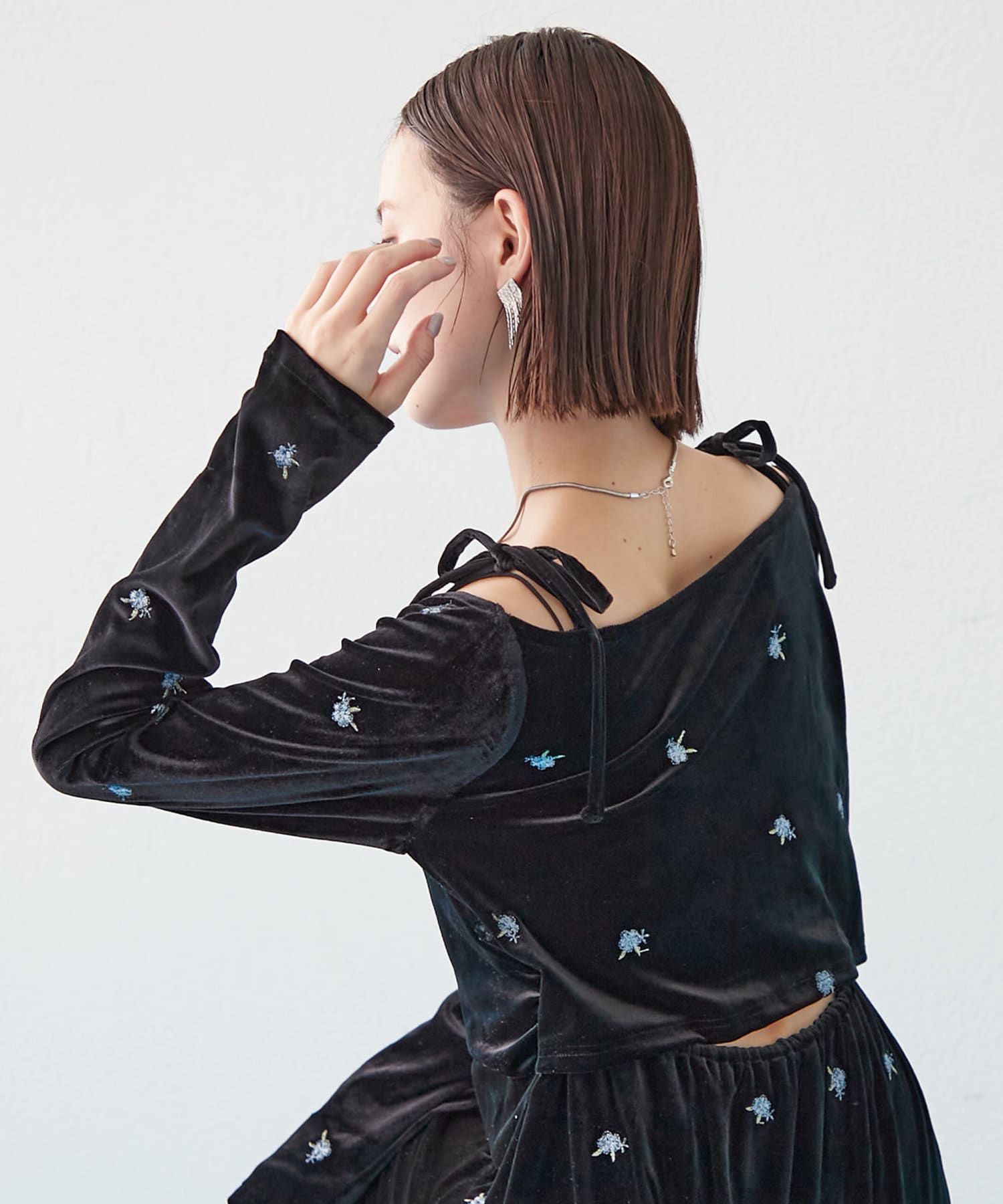 ・ツヤ感のあるベロア素材で一枚で華やかに着こなしていただけます。