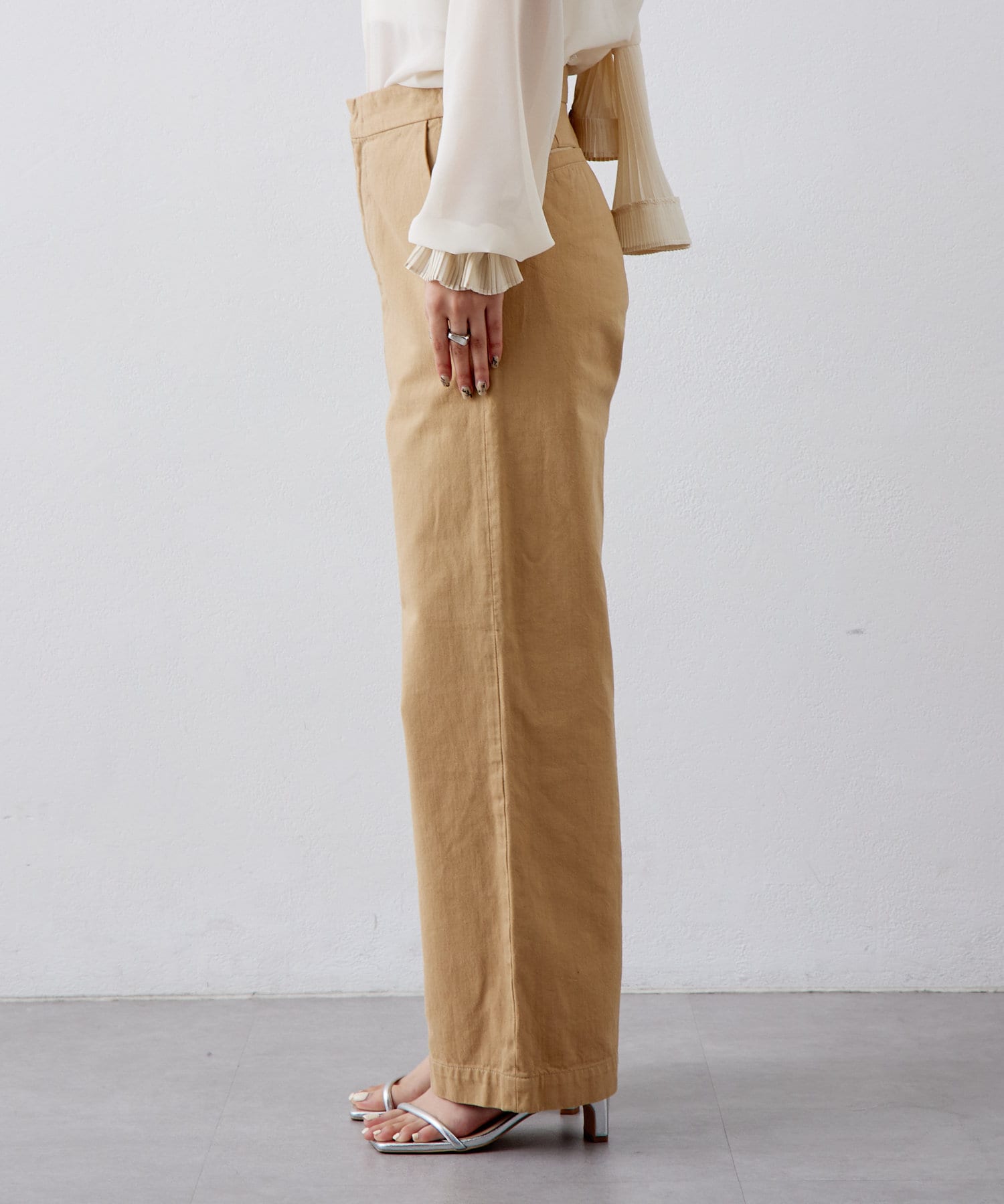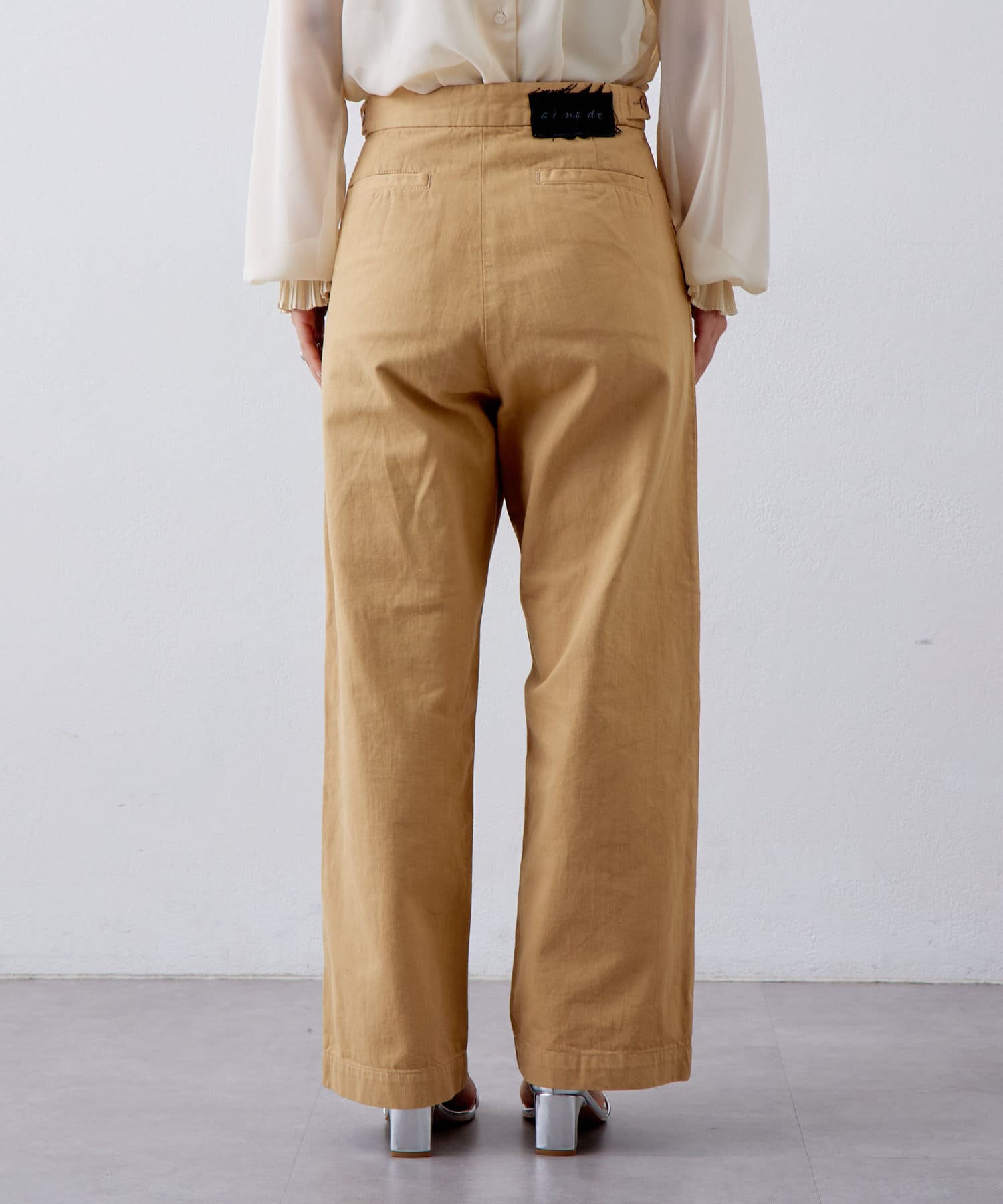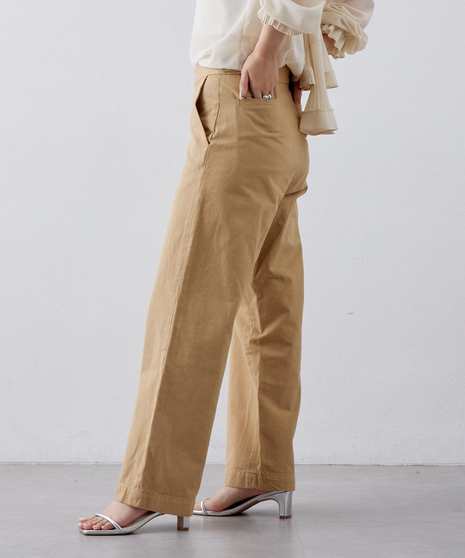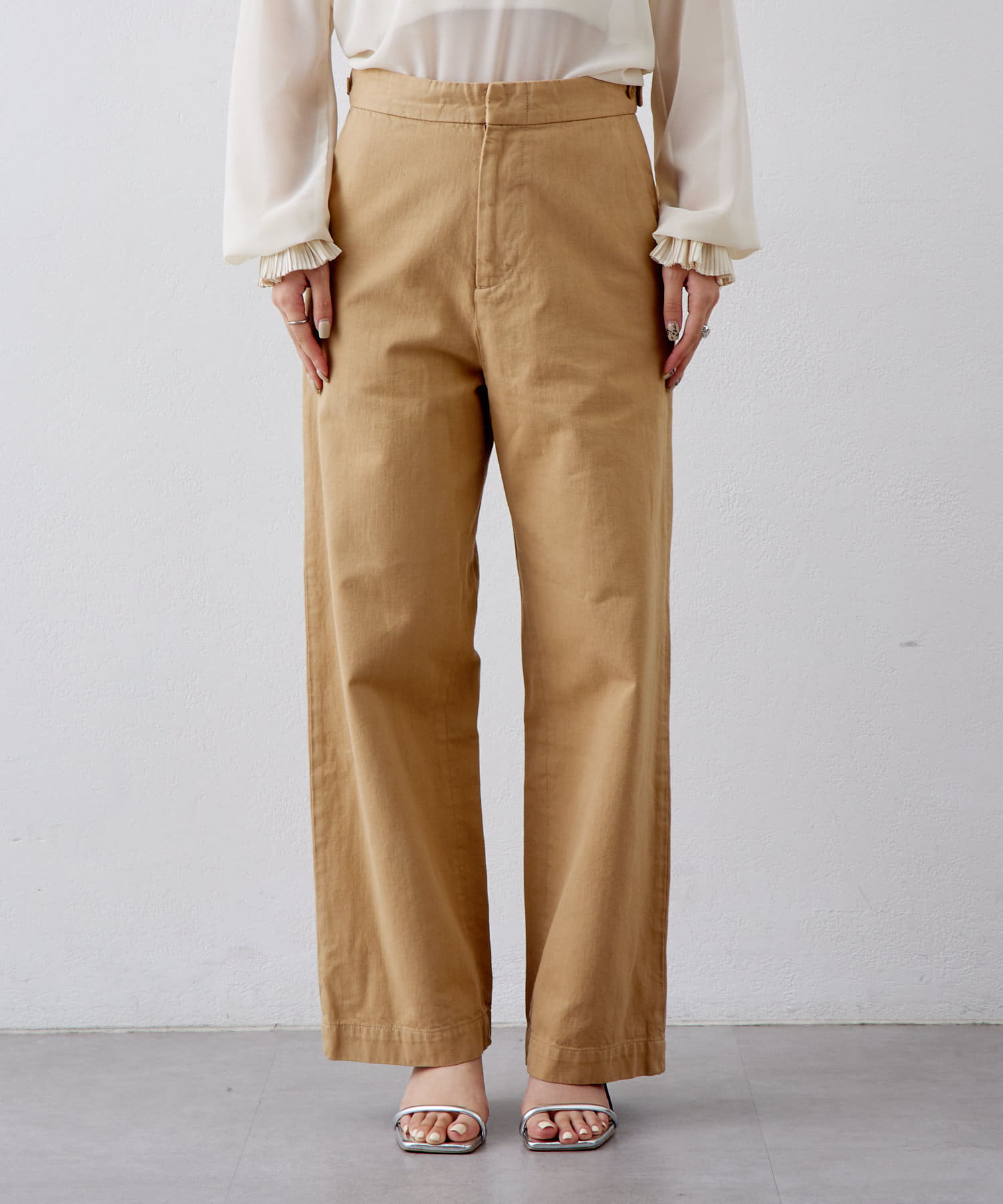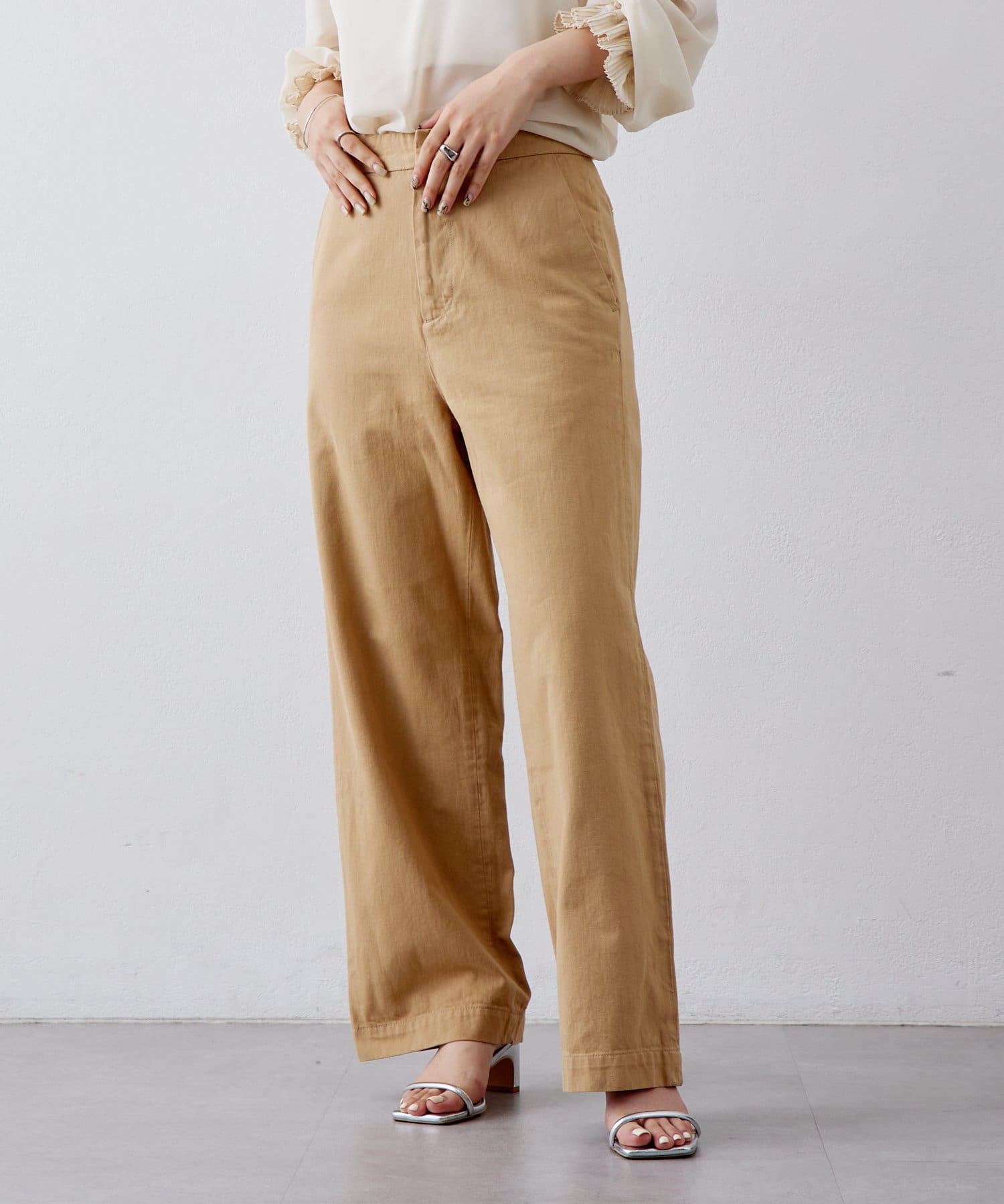 パンツのデザインもシンプルにスラックスのようなデザインにしているので、カジュアルでラフなイメージのチノパンを