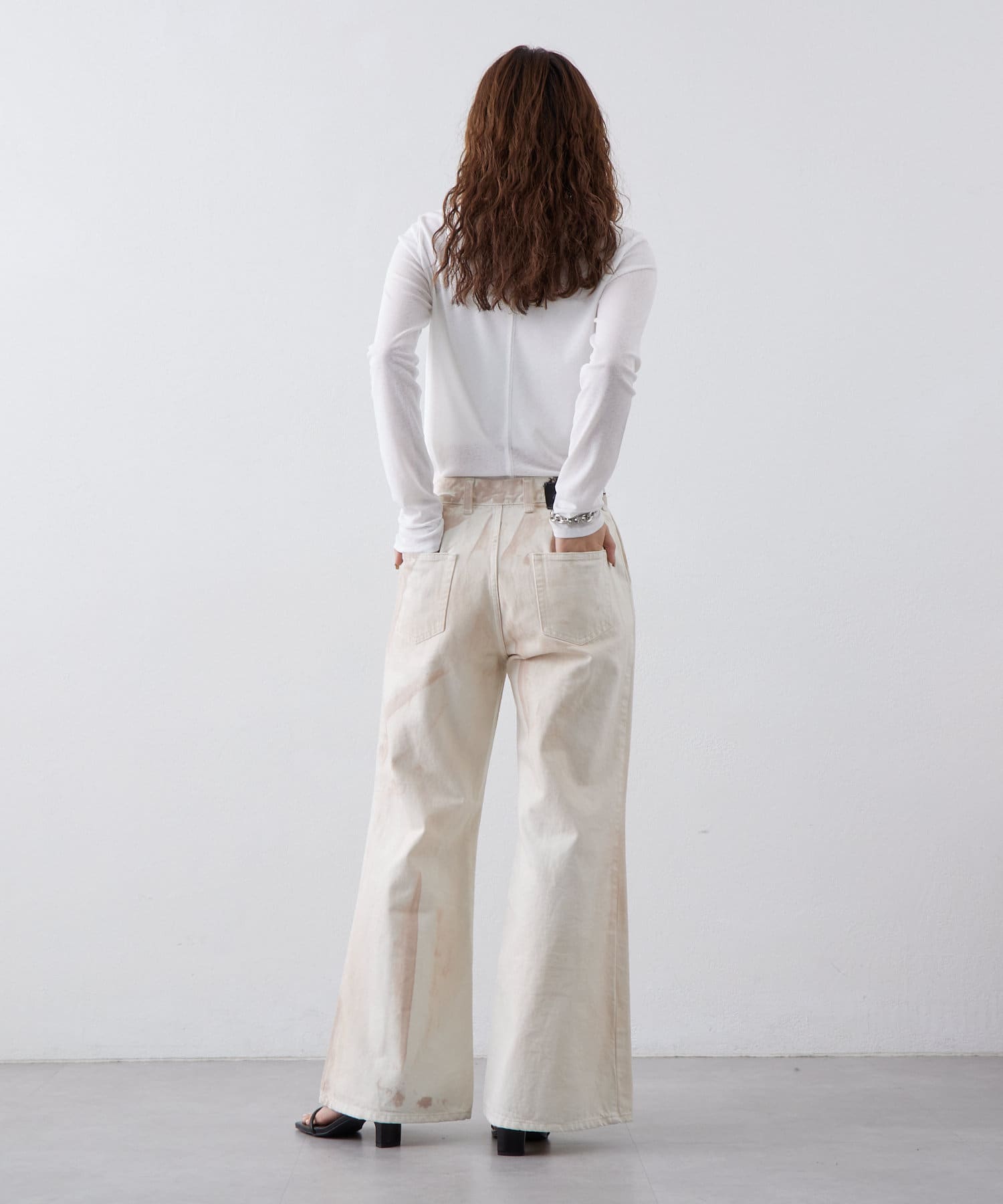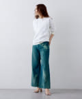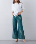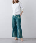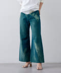 ローライズのワイドフレアデニムです。拘りのカラー、加工となっています。
