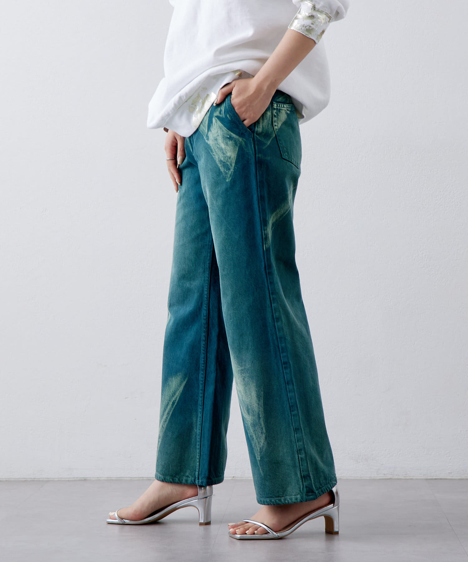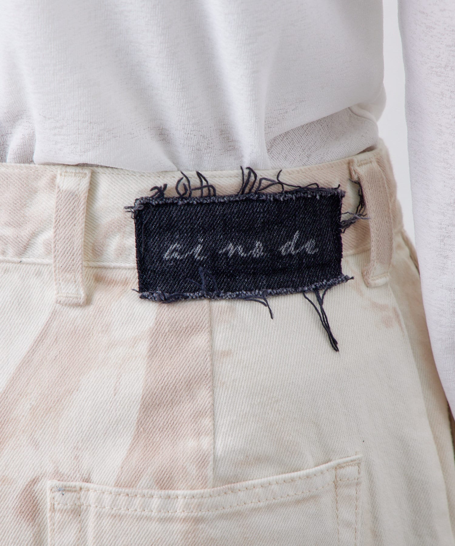 2色ともホワイトデニムを染めてカラーをつくっており、経年変化で焼けた色が入ったようなイメージで仕上げています。