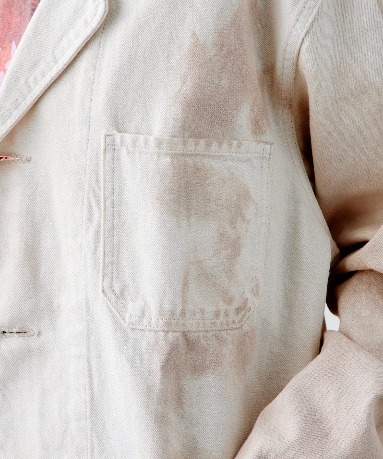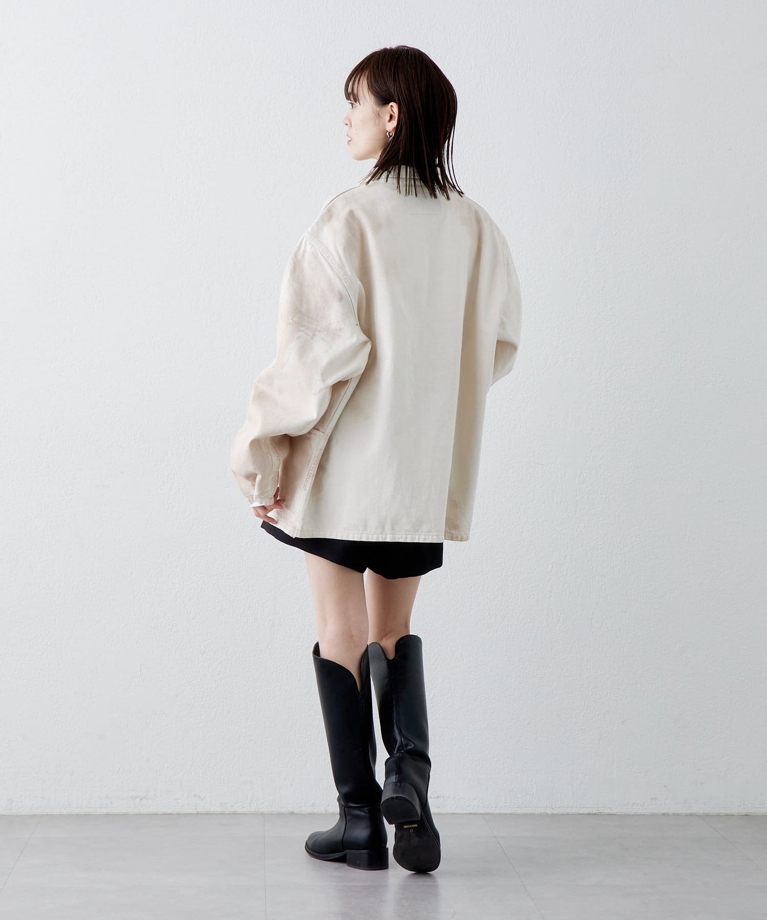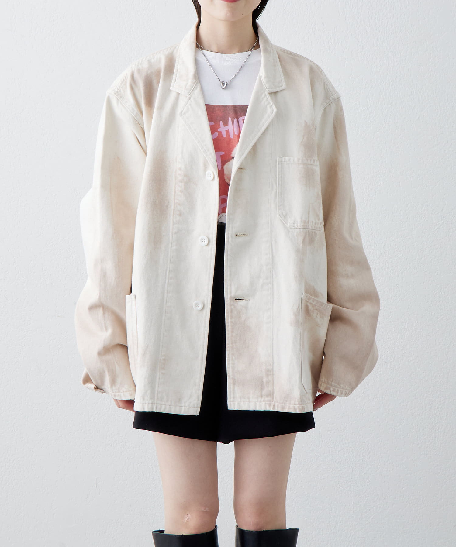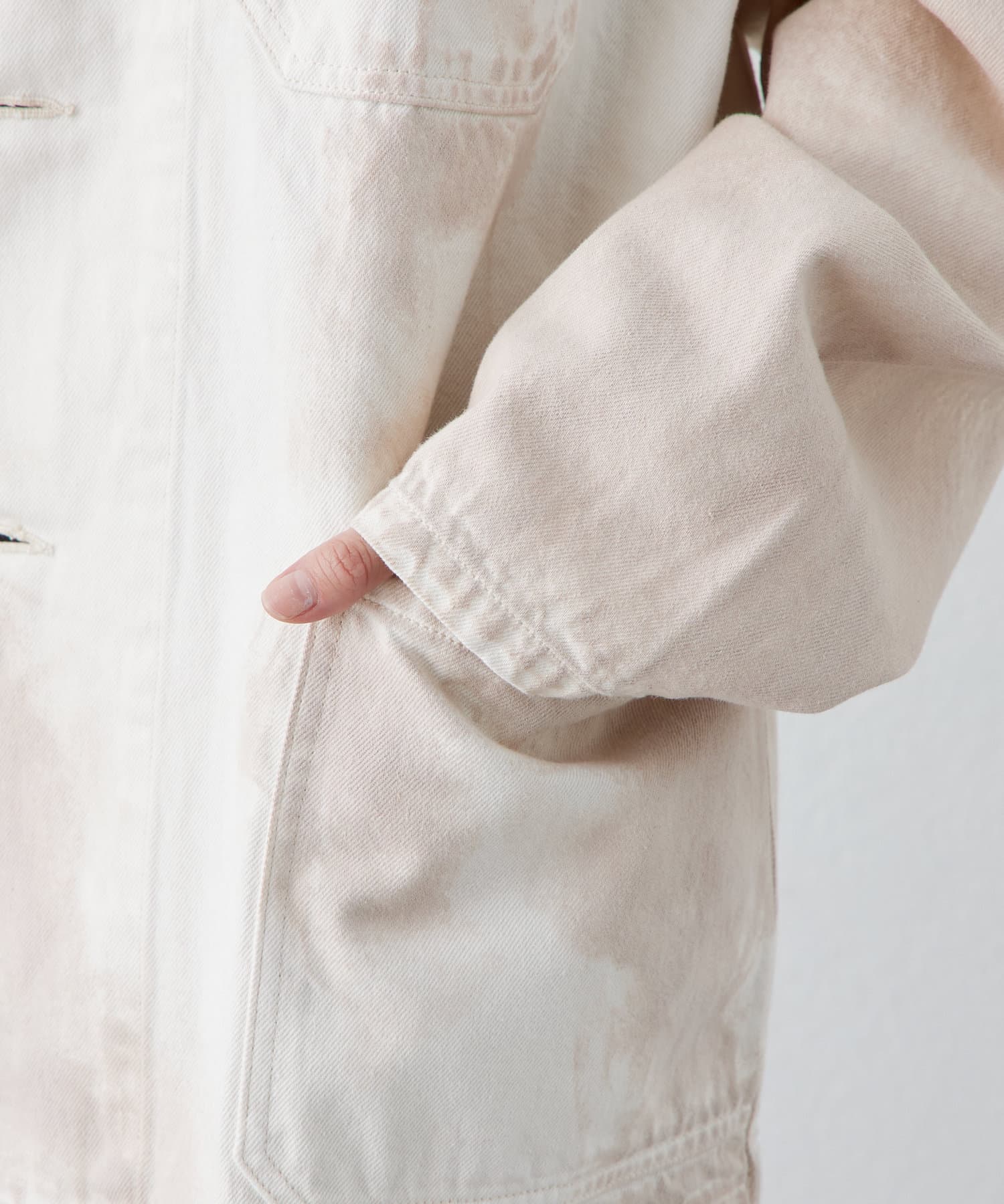 ヴィンテージのワークジャケットを元に作成したアイテム。スプレー加工によって日焼けしたフェード感を再現。