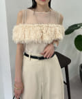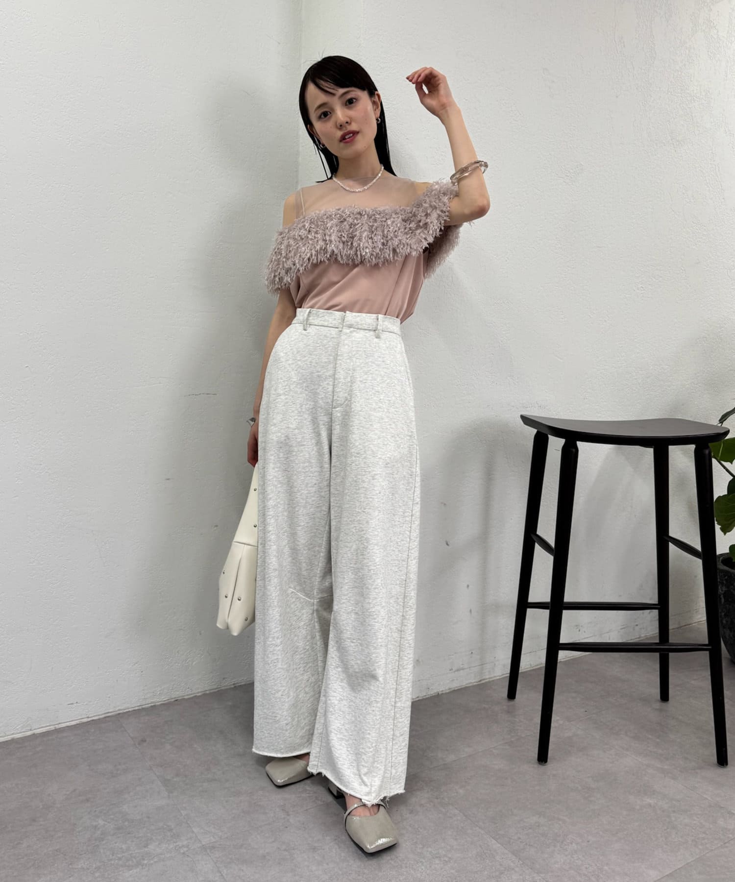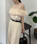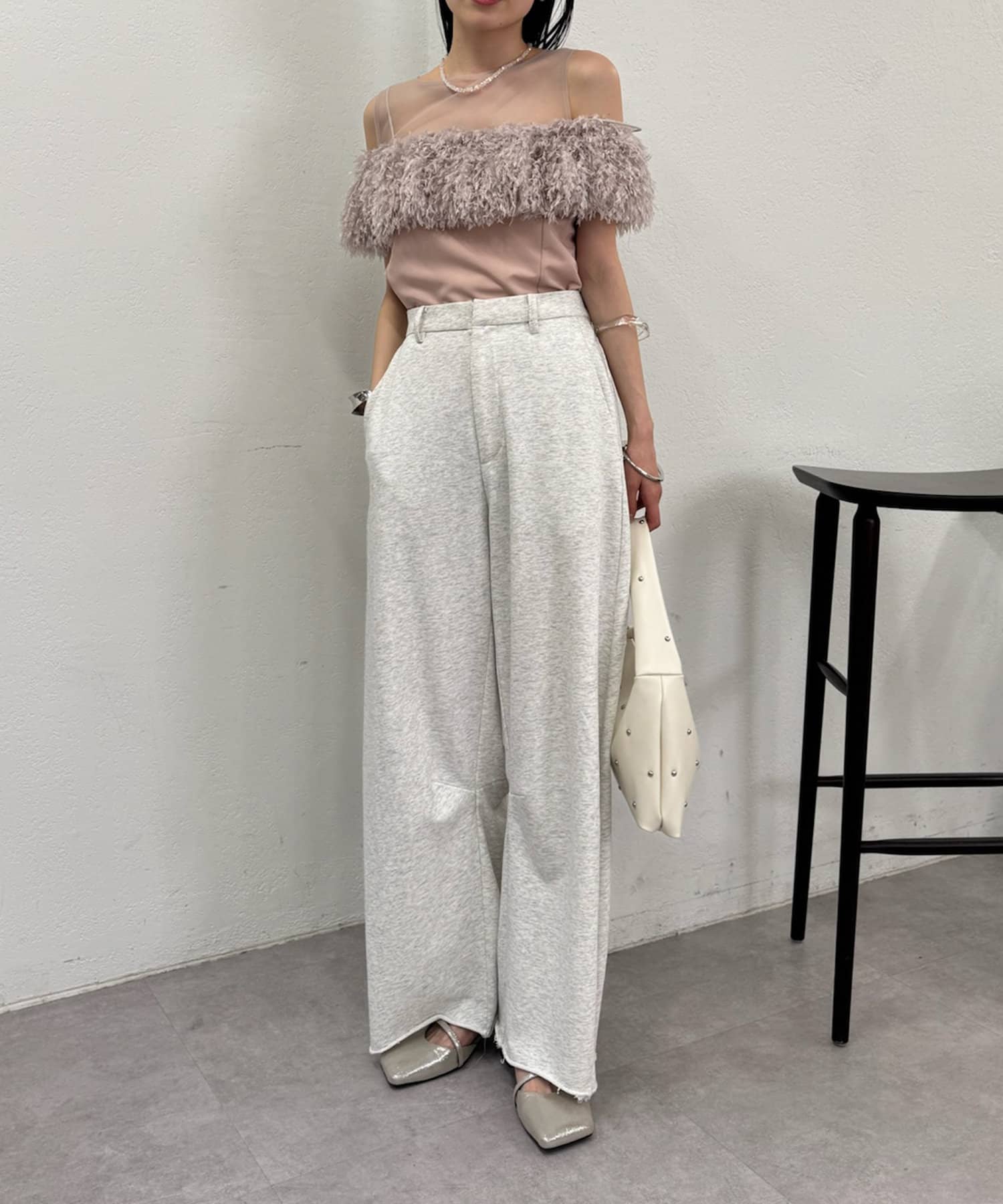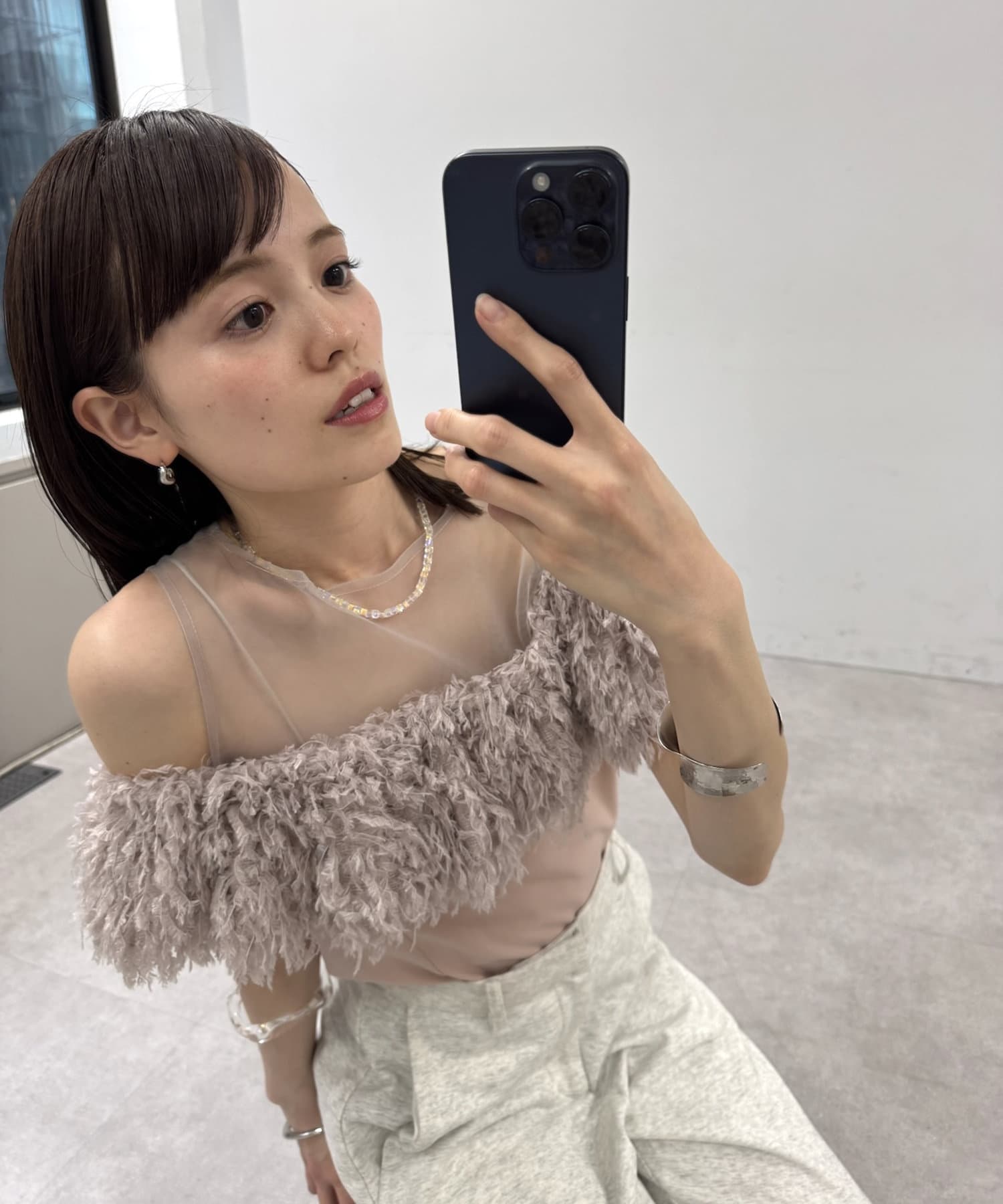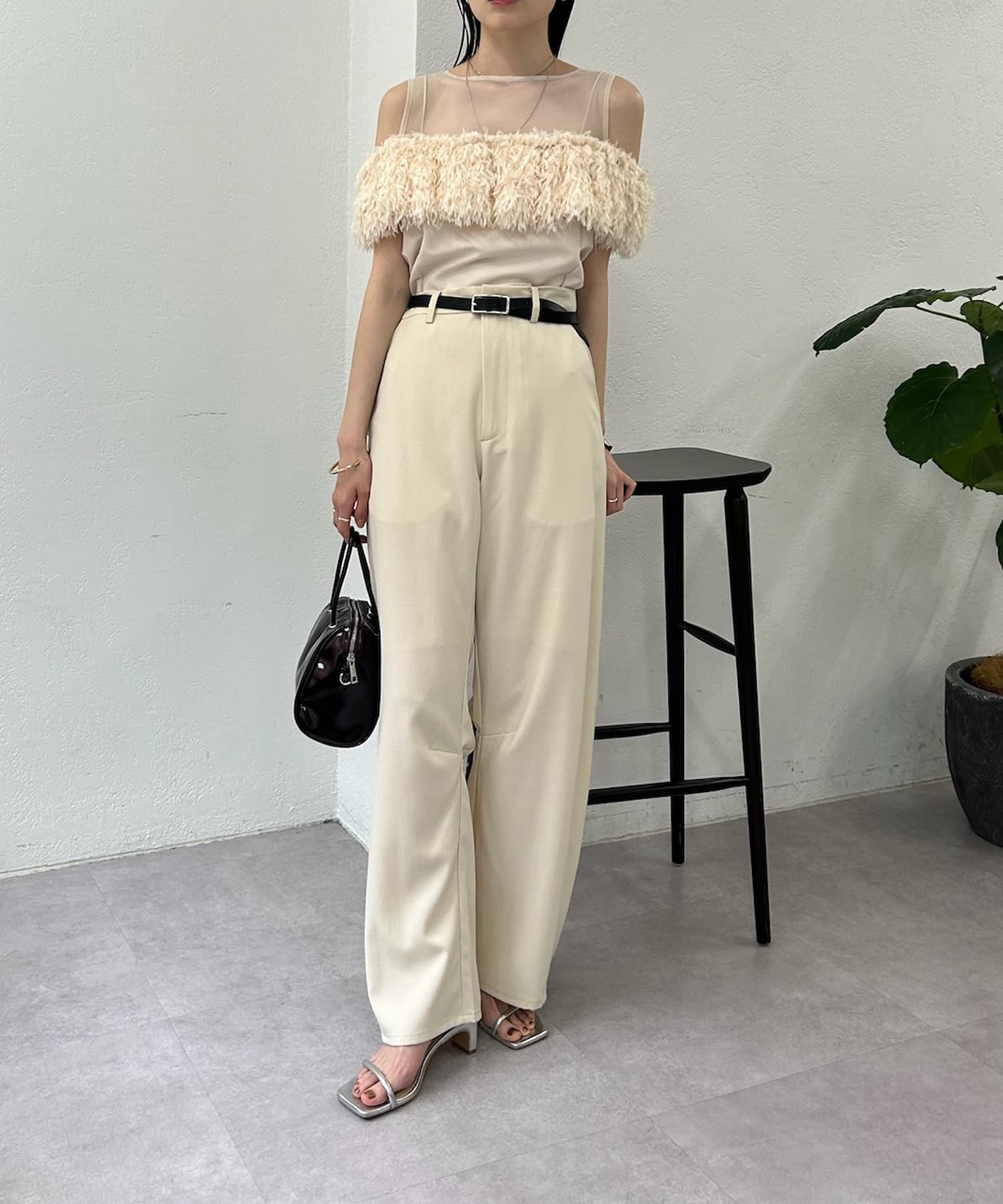 肌触りの良いフェザー素材が女性らしく着になる二の腕周りもすっきりと見せてくれます。