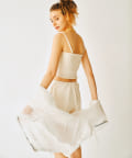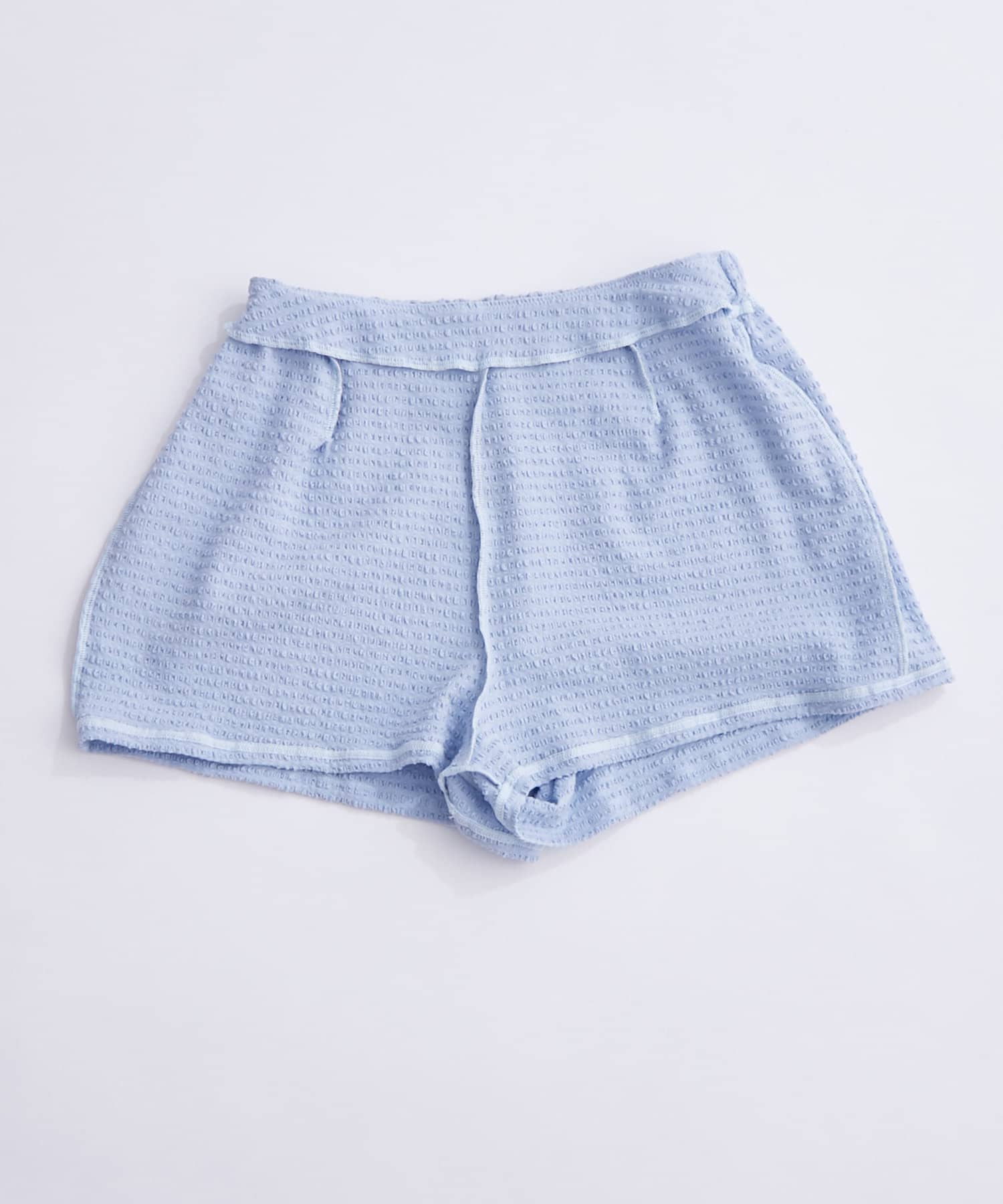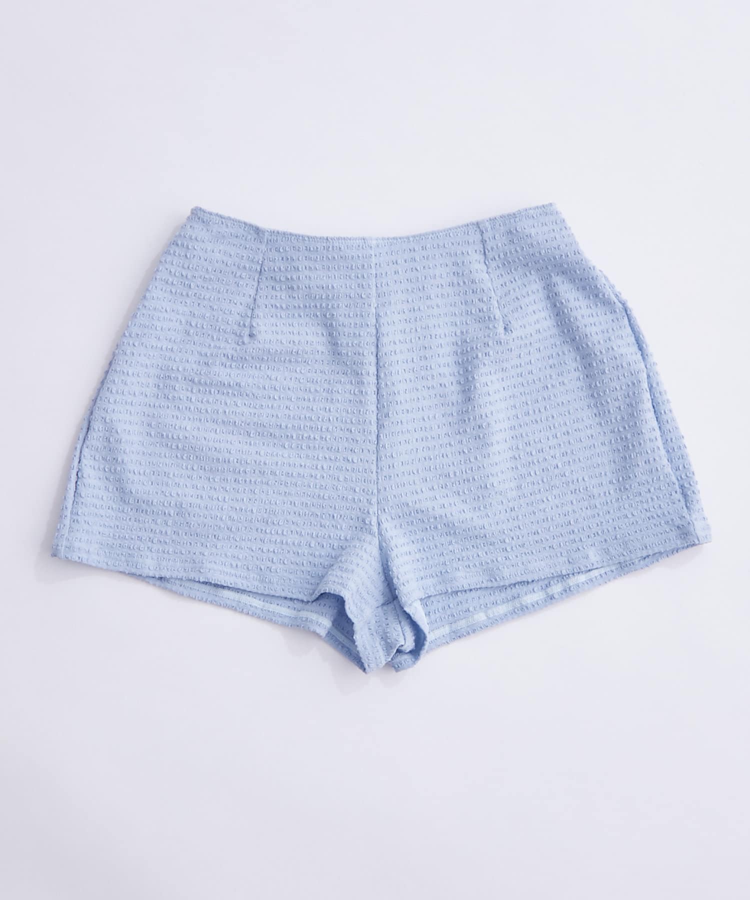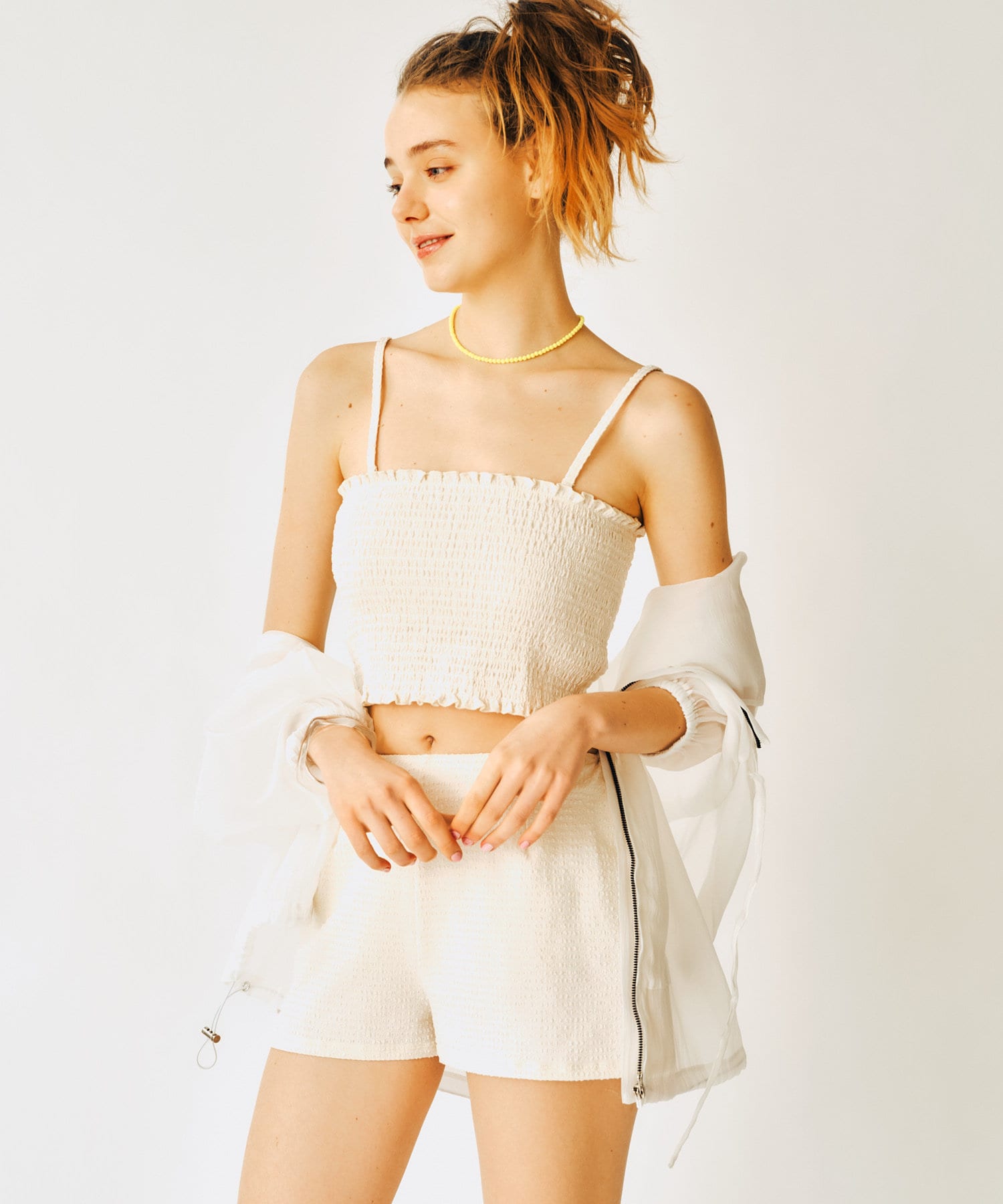 ショーツはハイウエストですっきりとしたシルエット。ショートパンツも程よく短めの丈感で、脚長効果も◎