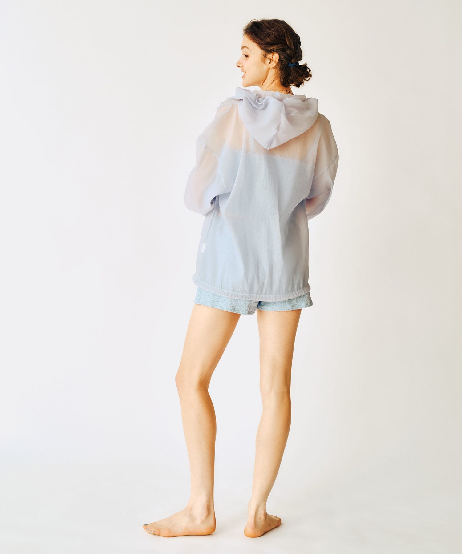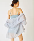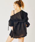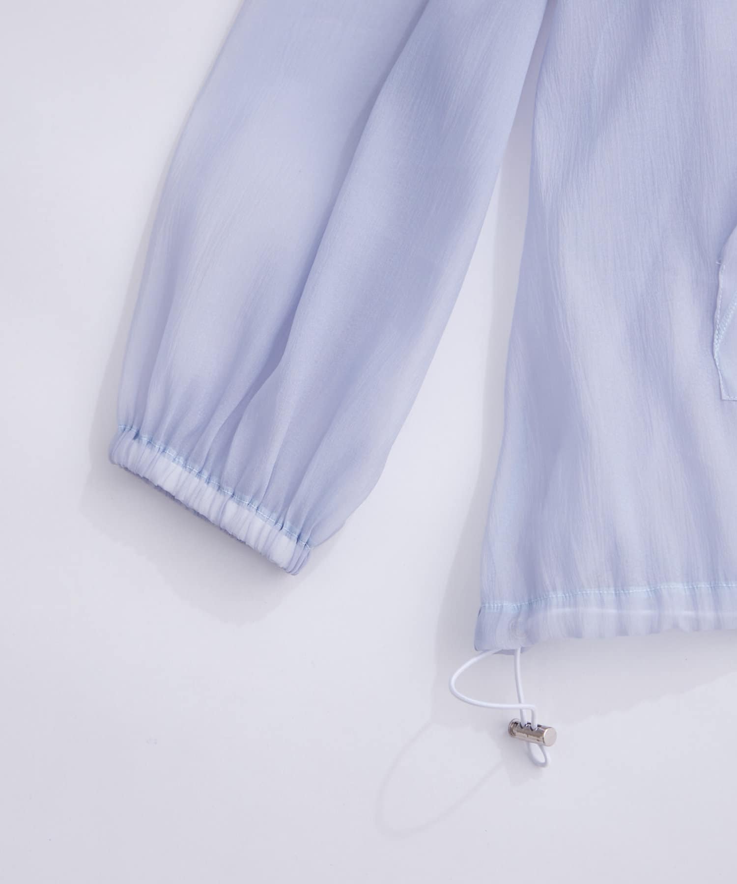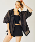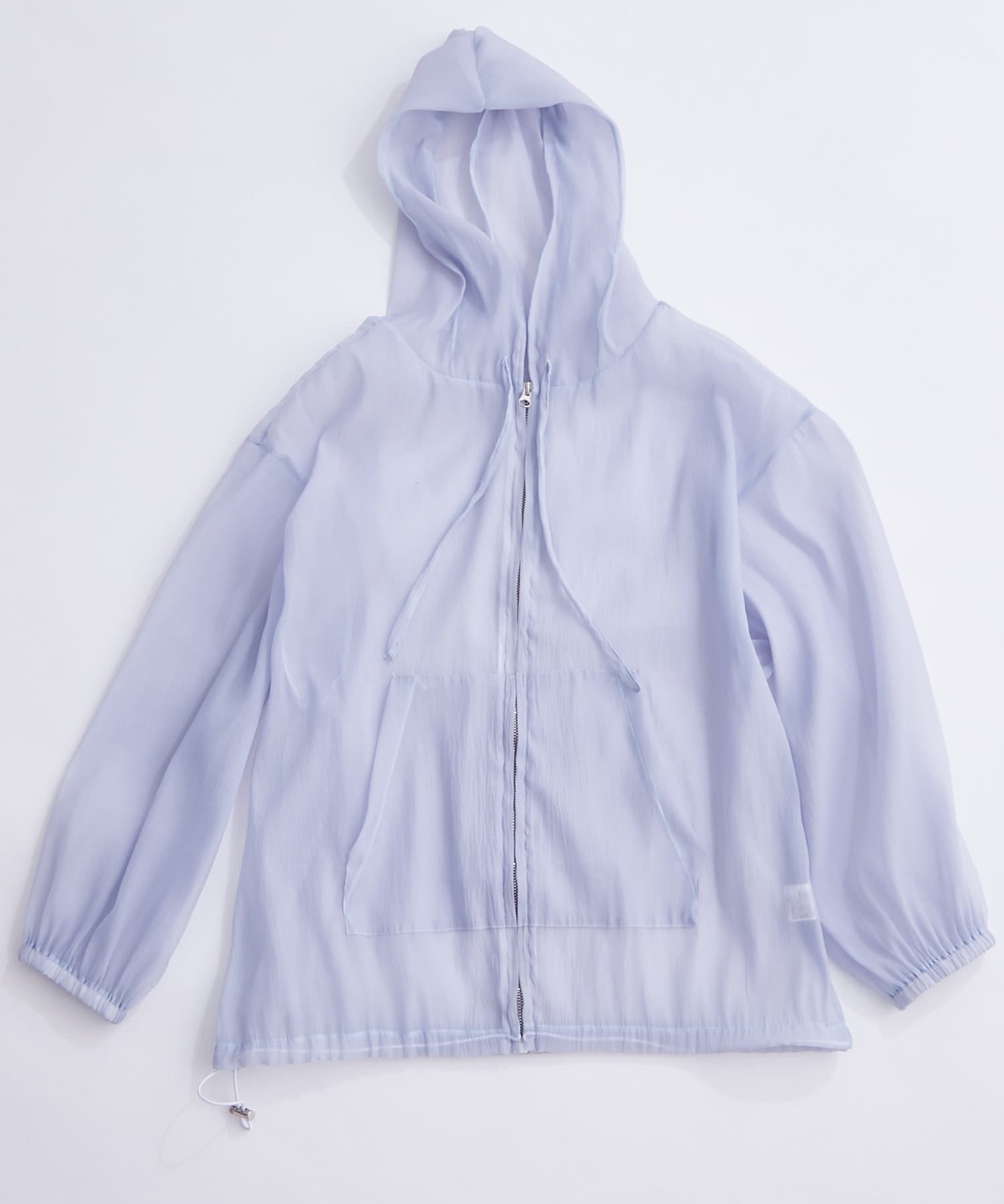 シアーパーカーはジッパー式で、透け感とゆったりとしたシルエットが女性らしい印象に。