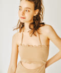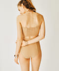 シンプルながらも上品なデザインで、ビーチだけでなくリゾート地でのプールなどでもお洒落に着こなせます。