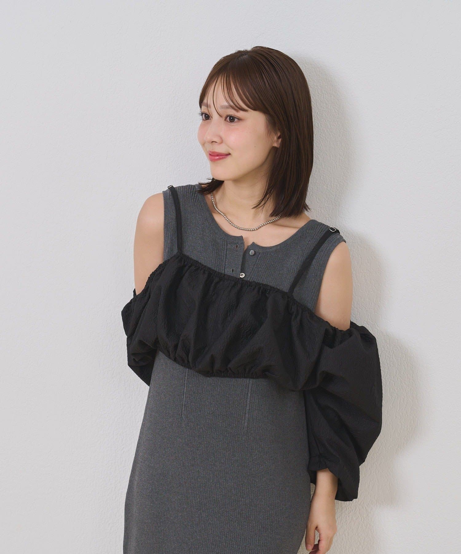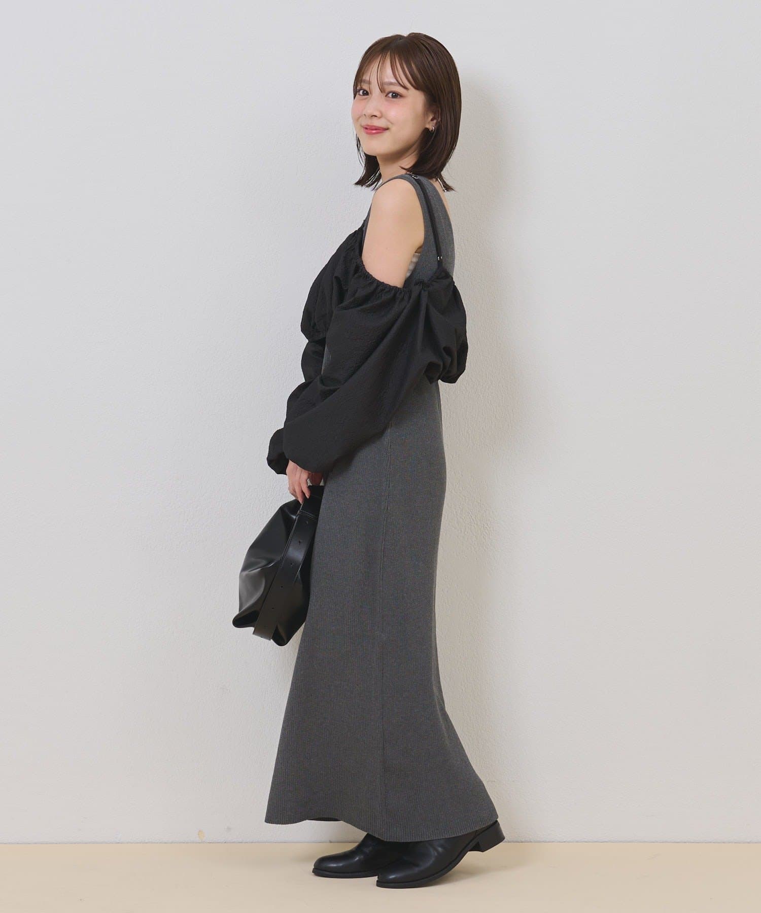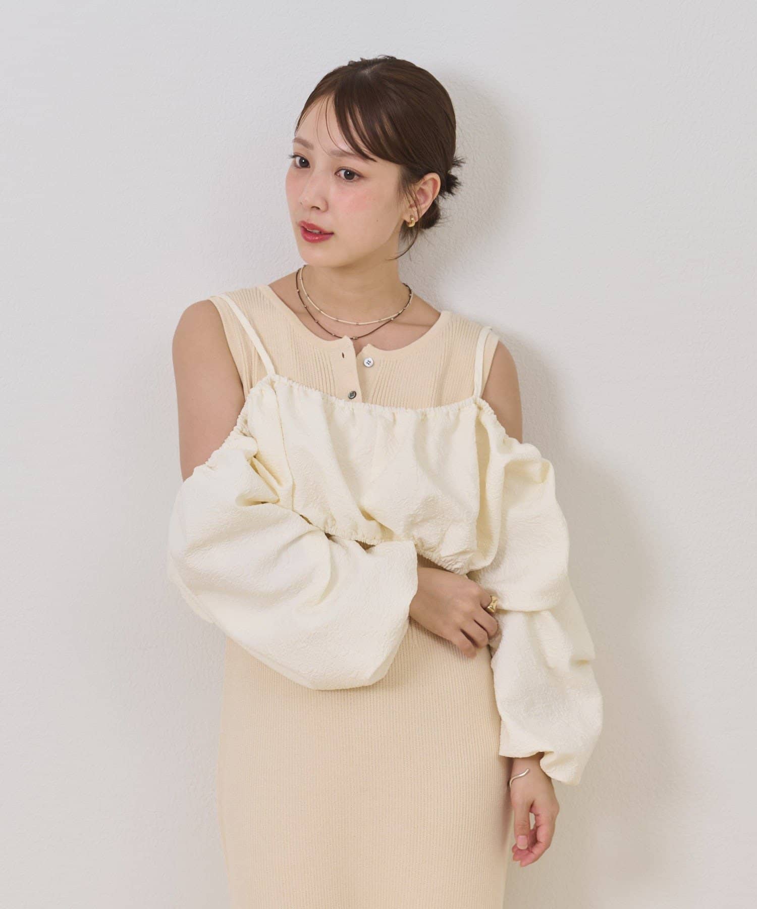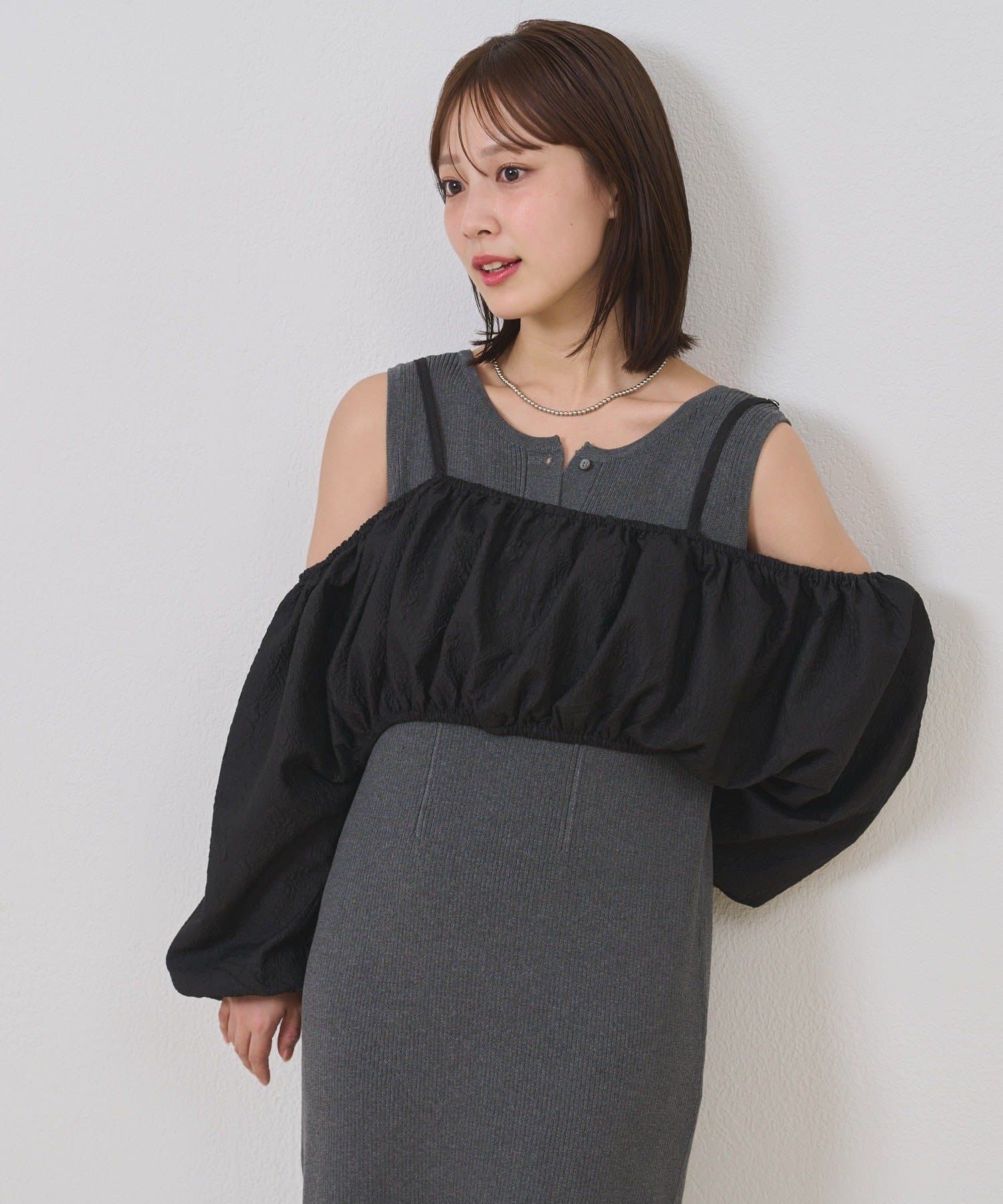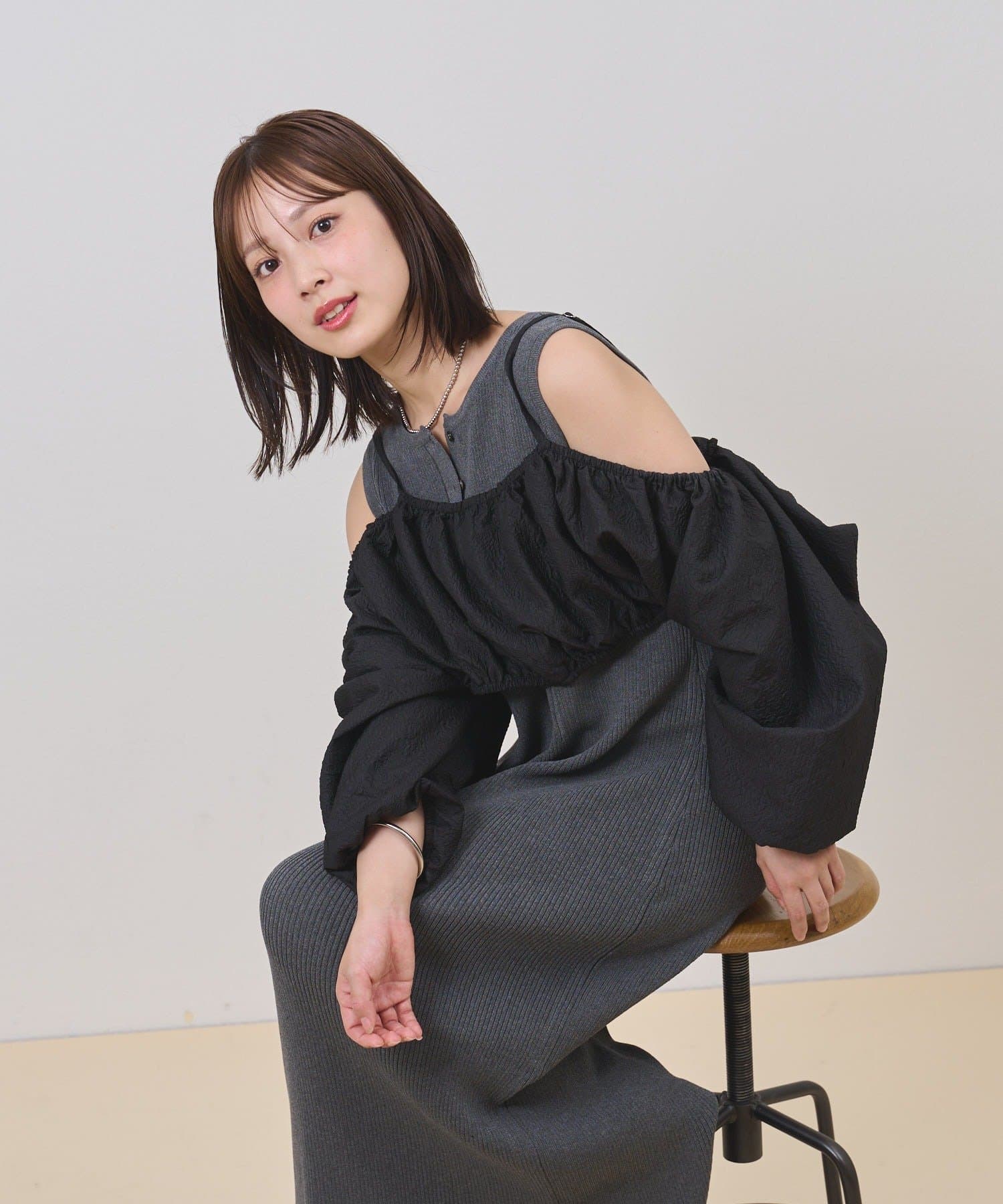 ・オフショルブラウスとニットワンピースがSETになったアイテム。程よい肌魅せが叶うワンピースです♡