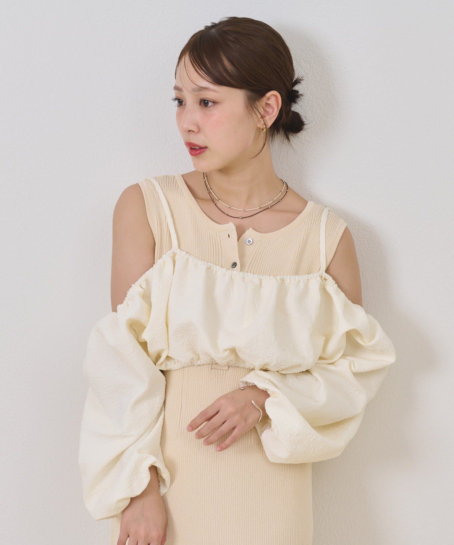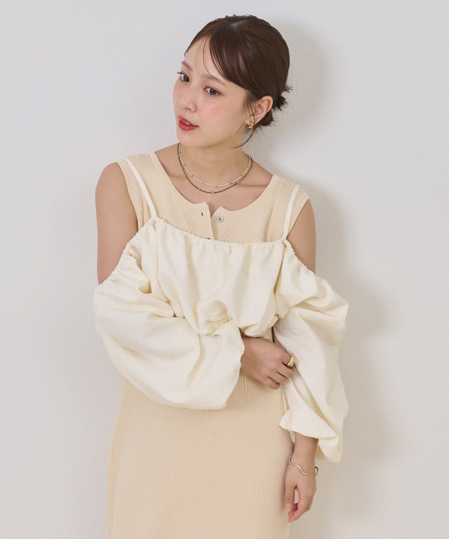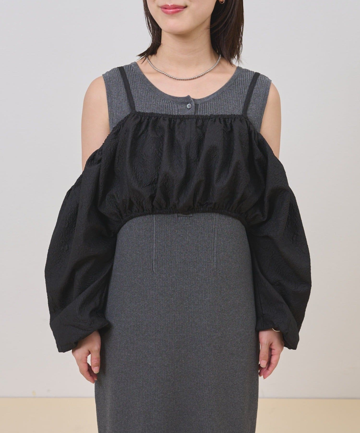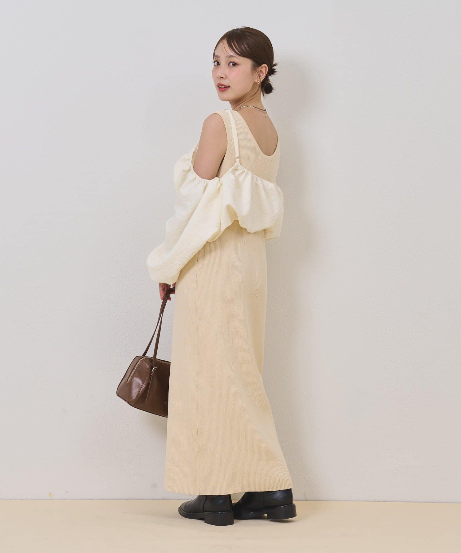 ・オフショルブラウスとニットワンピースがSETになったアイテム。程よい肌魅せが叶うワンピースです♡