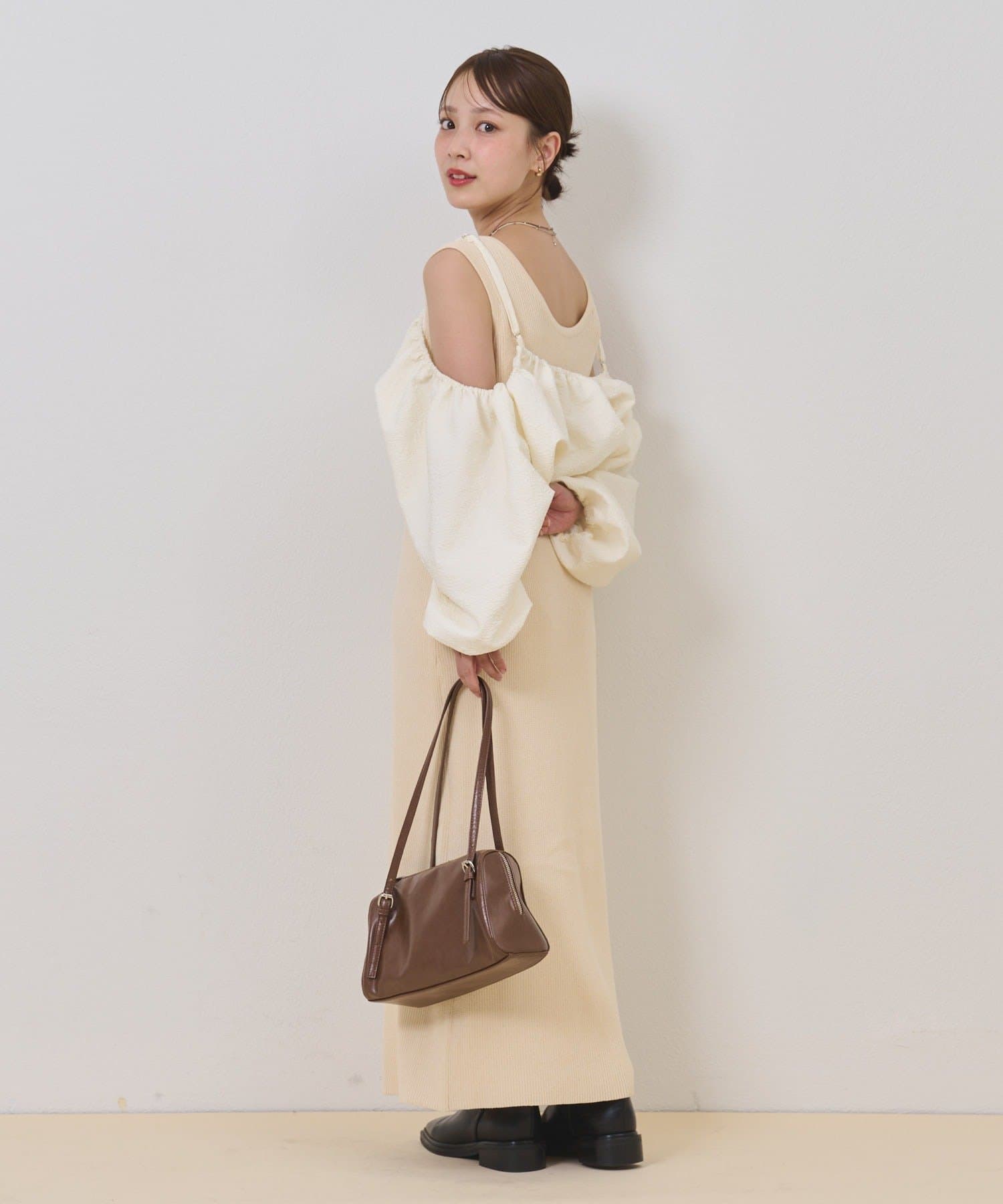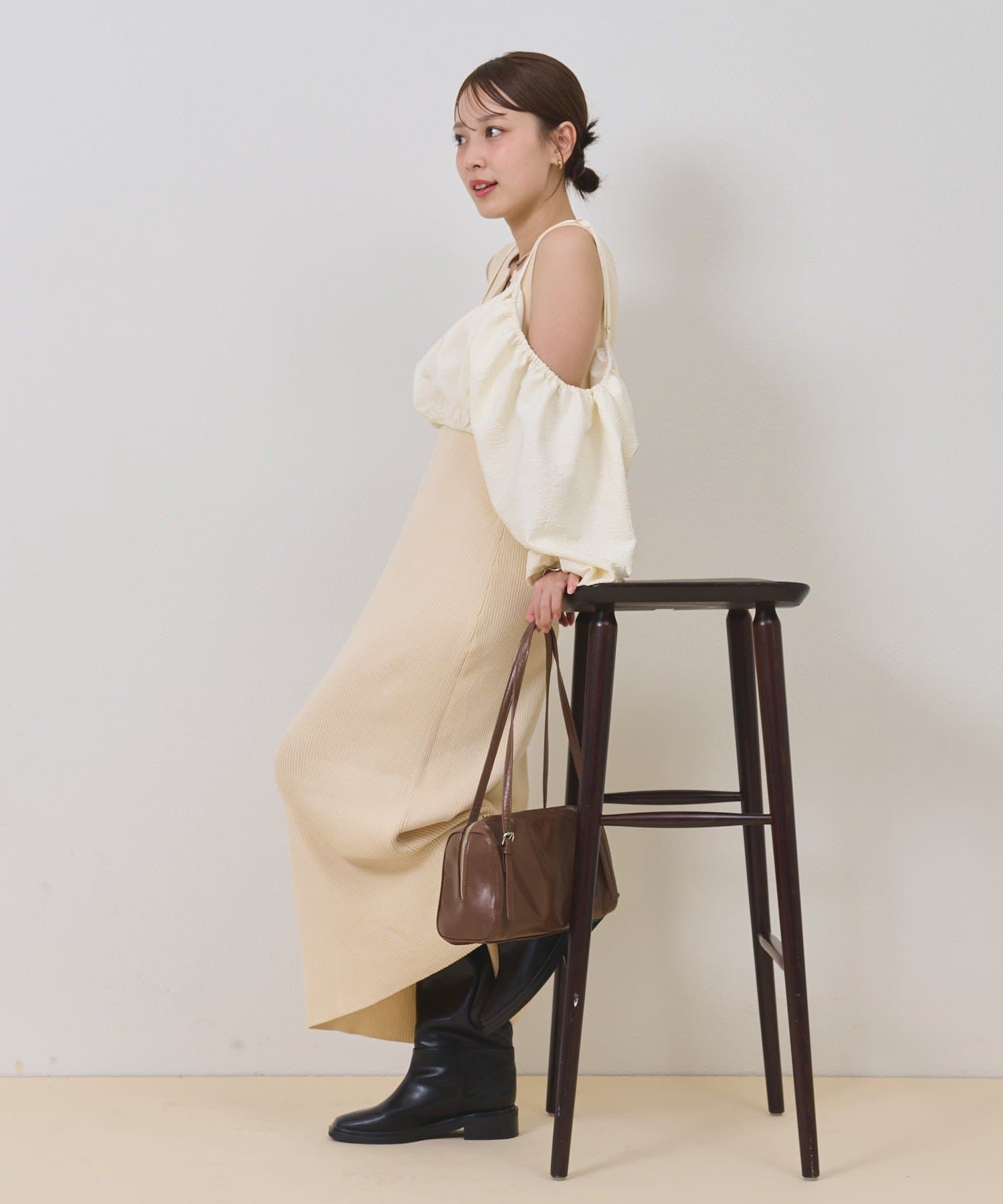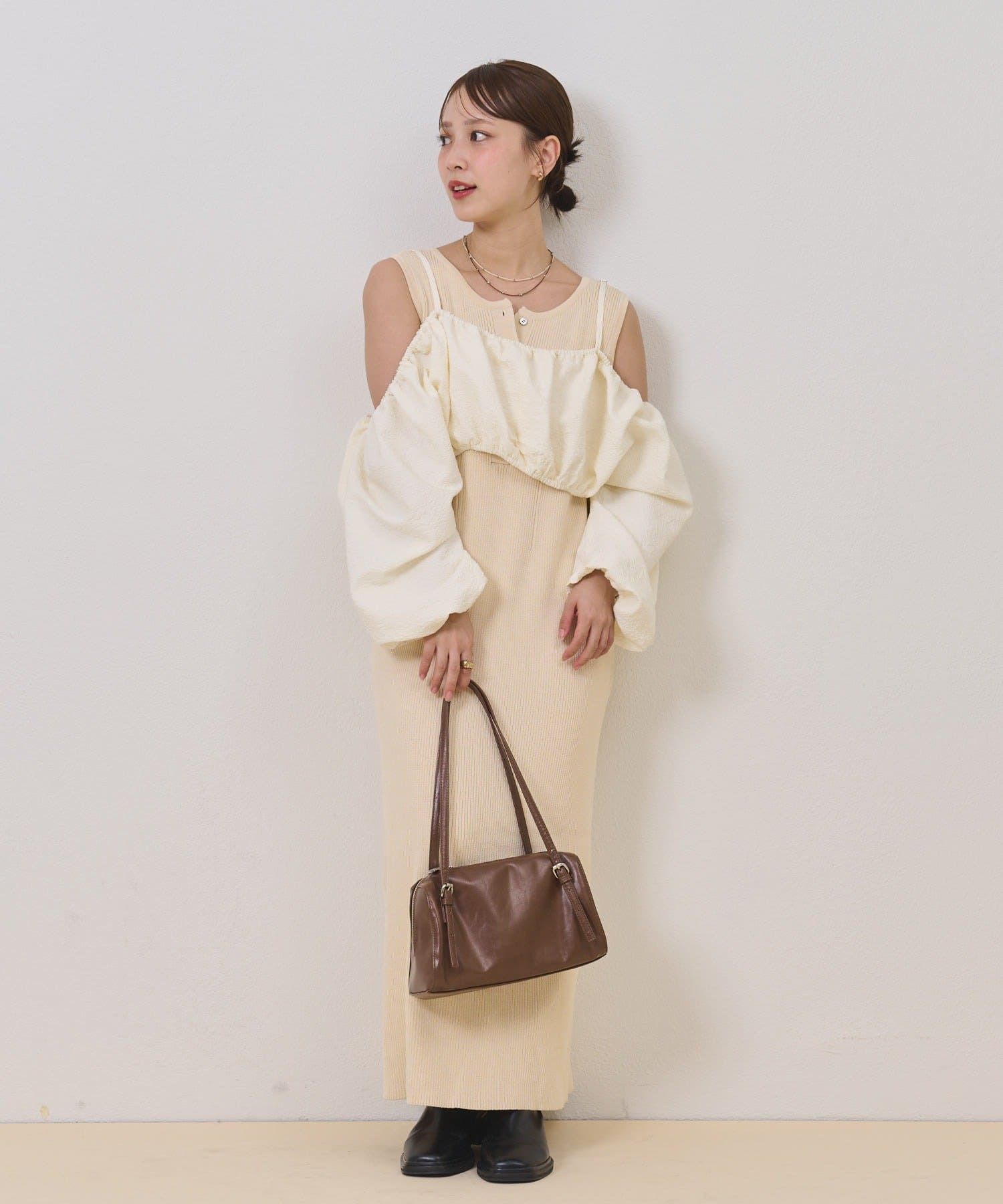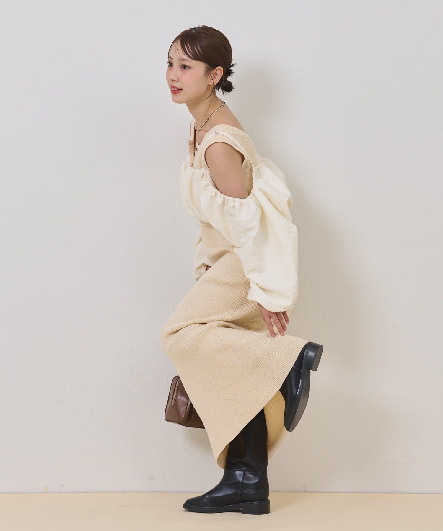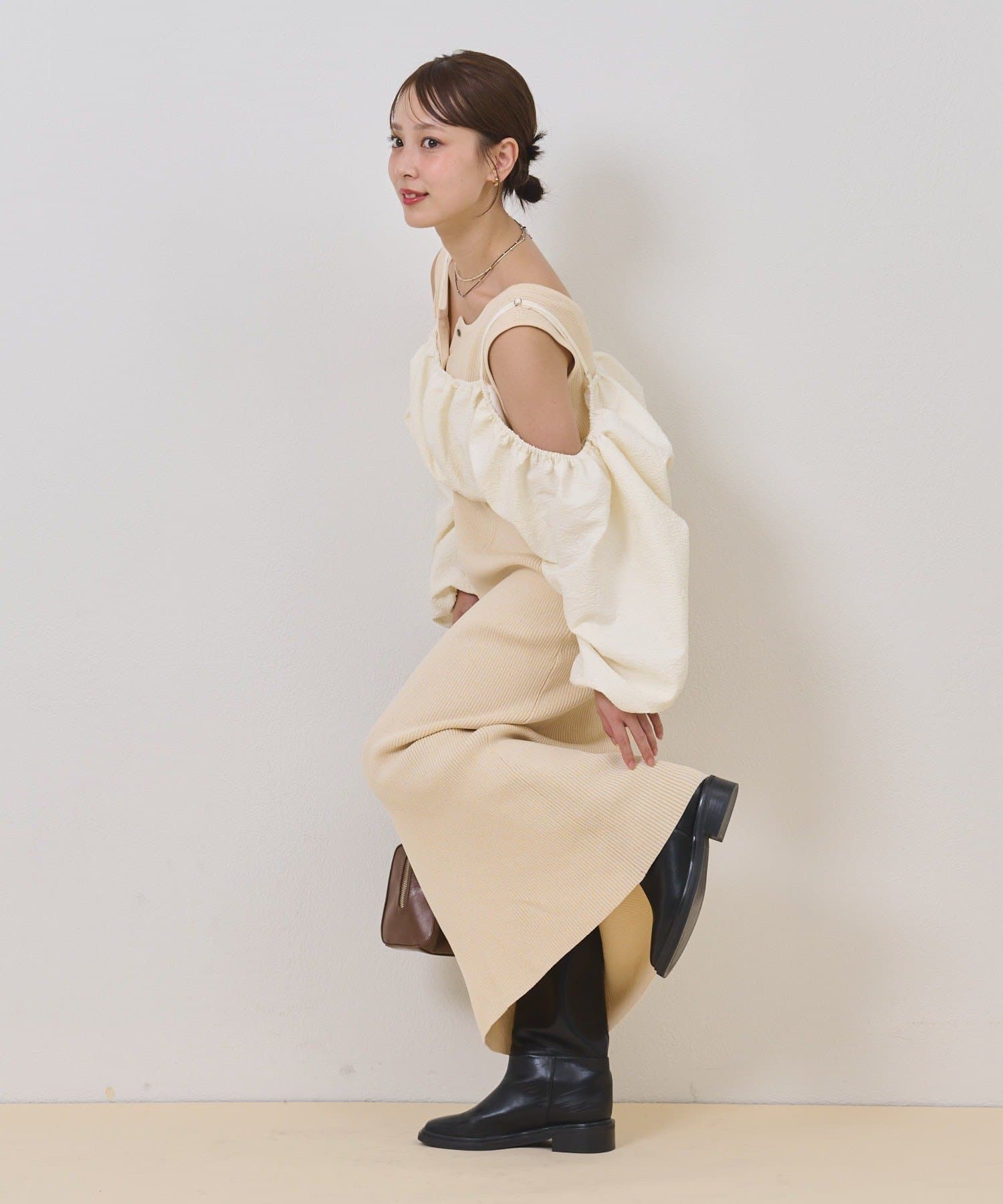 ・オフショルブラウスとニットワンピースがSETになったアイテム。程よい肌魅せが叶うワンピースです♡