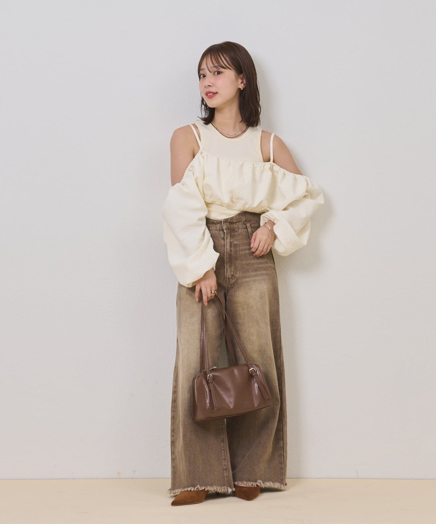 ブラウスはデニム合わせでも着ることができるので少し雰囲気を変えることができます♩
