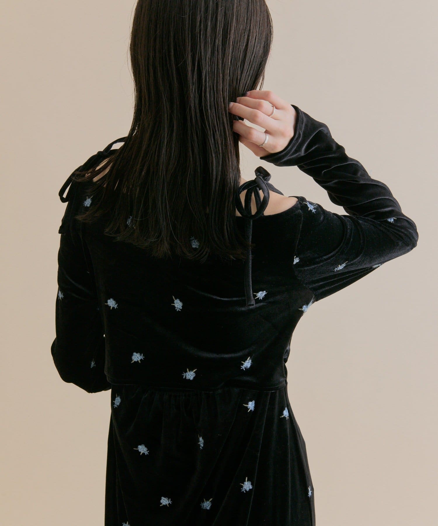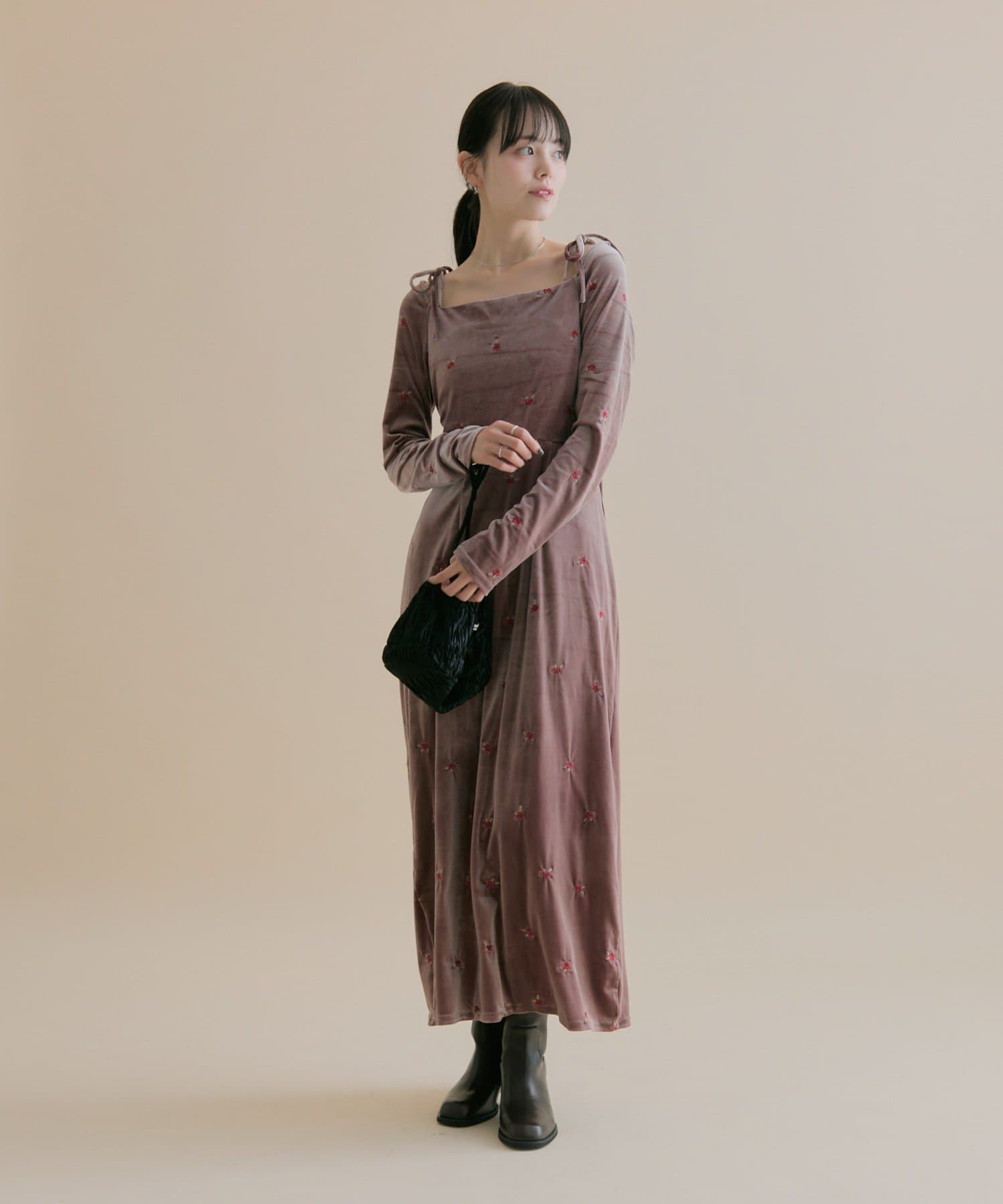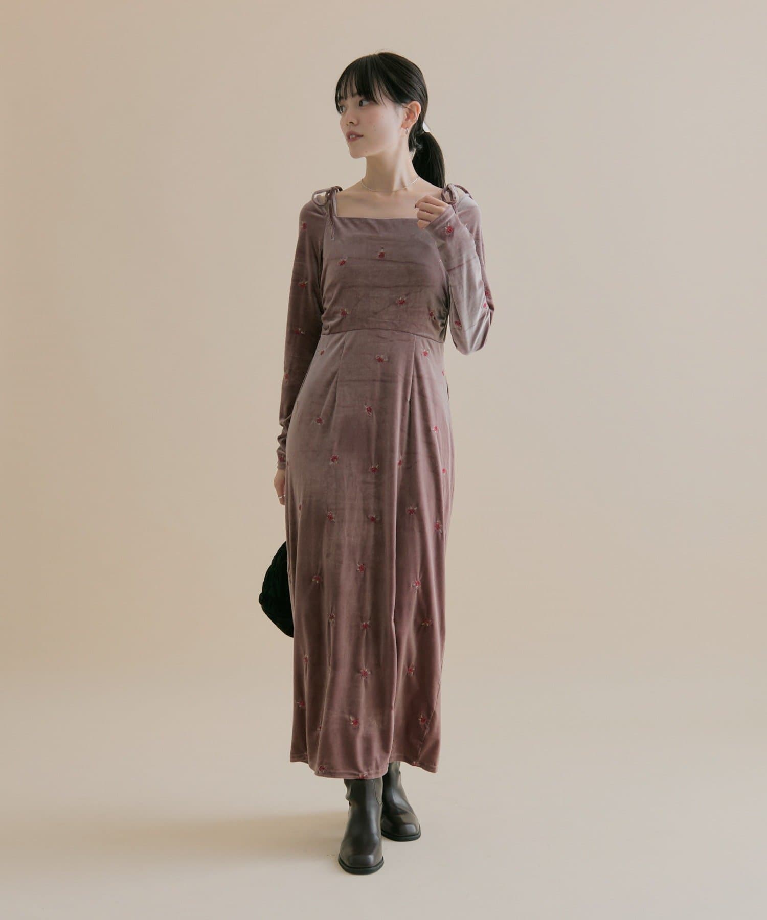 ・大人っぽいベロア素材でお花の刺繍がポイントの高見えワンピ♡!