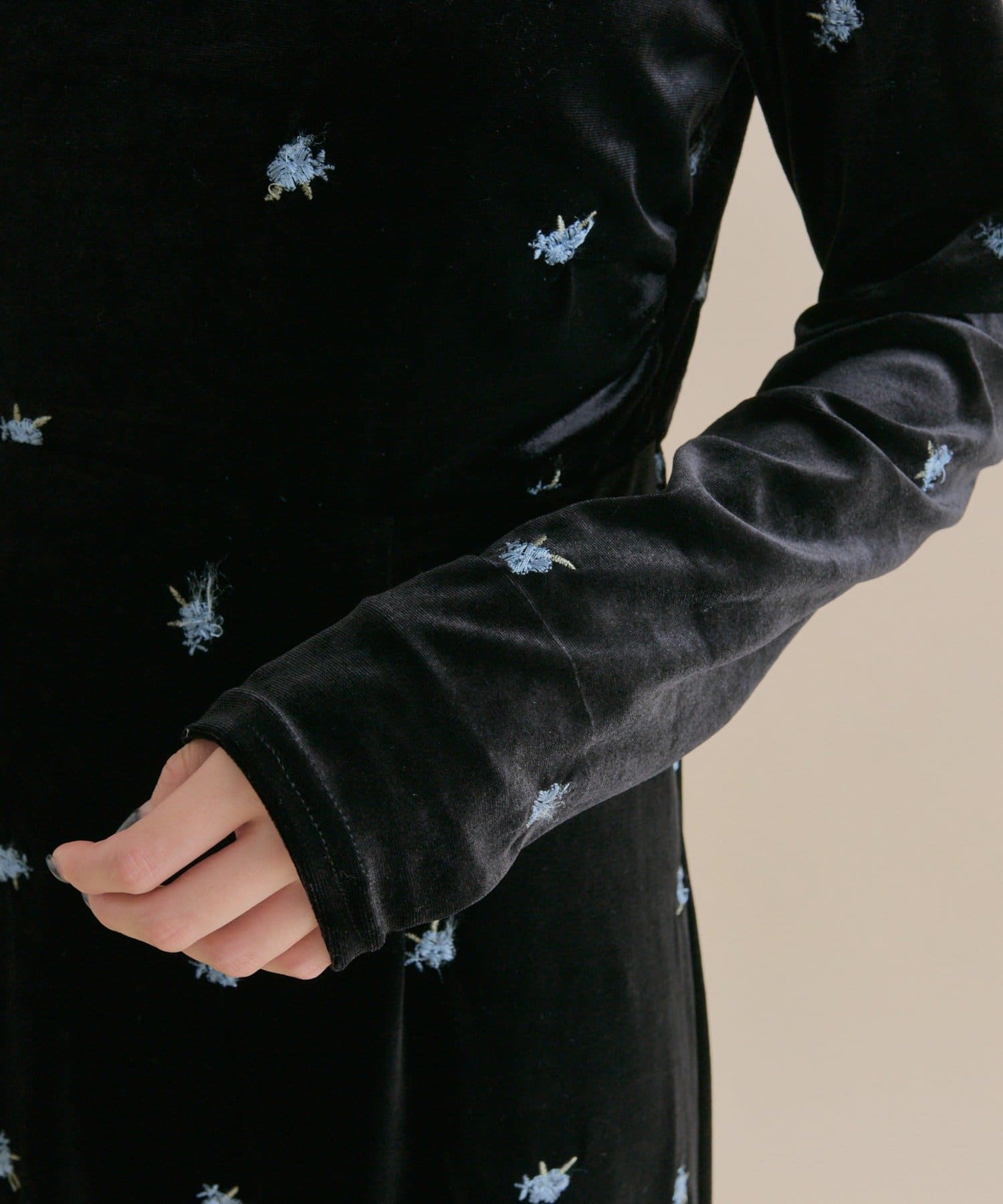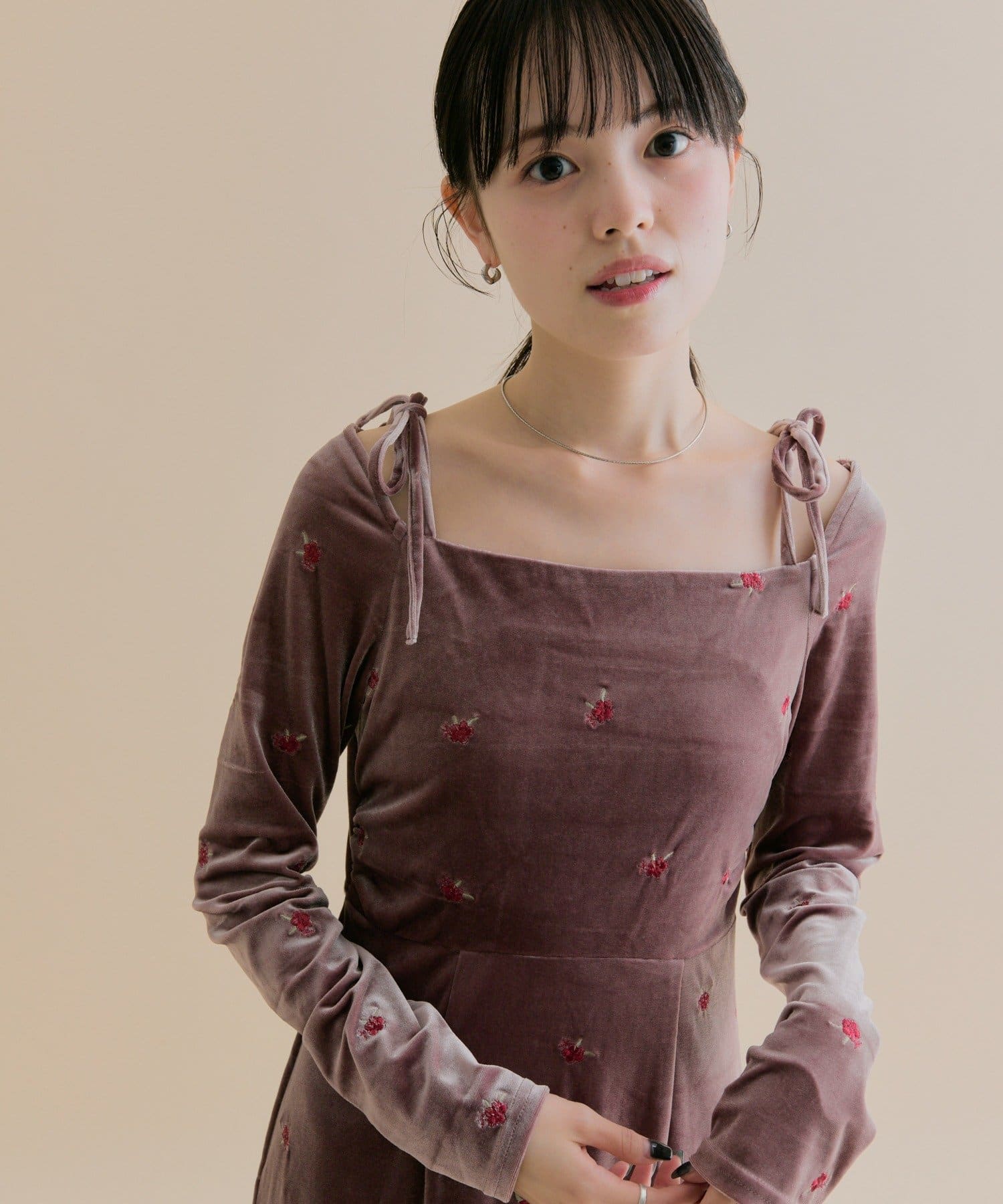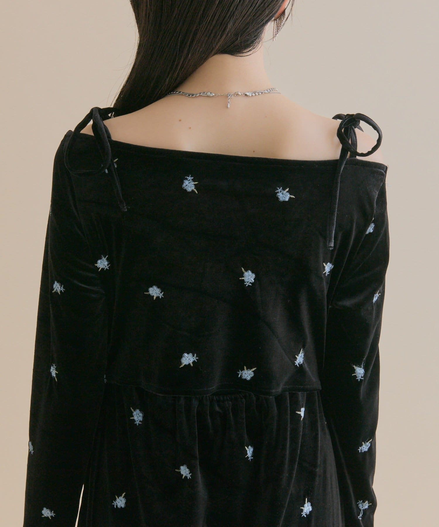 ・大人っぽいベロア素材でお花の刺繍がポイントの高見えワンピ♡!