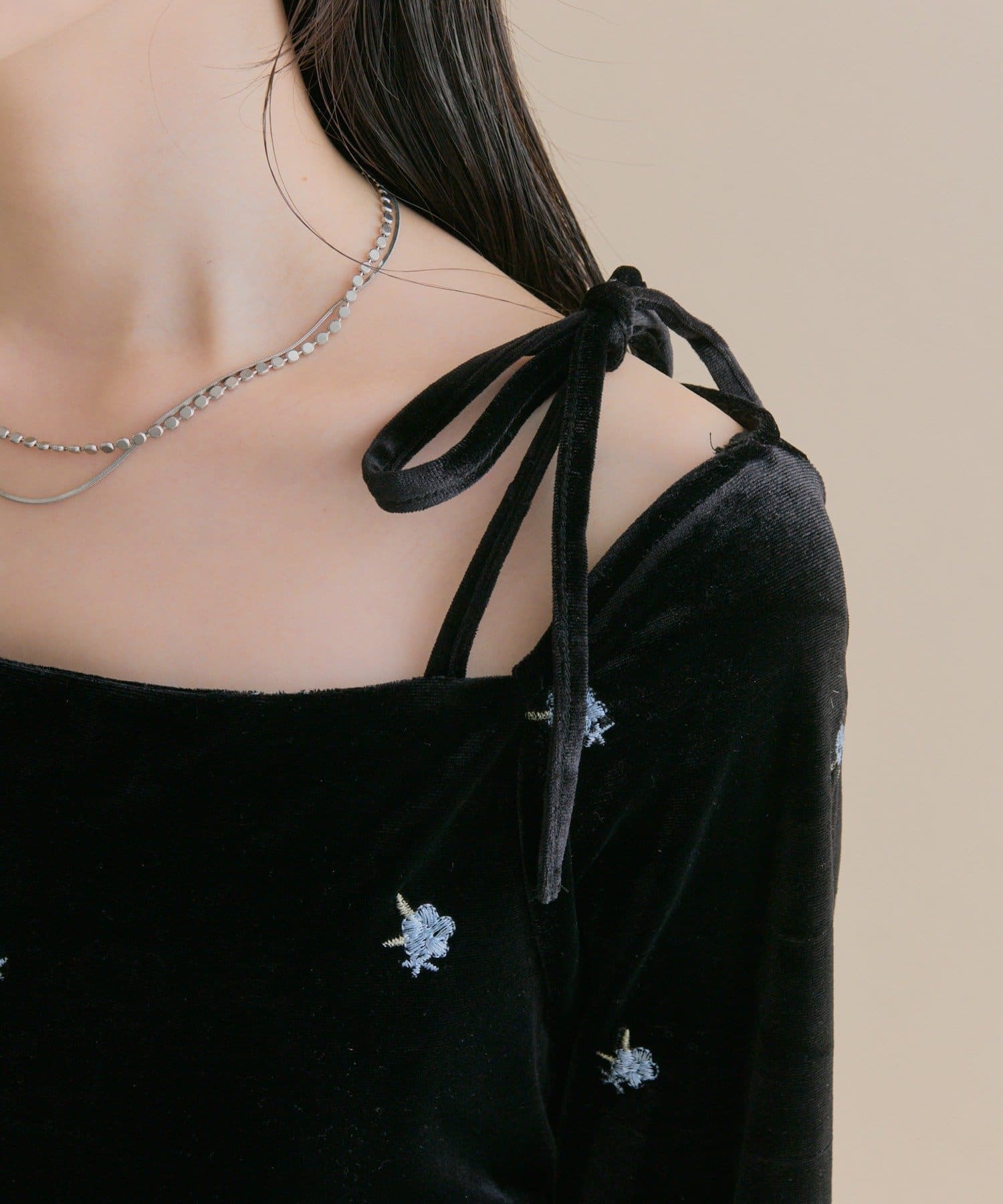 ・ツヤ感のあるベロア素材で一枚で華やかに着こなしていただけます。