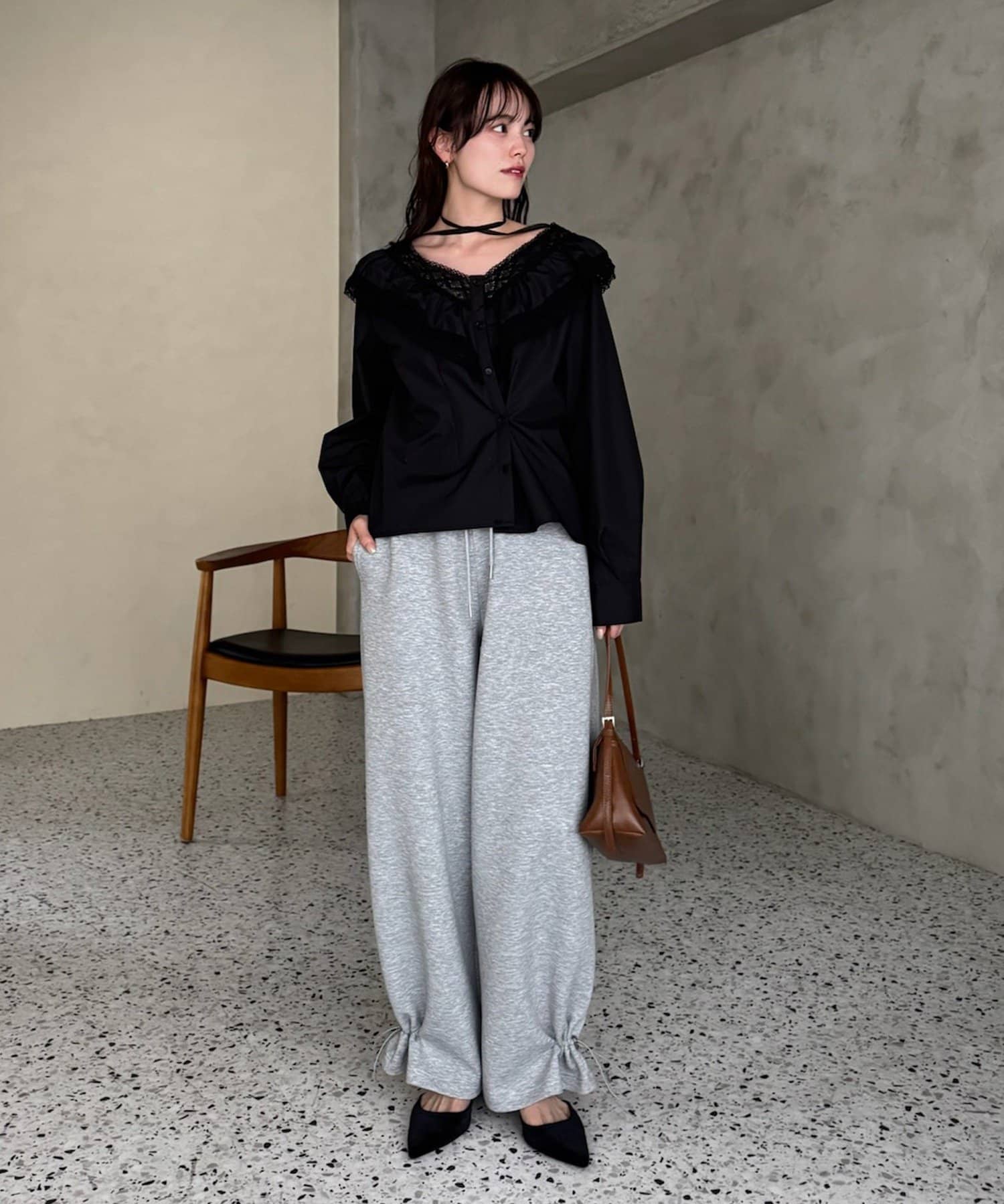 ・トレンドのスウェットパンツと合わせると、大人カジュアルコーデの完成!