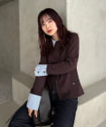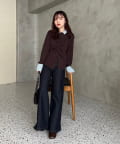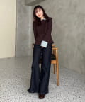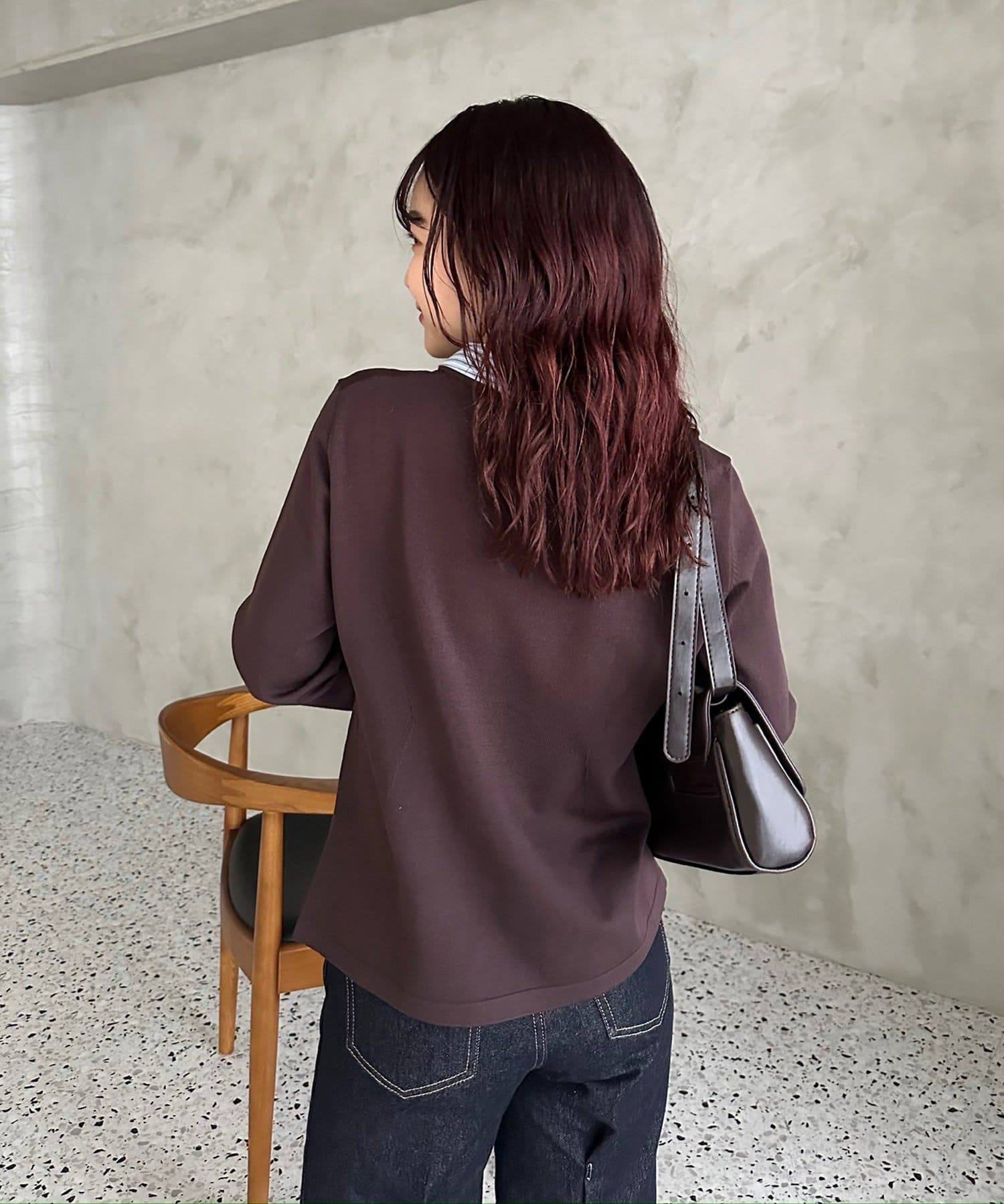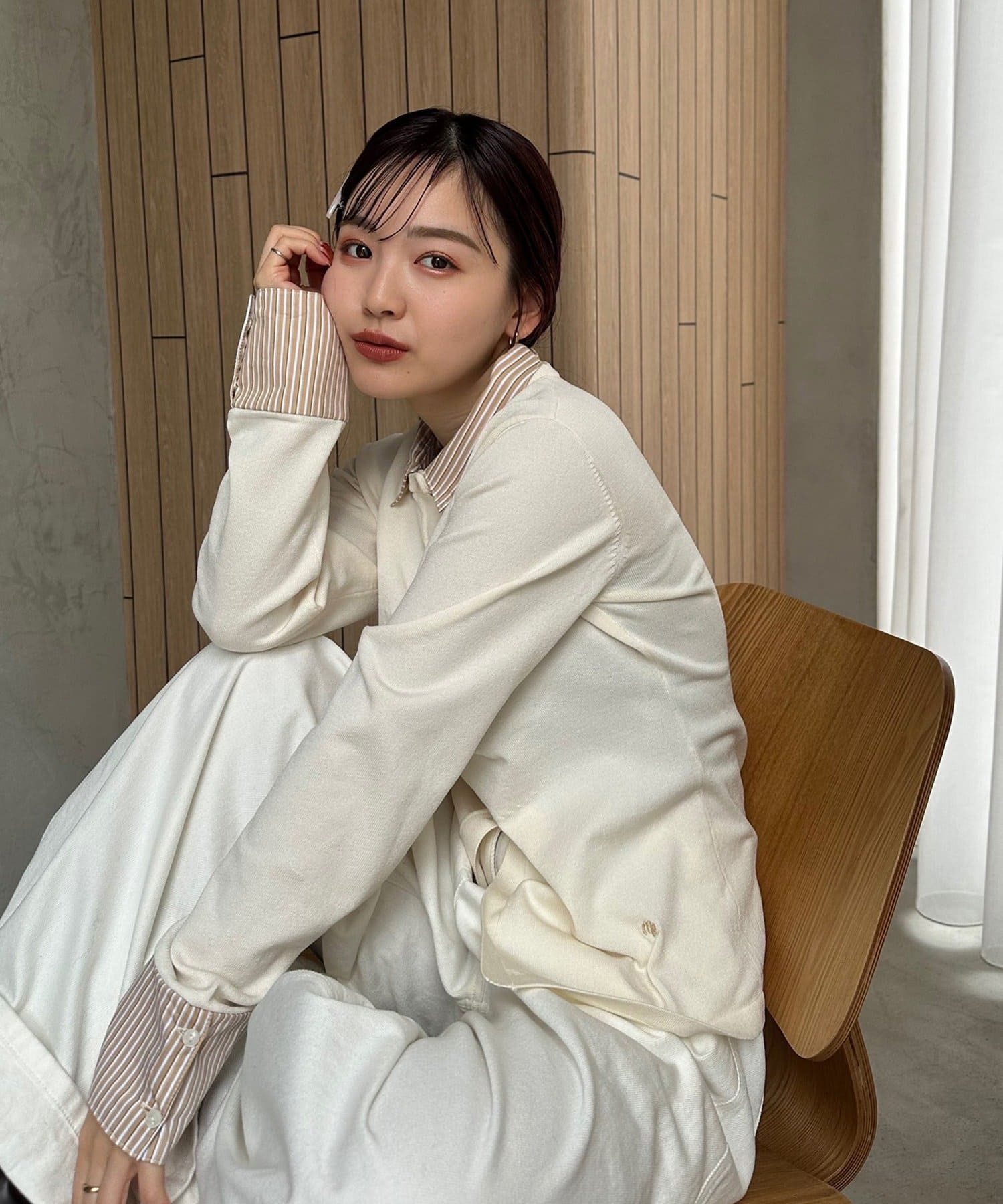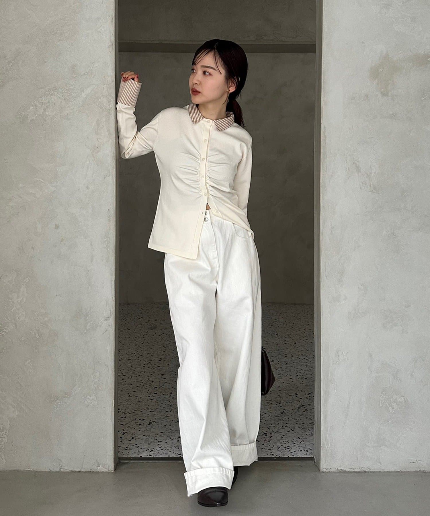 ・襟を取り外してクルーネックカーディガンとしても!下にカラーのTシャツを重ねるのもおすすめです!