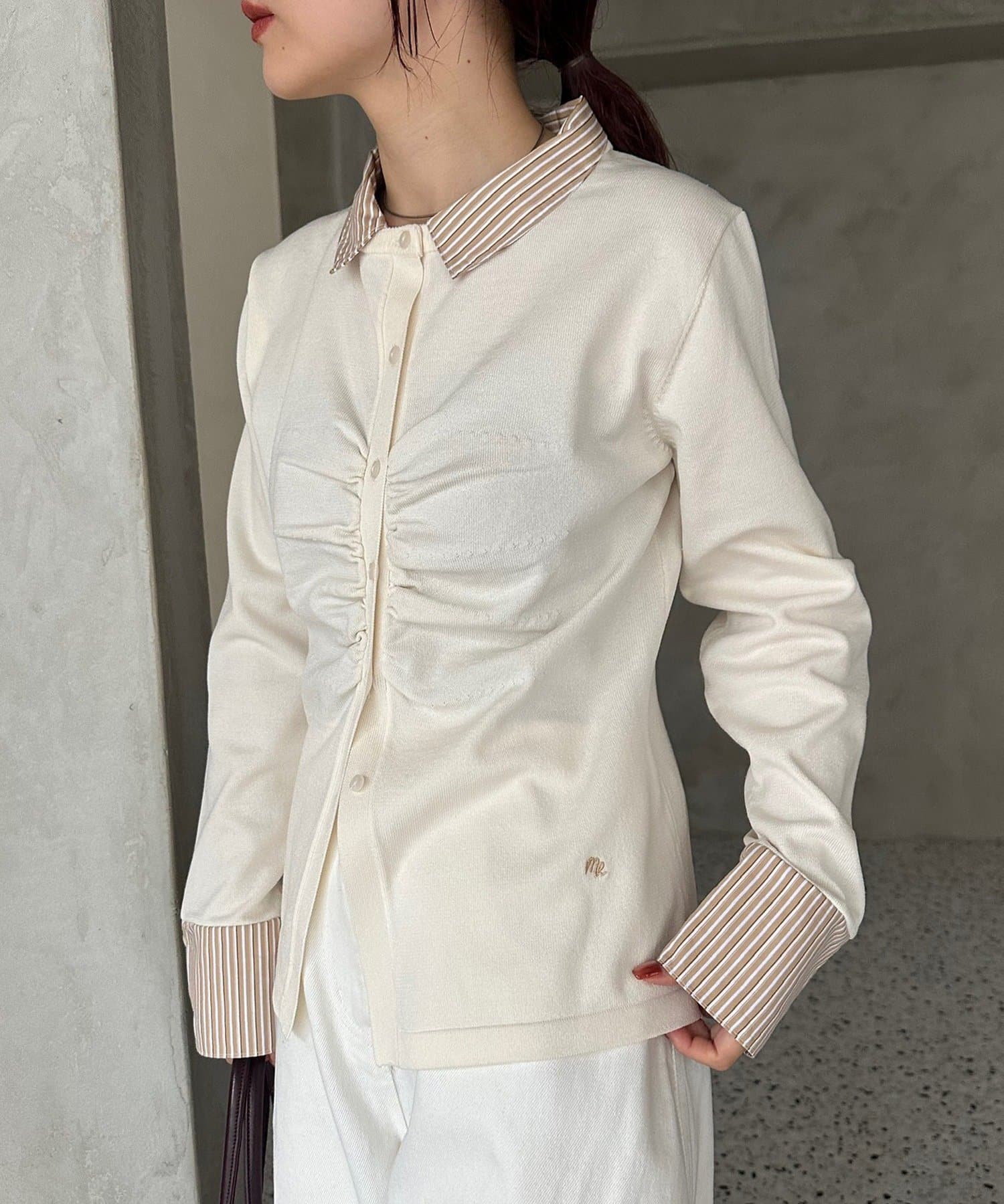 【@___s_m17企画】ストライプ付け襟配色ニット