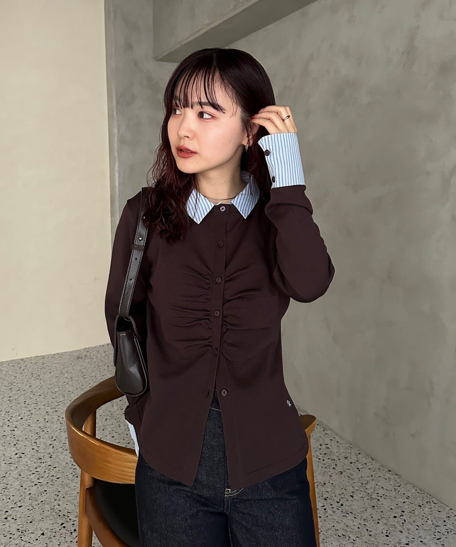 ・1枚でレイヤード風コーデが完成するトレンドライクなカーディガン。