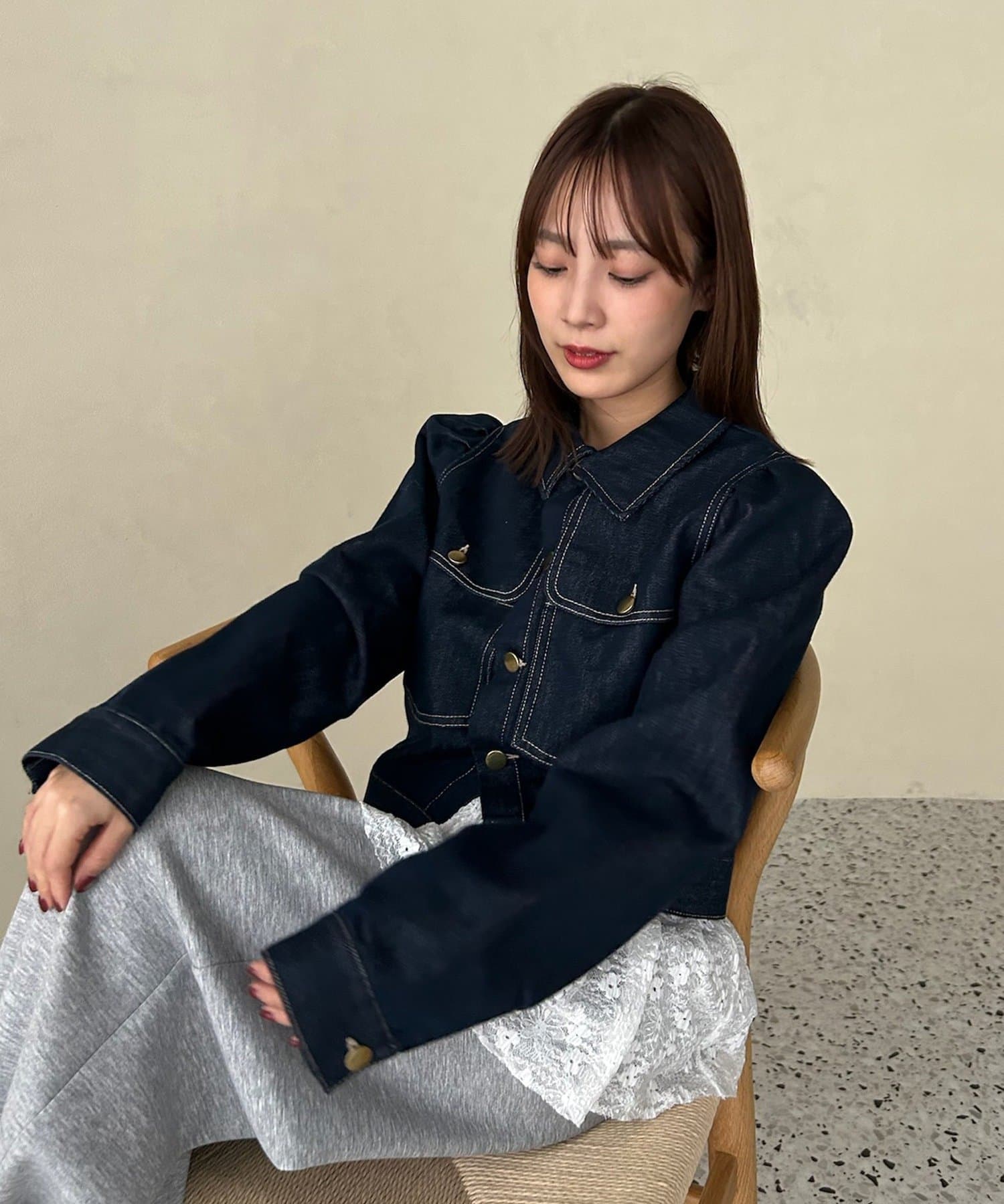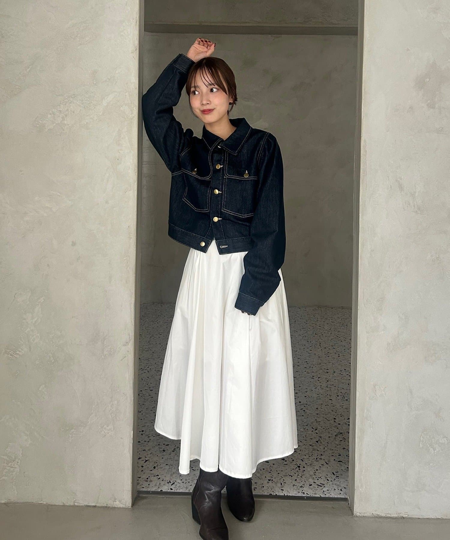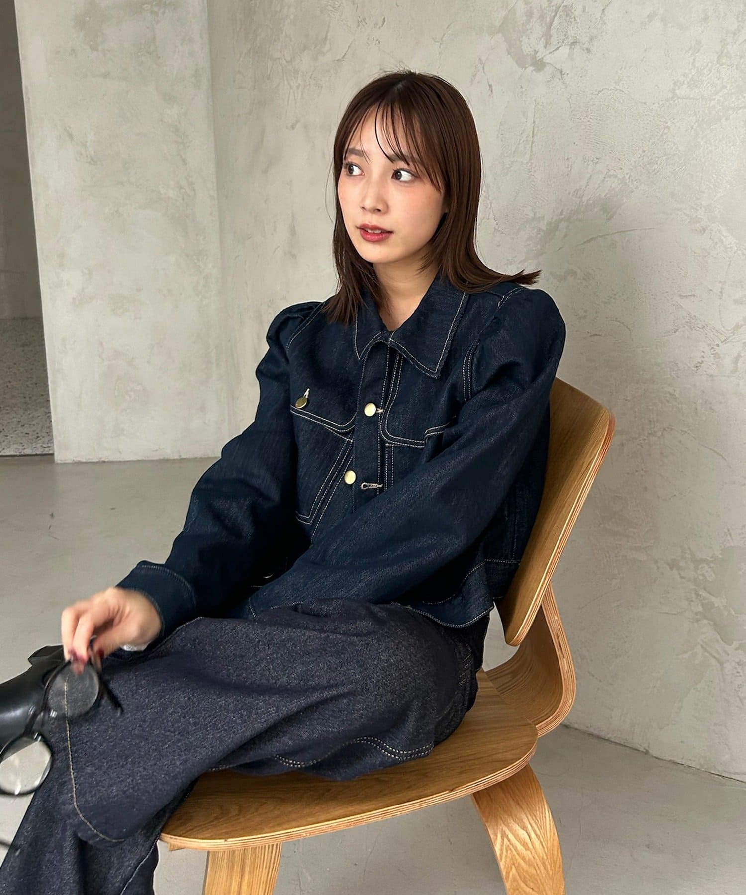 ・お手持ちのデニムと合わせたセットアップ風の着こなしがおすすめです。