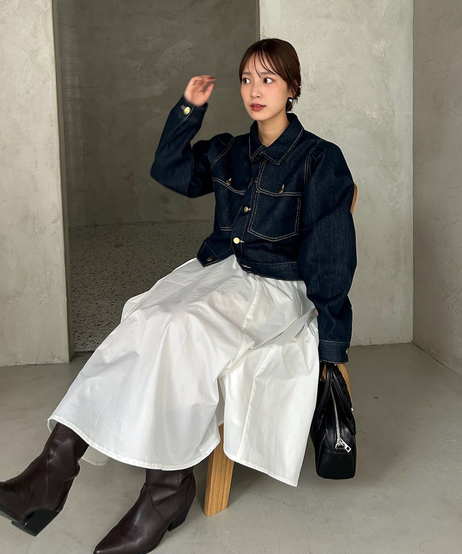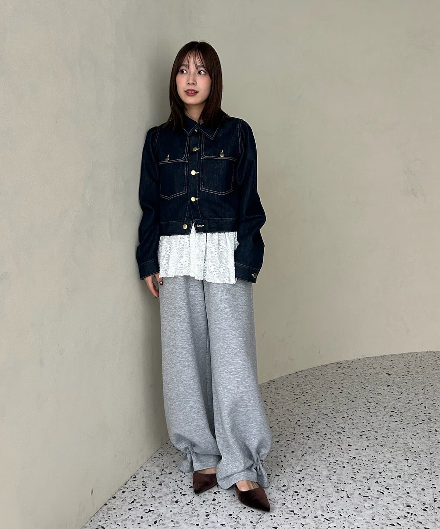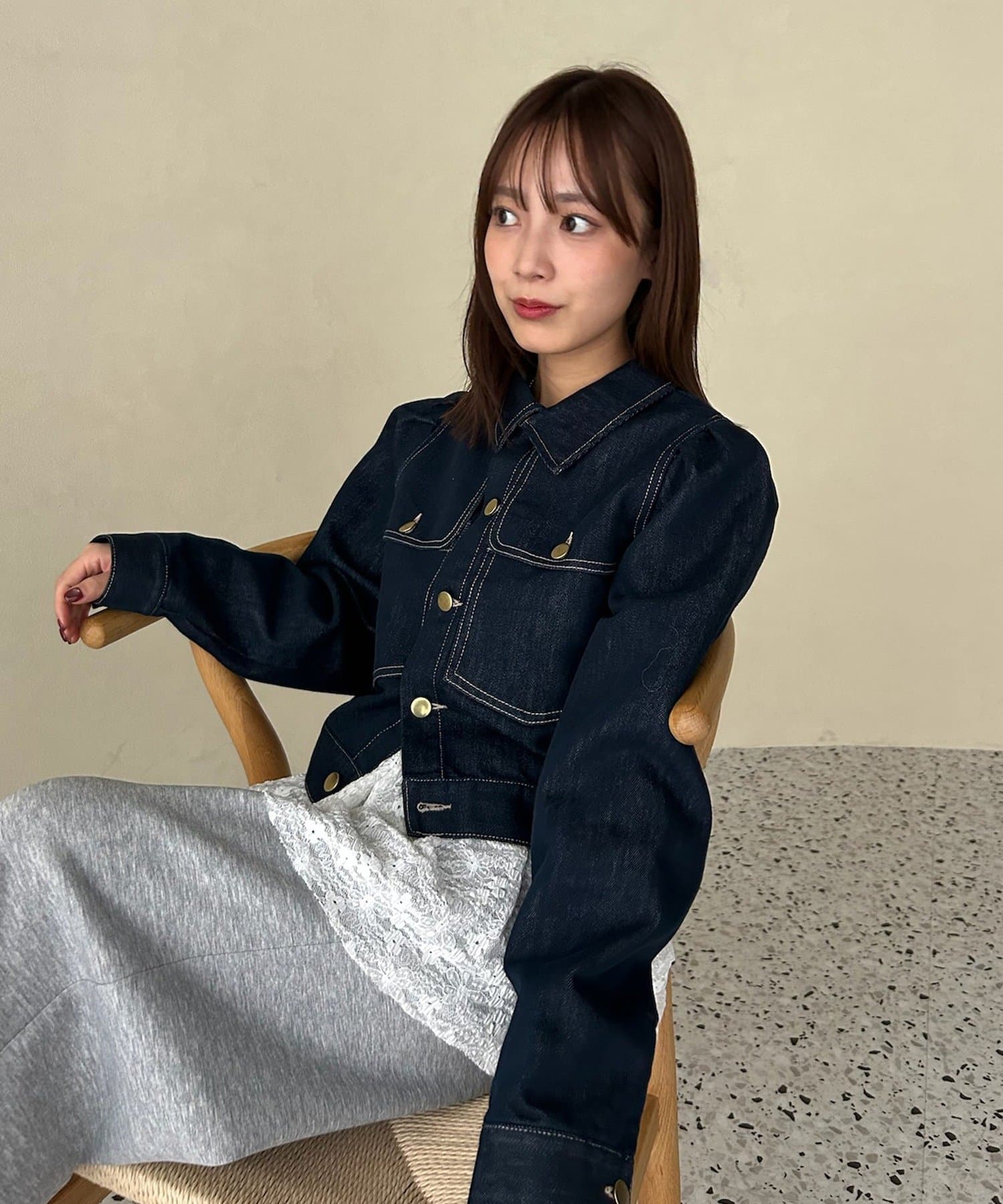 ・お手持ちのデニムと合わせたセットアップ風の着こなしがおすすめです。