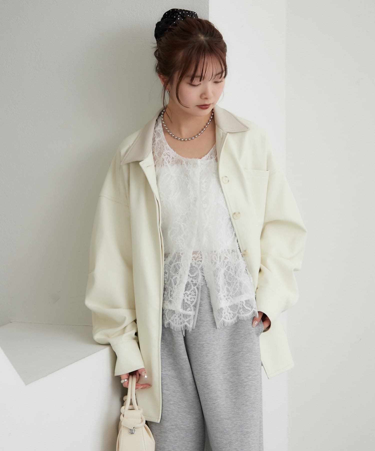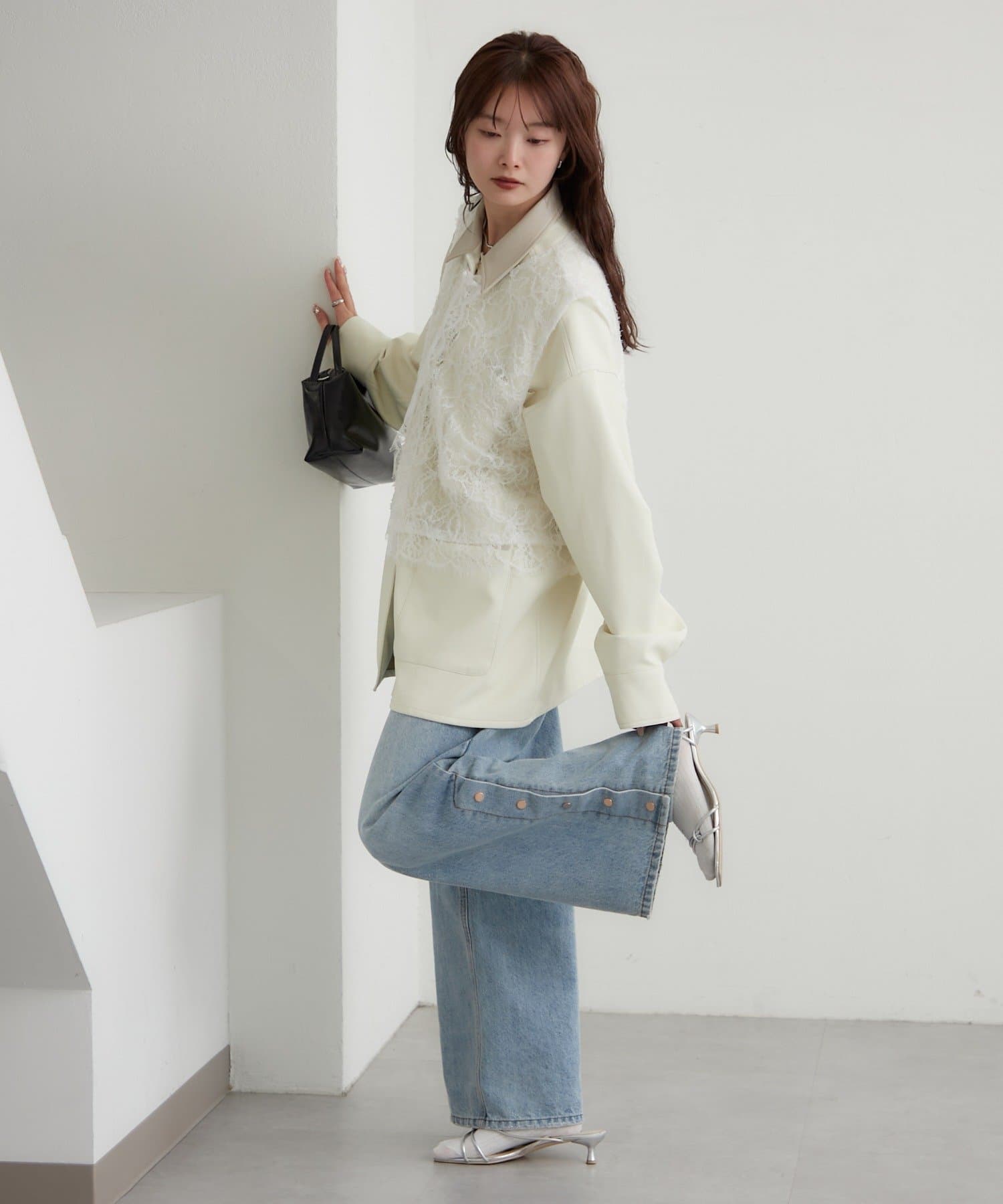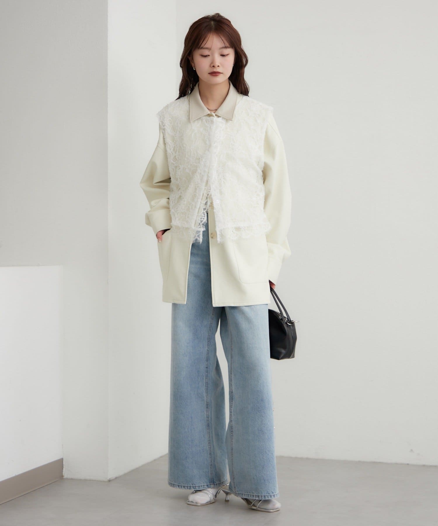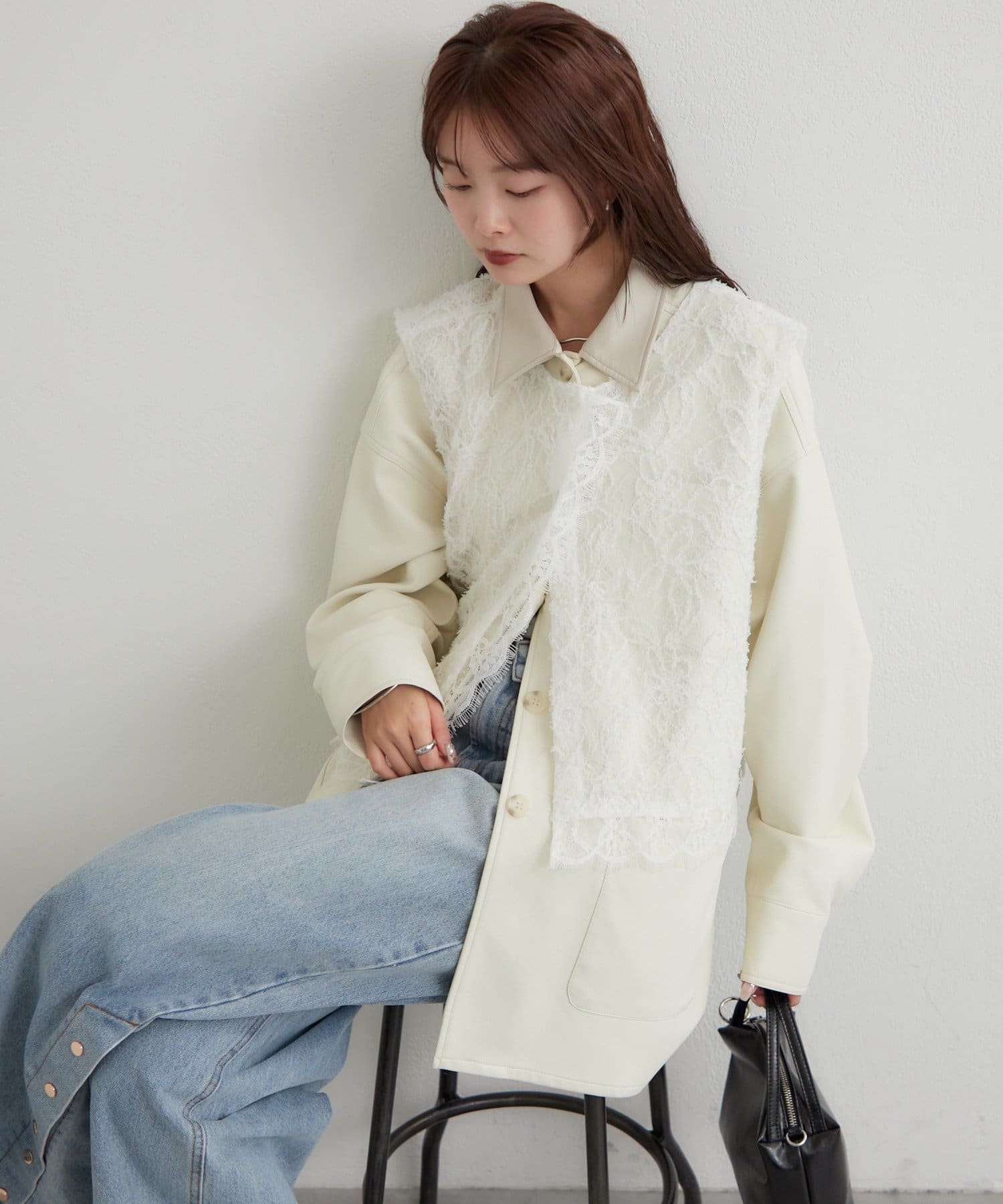 ・ジャケットのみで着用するのも、ジャケットの上からレースのベストを羽織るのも可愛く、様々な着こなしができるのが嬉しいです!