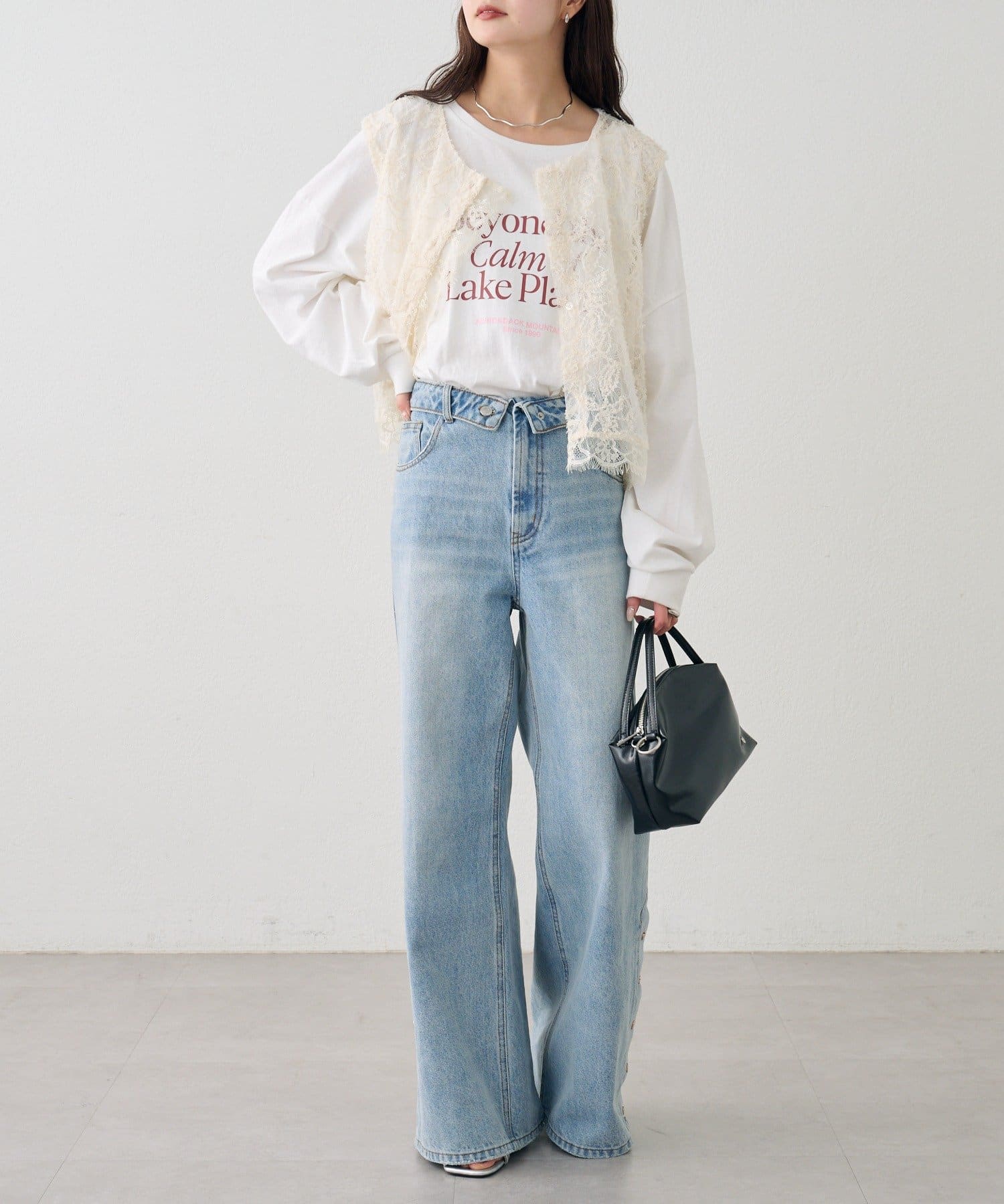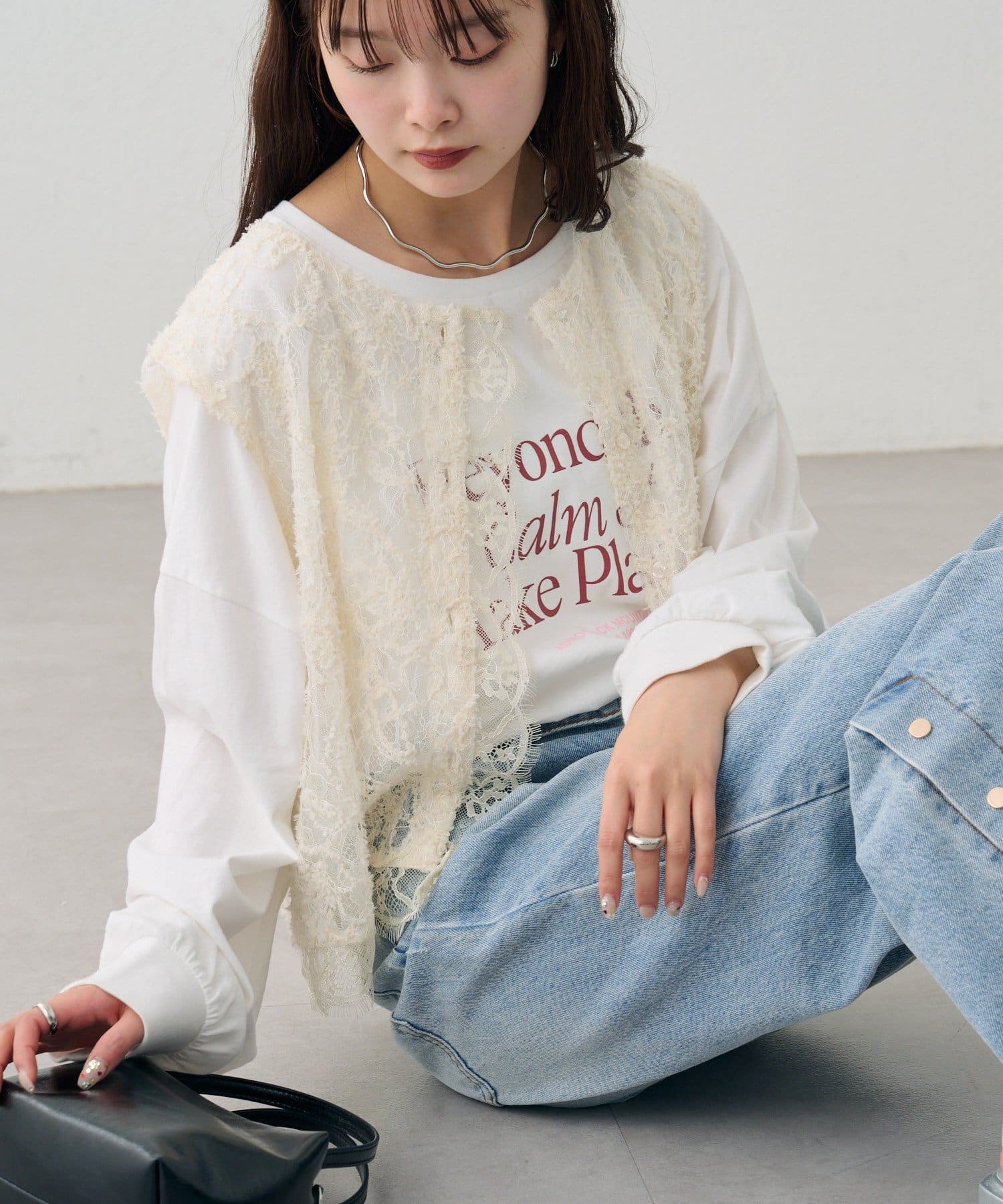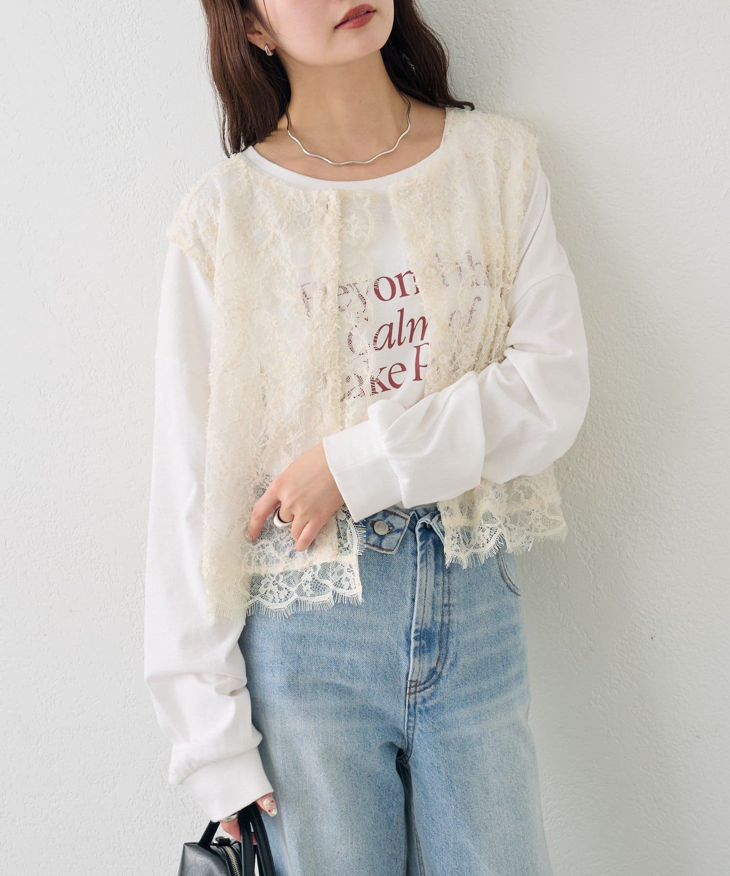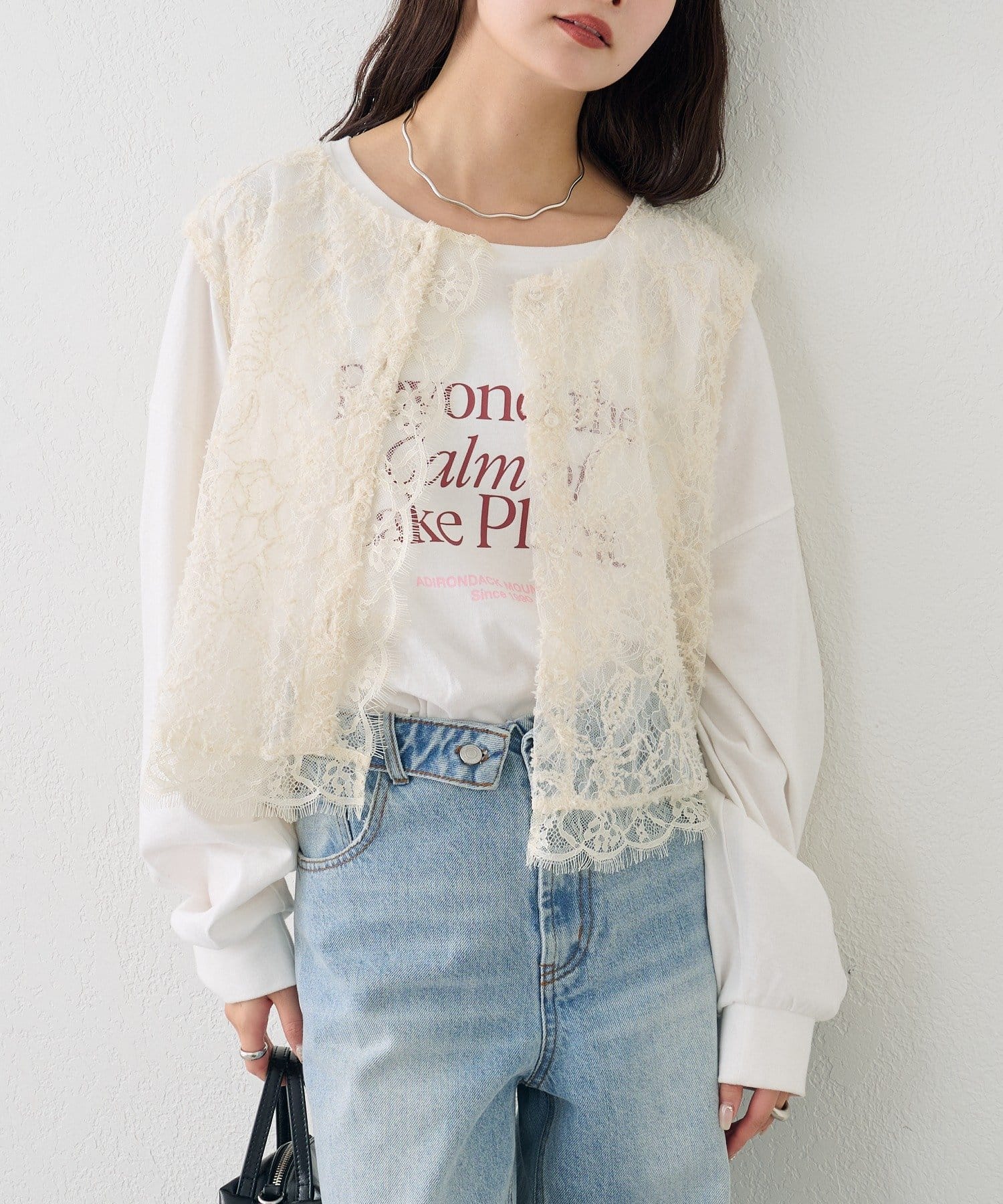 ・夏日はセットのレースベストをタンクの上から羽織ったり、Tシャツの上に重ねるのがおすすめ◎