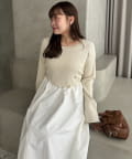 ・リブニットとバルーンスカートの切り替え部分を少しウェーブデザインにしたことで、ウエストラインが女性らしくキレイに見えます◎ごわつきや、気ぶくれなどの心配なしです!