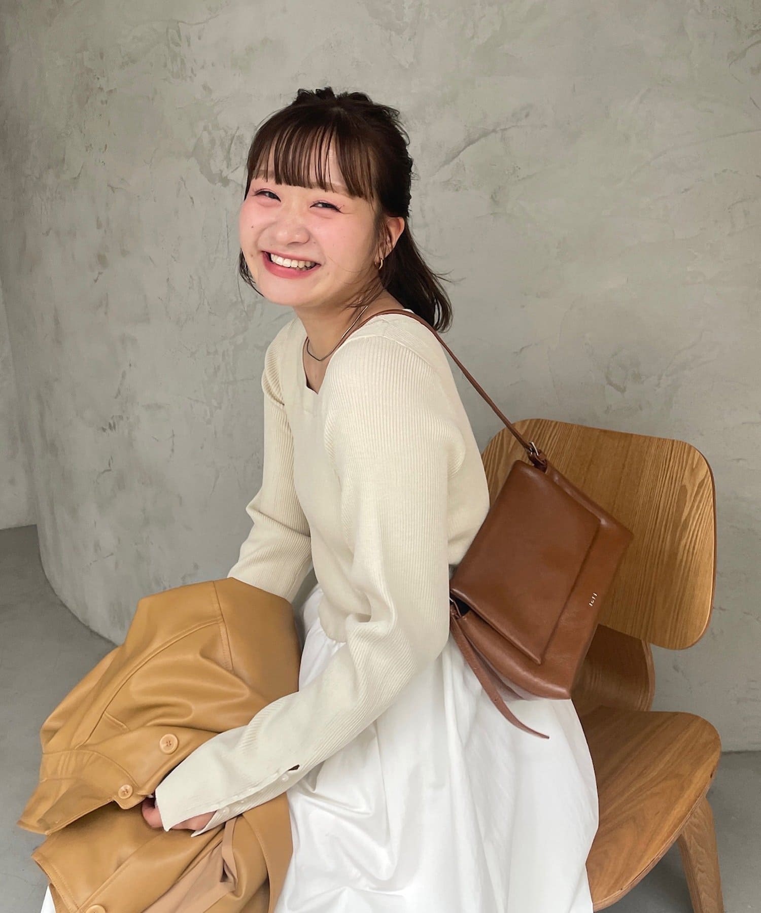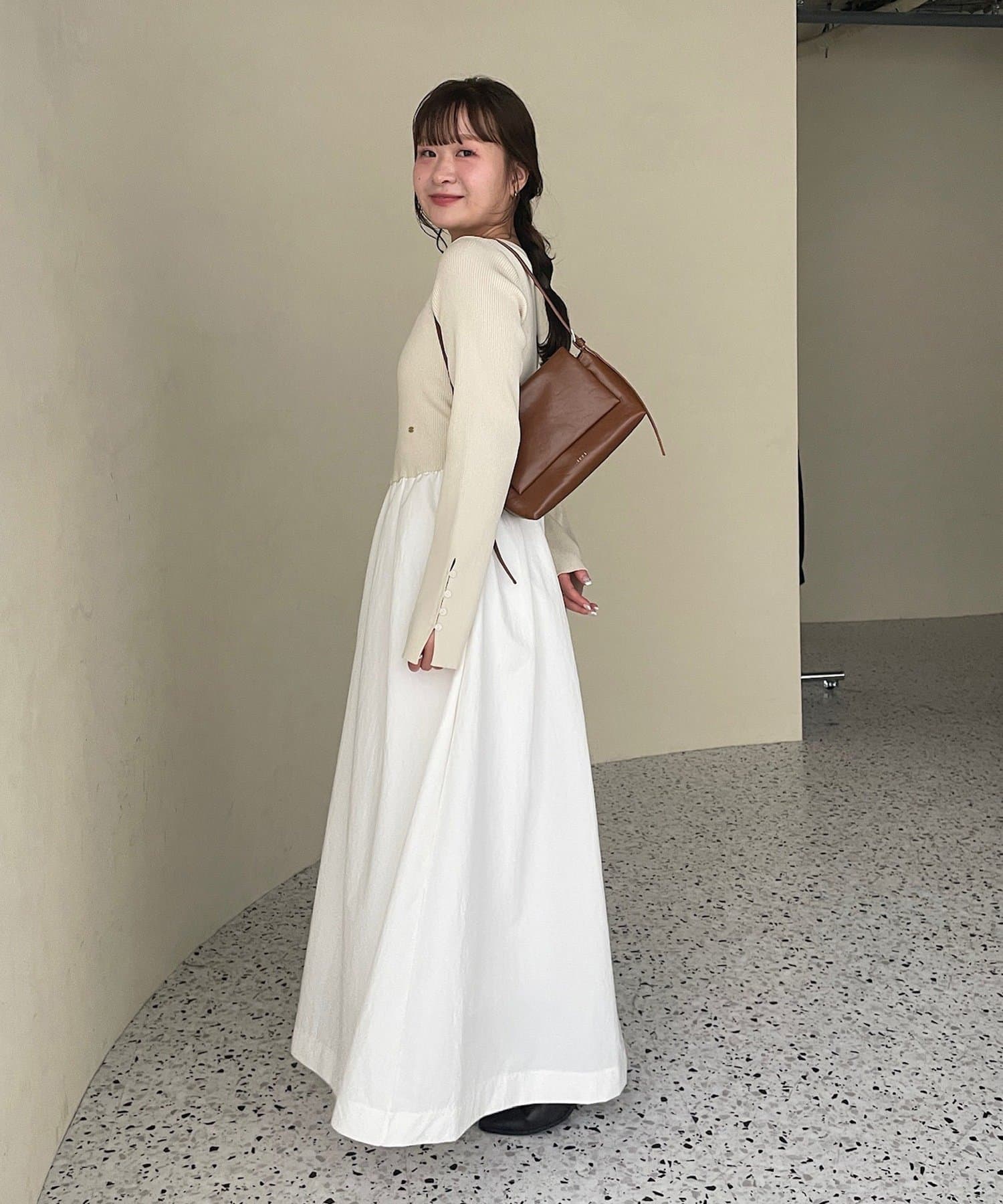 ・薄手のニット素材と程よいボリューム感のスカートで、様々なアイテムとレイヤードを楽しめます。