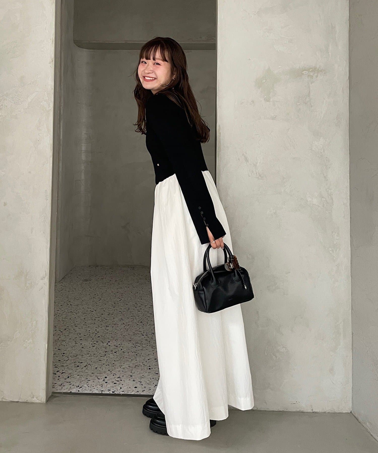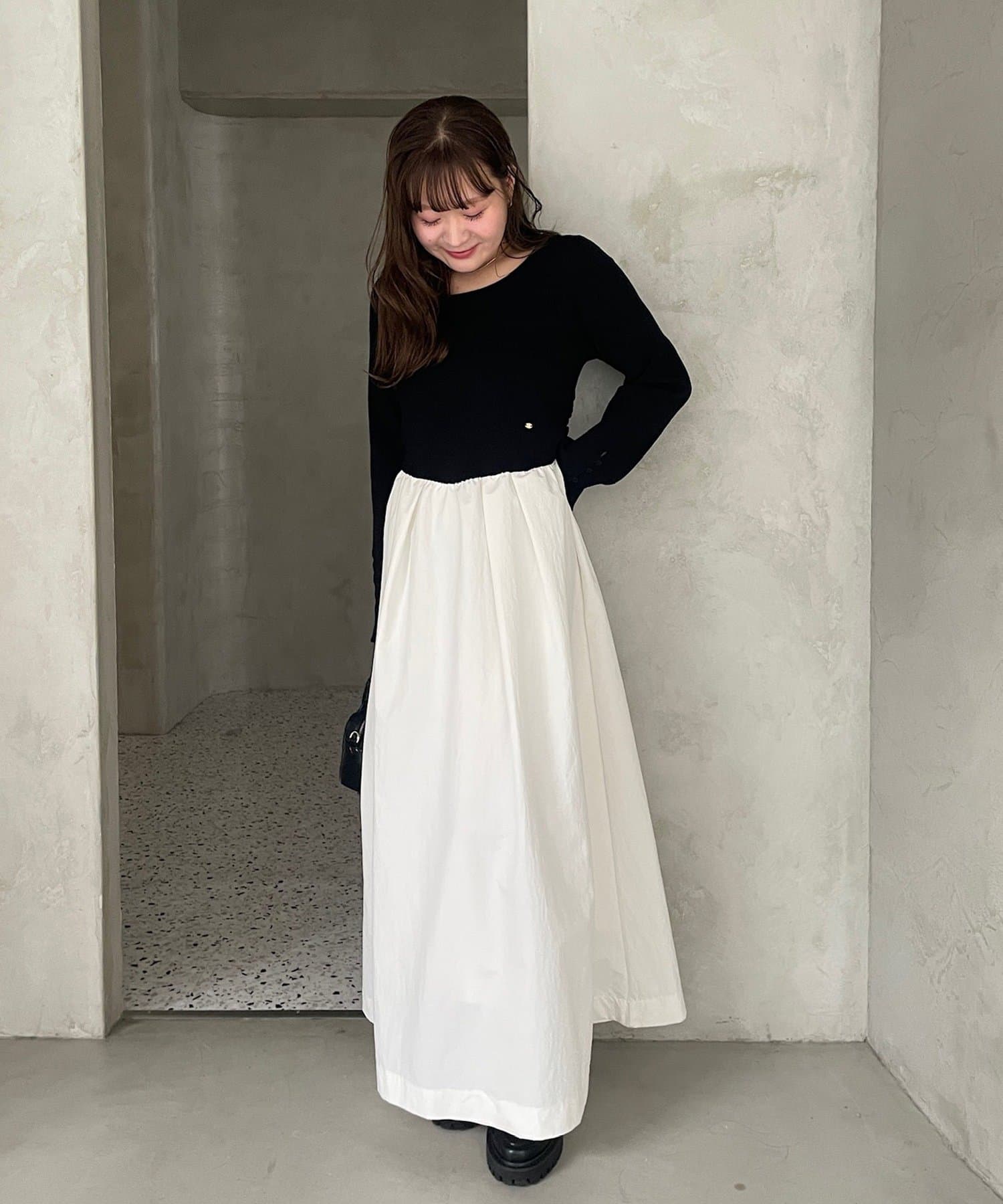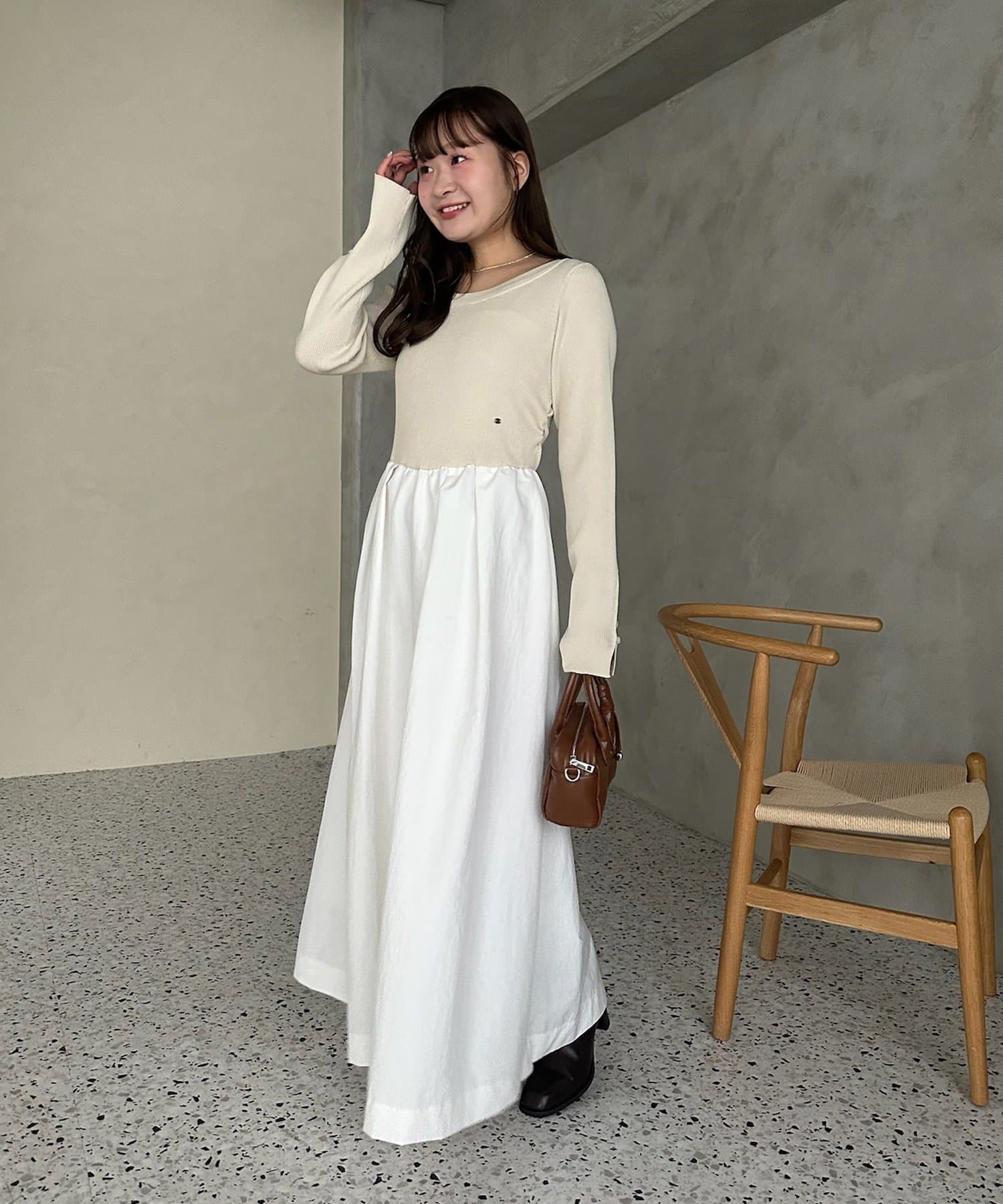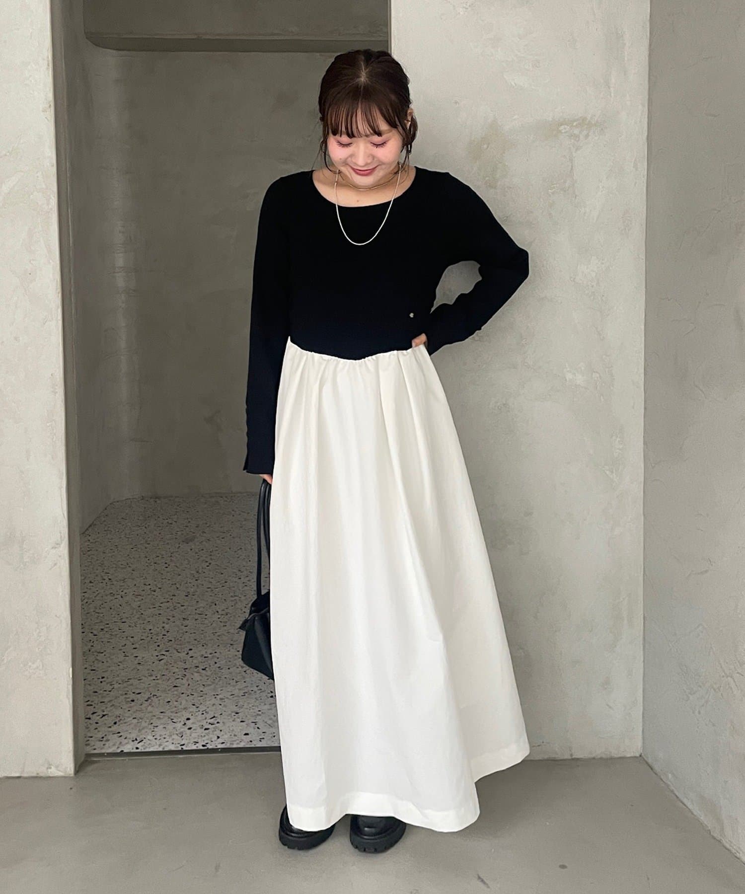 ・華奢見えするリブニットとふわっと広がるバルーンスカートがドッキングされたワンピース。骨格ストレートの方が細見えするように、細部までこだわって作成しました。