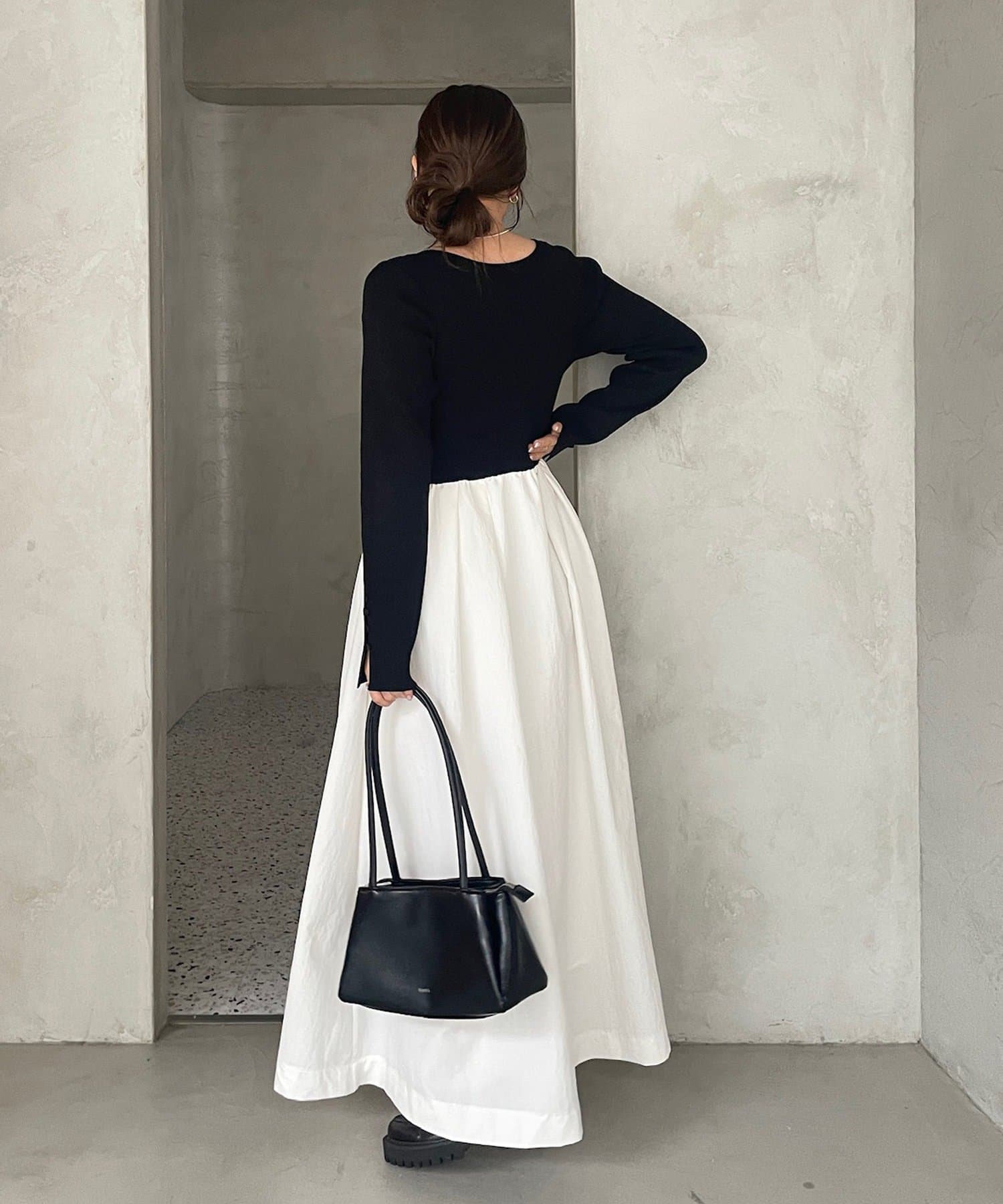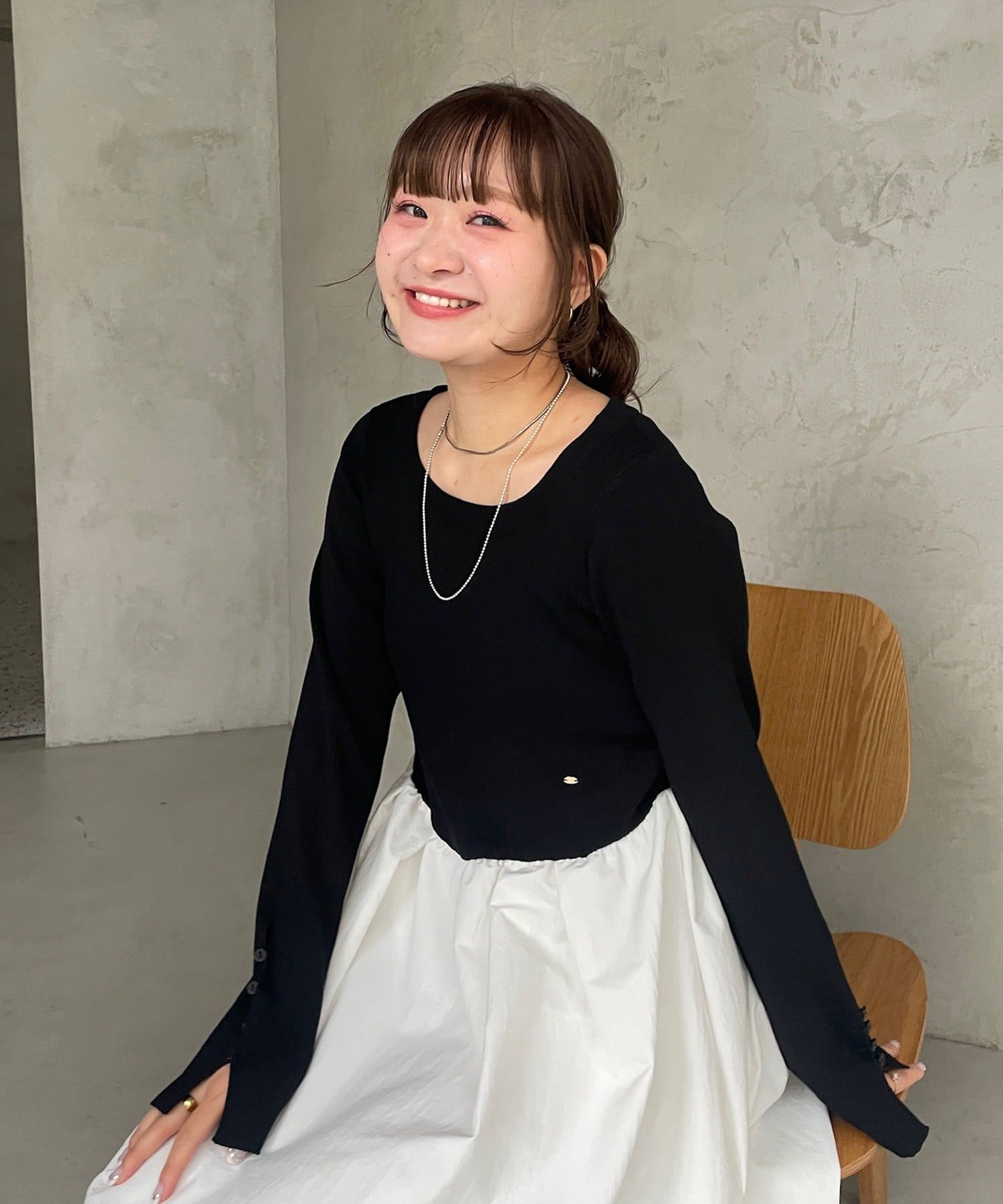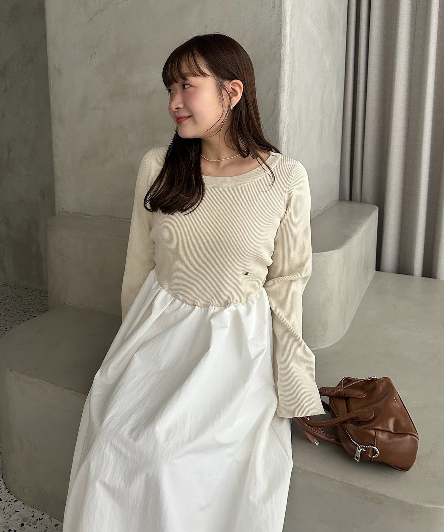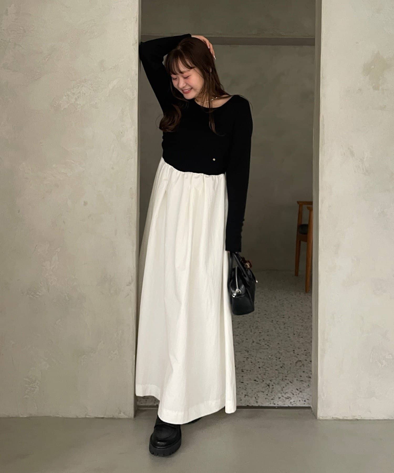 ・華奢見えするリブニットとふわっと広がるバルーンスカートがドッキングされたワンピース。骨格ストレートの方が細見えするように、細部までこだわって作成しました。
