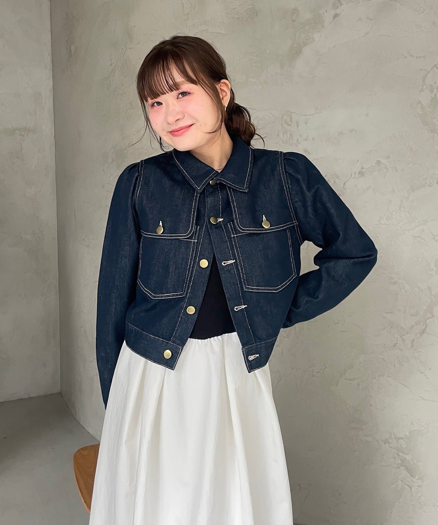 【@sktnnm企画】金ボタンデニムパフジャケット