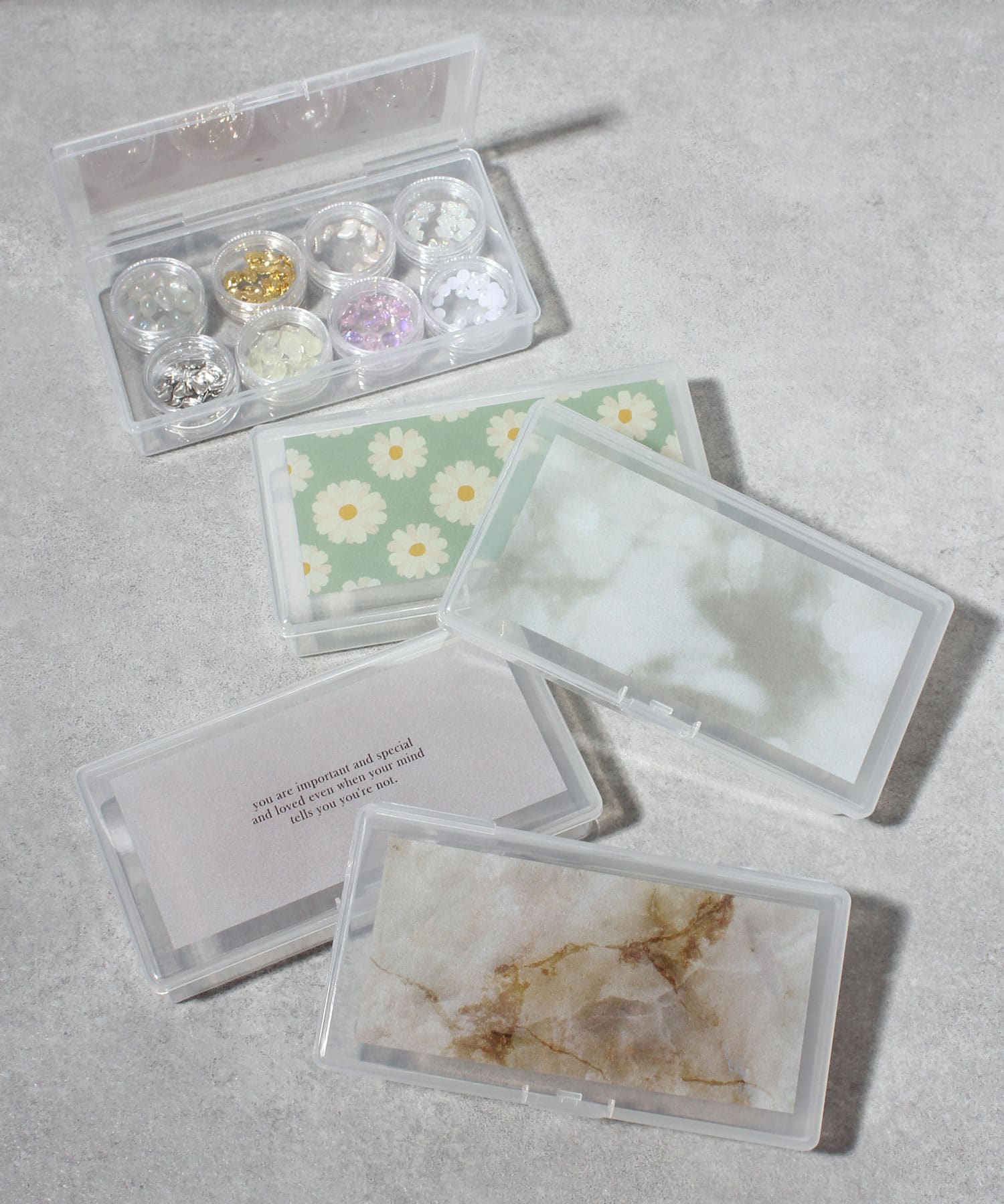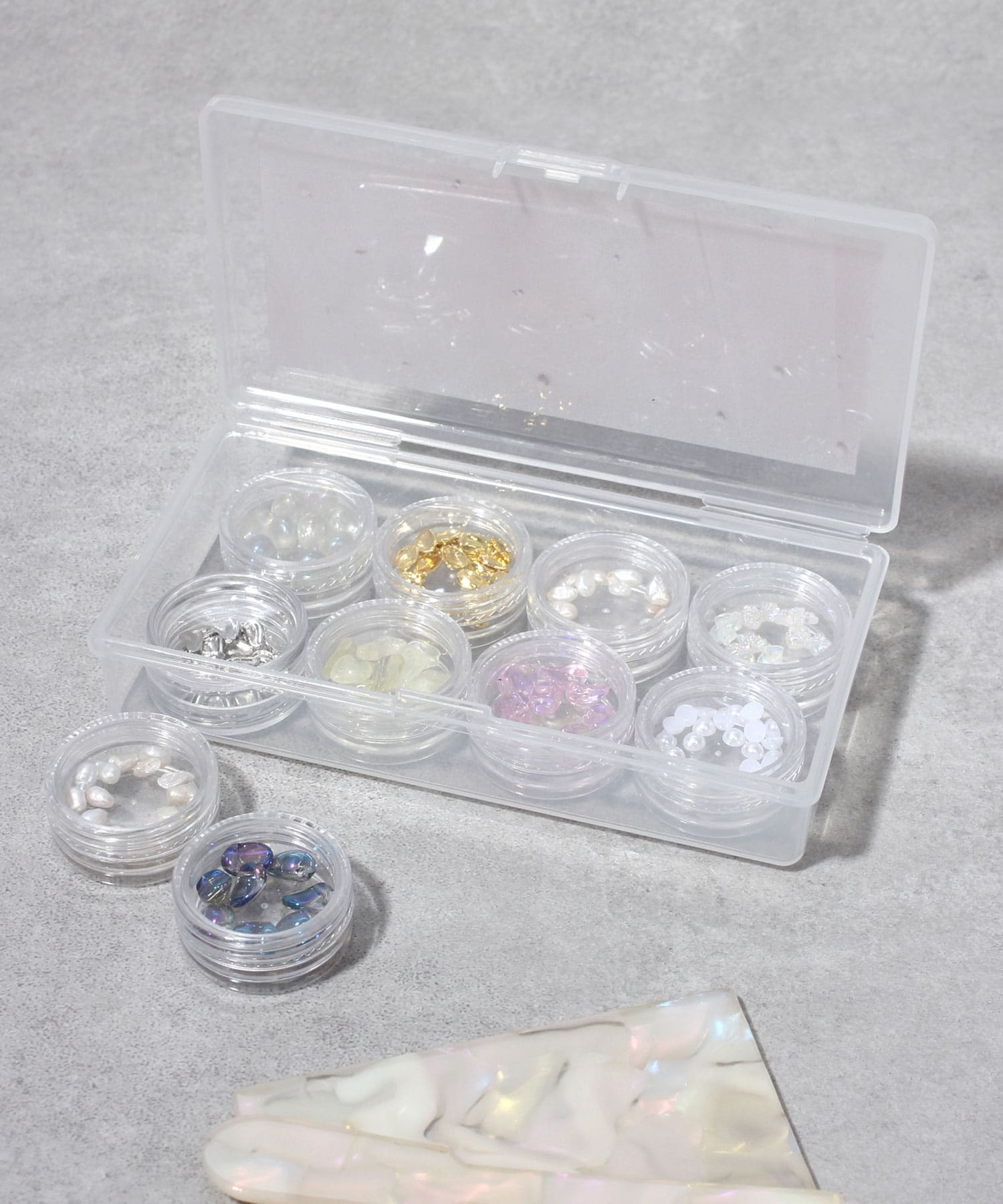 ■別売りのネイルパーツのクリアケースが8個入るサイズ感
