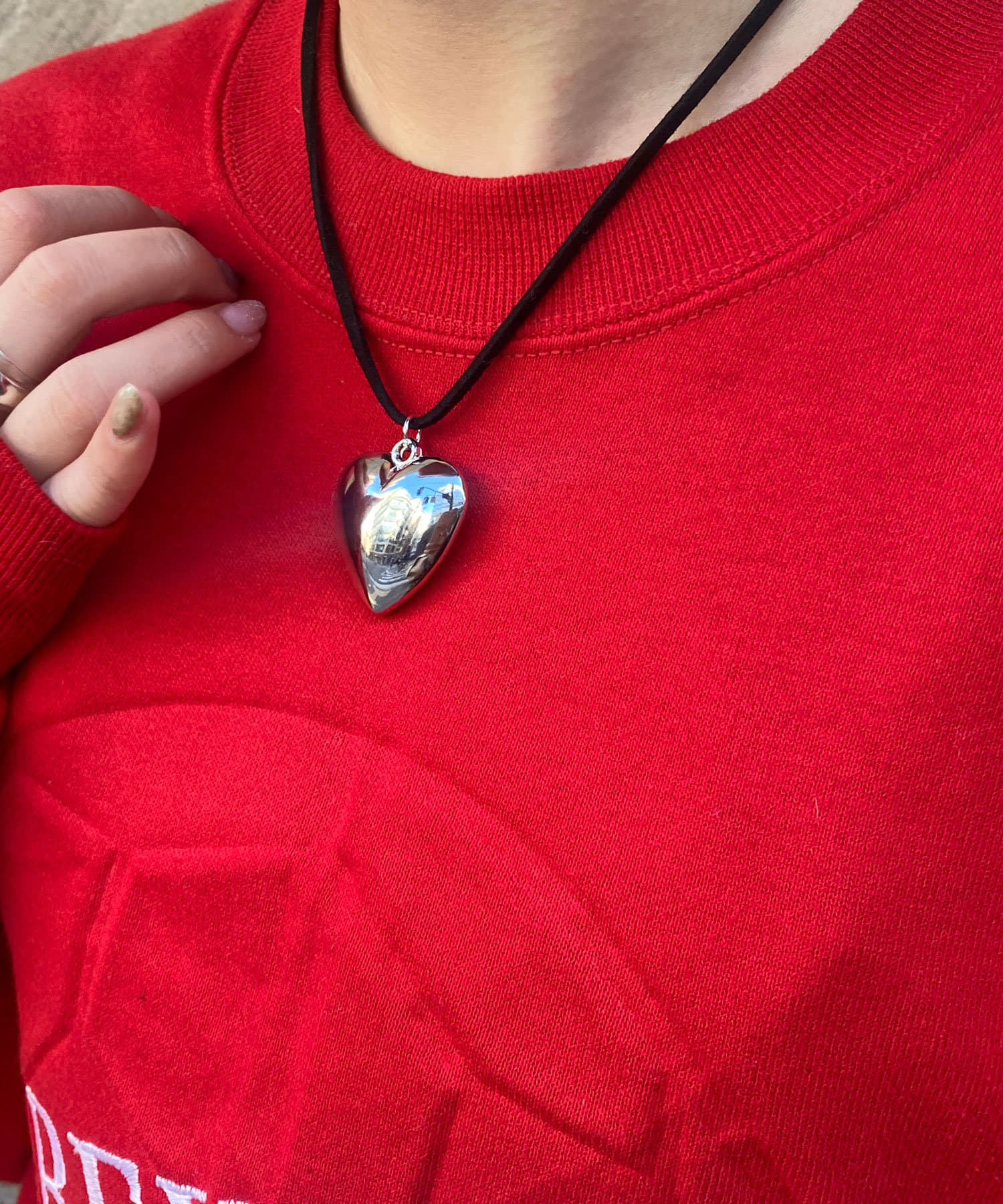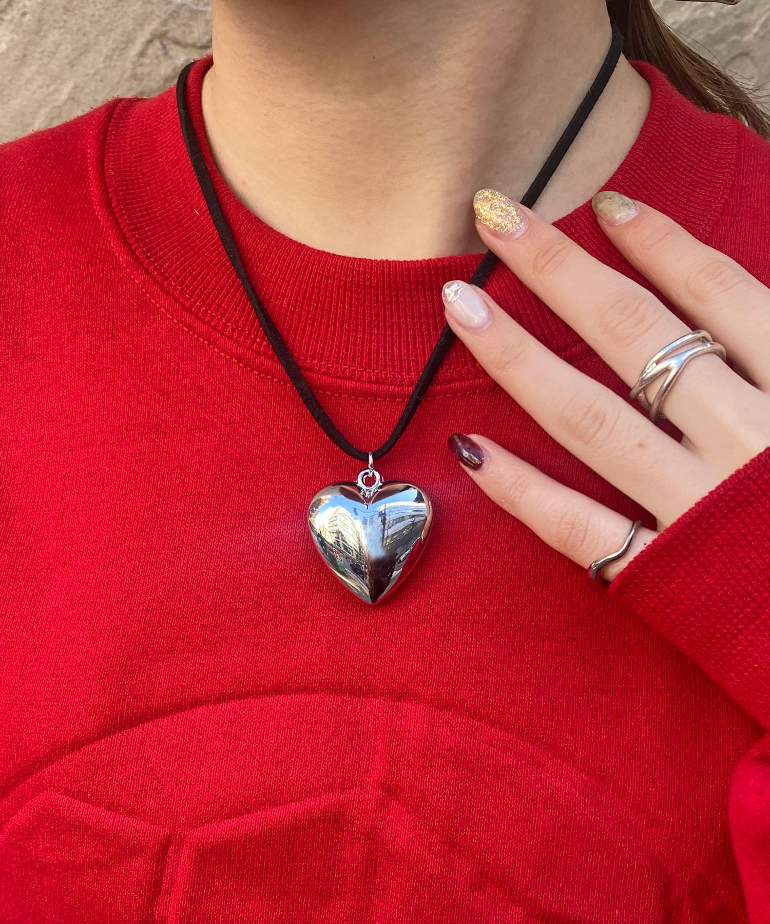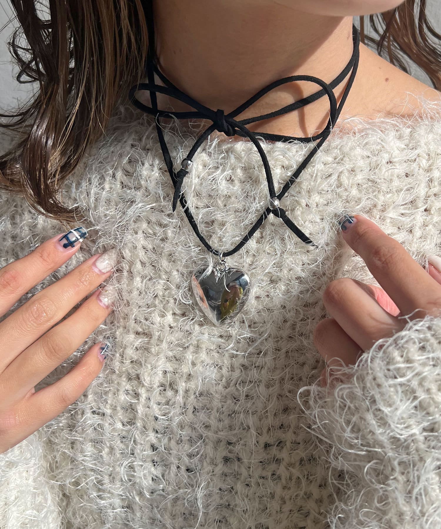 トレンドのハートモチーフのコードネックレス。