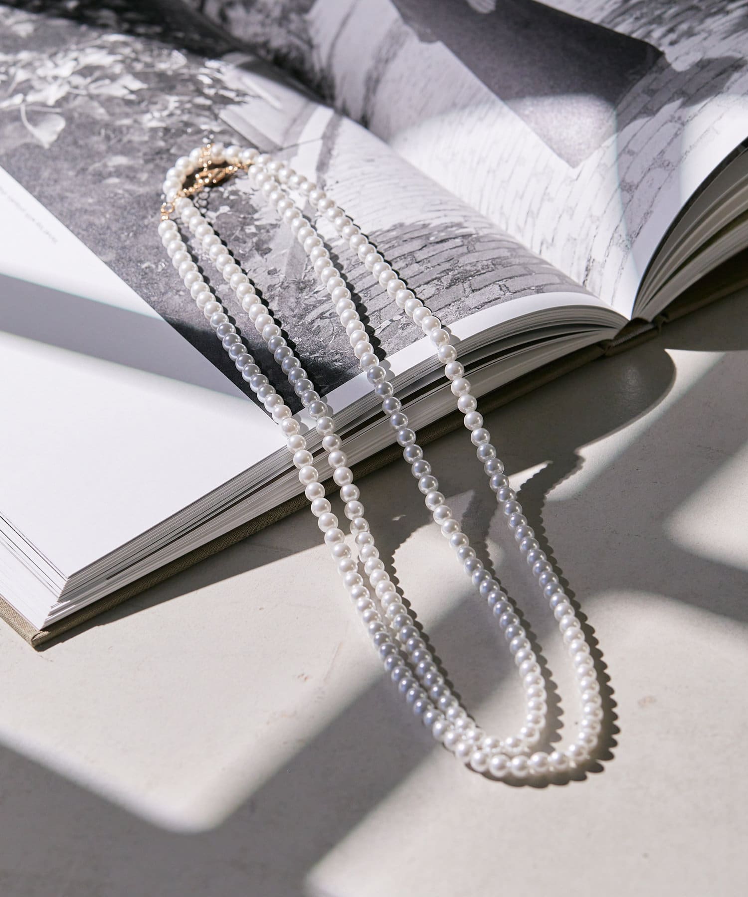 パールのロングネックレスでいろんなアレンジが出来ていいです。