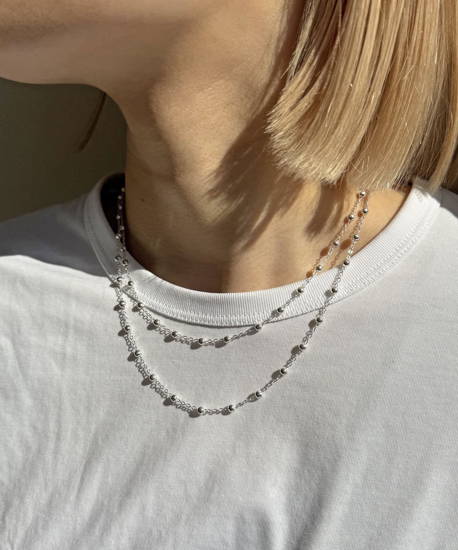 【ホワイトメタル】ボールチェーンネックレスセット(2P)