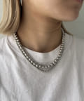 ボールが大小のネックレスで思ったよりキラキラしてます。小さいボールのネックレスはそうでもないですが、大きなボールのネックレスや2連にするとかなり存在感あり、ボリュームでます。よそ行きのネックレスです。少し重さもあります。