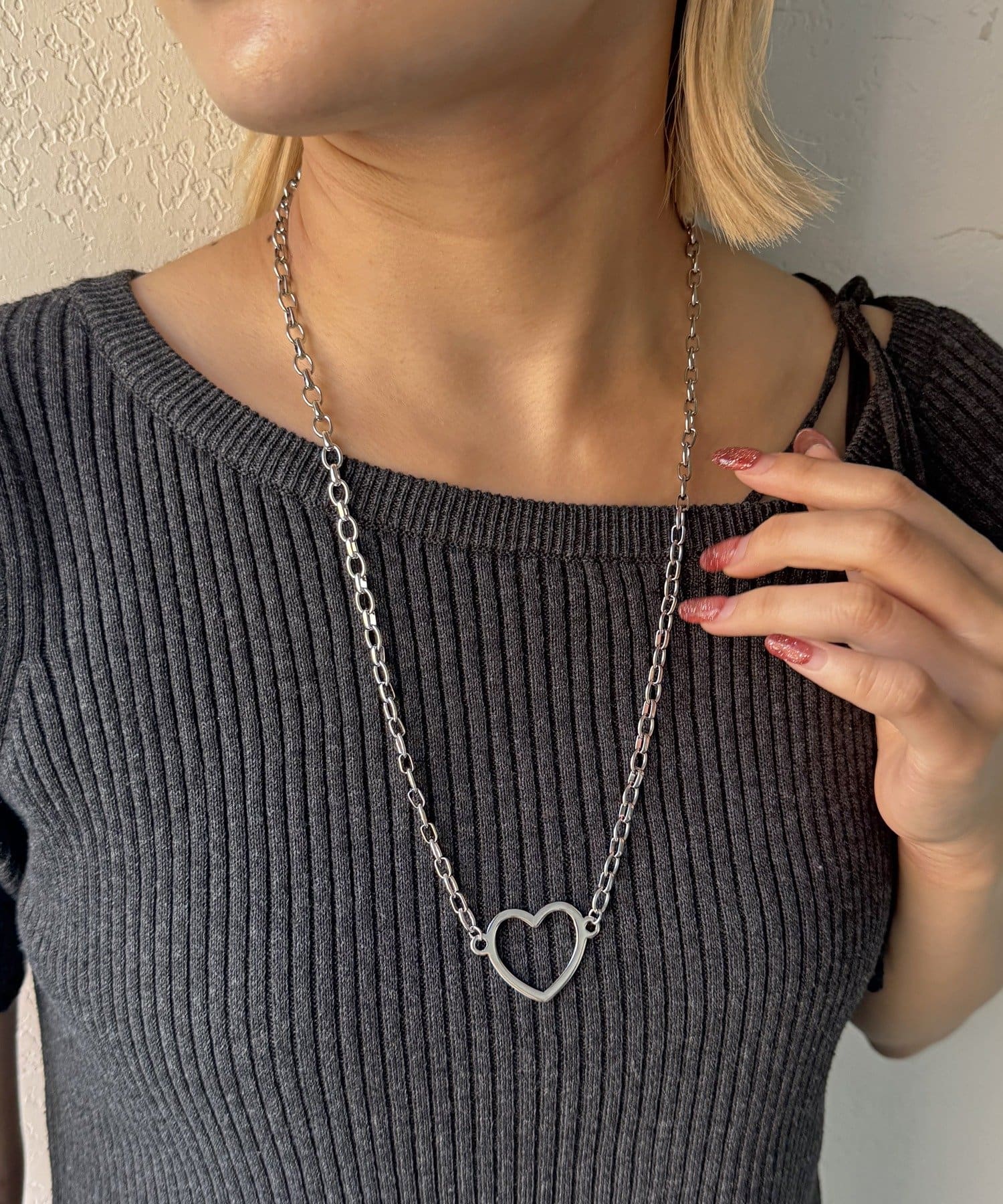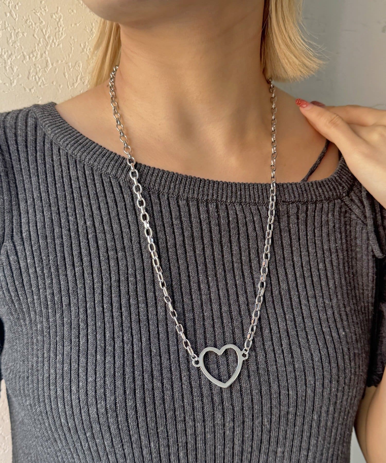 ハートがポイントのステンレスネックレス