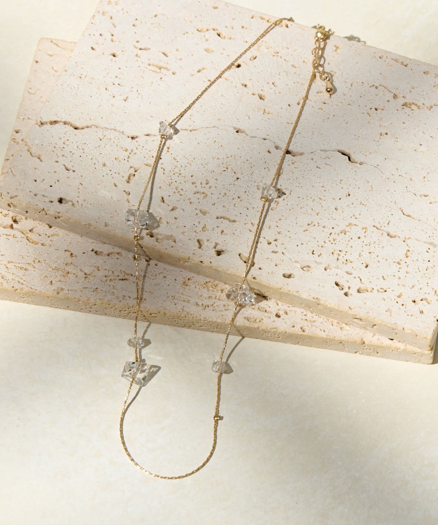 華奢なチェーンに所々、クリアストーンがついてるのがたまらなく可愛いです。