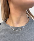 小粒のビーズが連なったデザインは、デコルテを華奢で女性らしい印象に仕上げてくれます。
