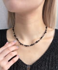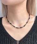 艶やかなブラックビーズと、きらりと輝くシルバーカラーのパーツをリズミカルに配置した、大人っぽいデザインが魅力です。