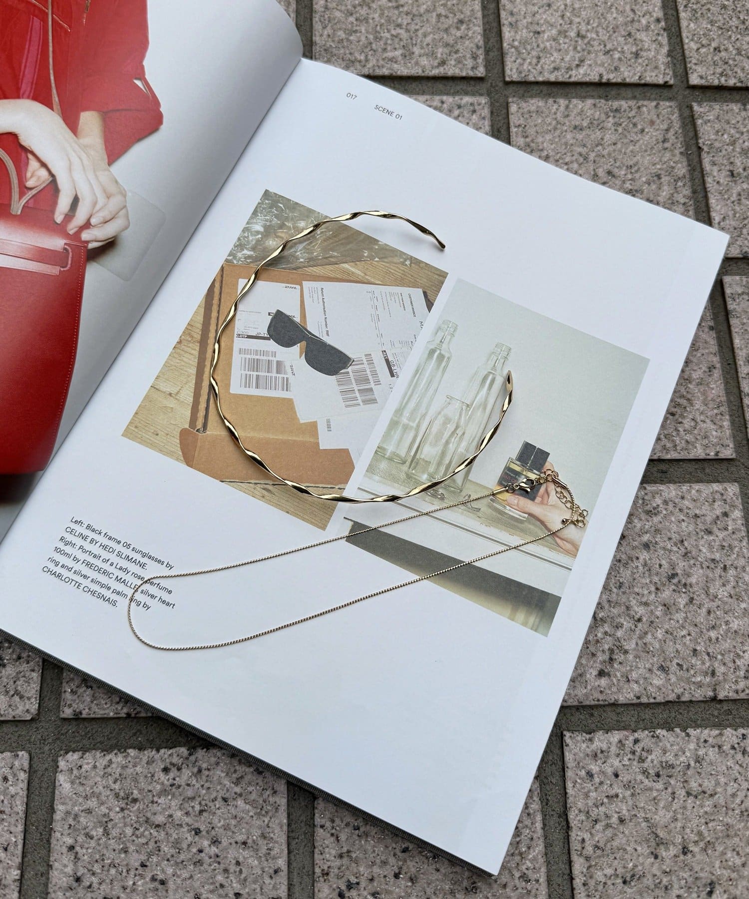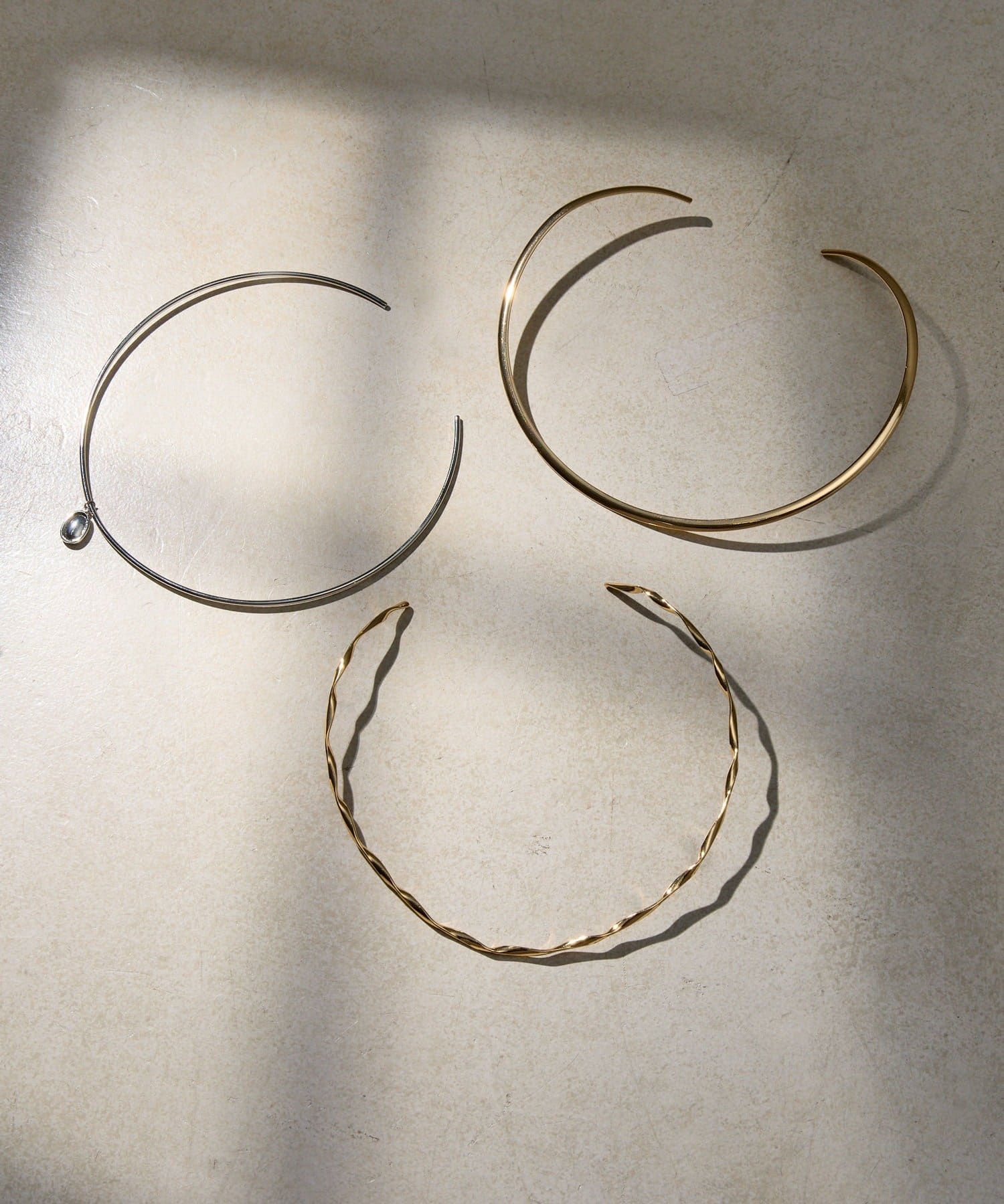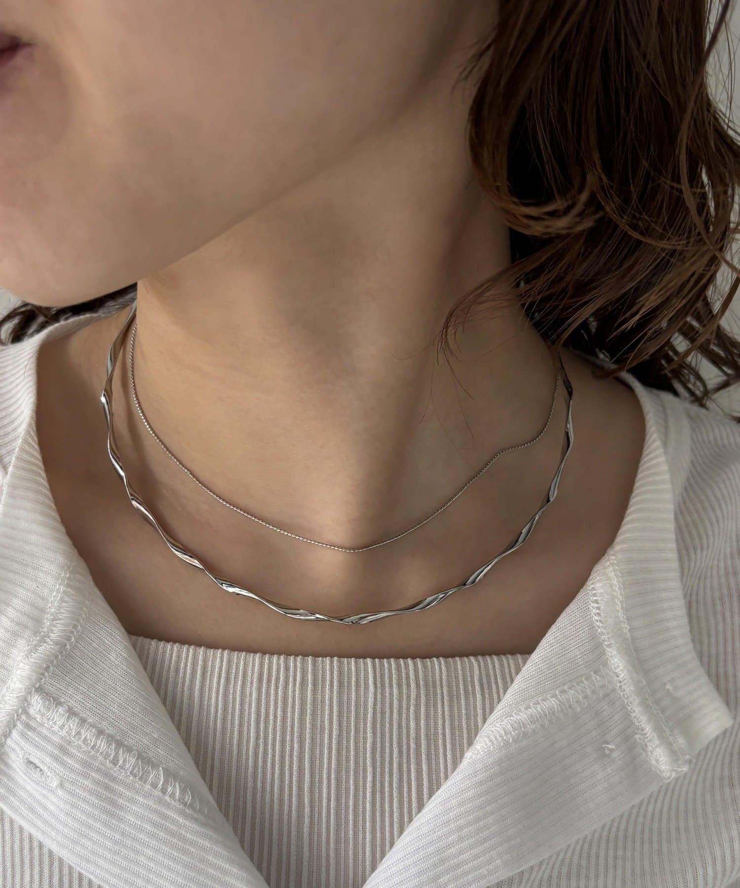 オフィスシーンではシンプルなチェーンを、お出かけにはツイストチェーンを主役に、とスタイリングの幅が広がります。