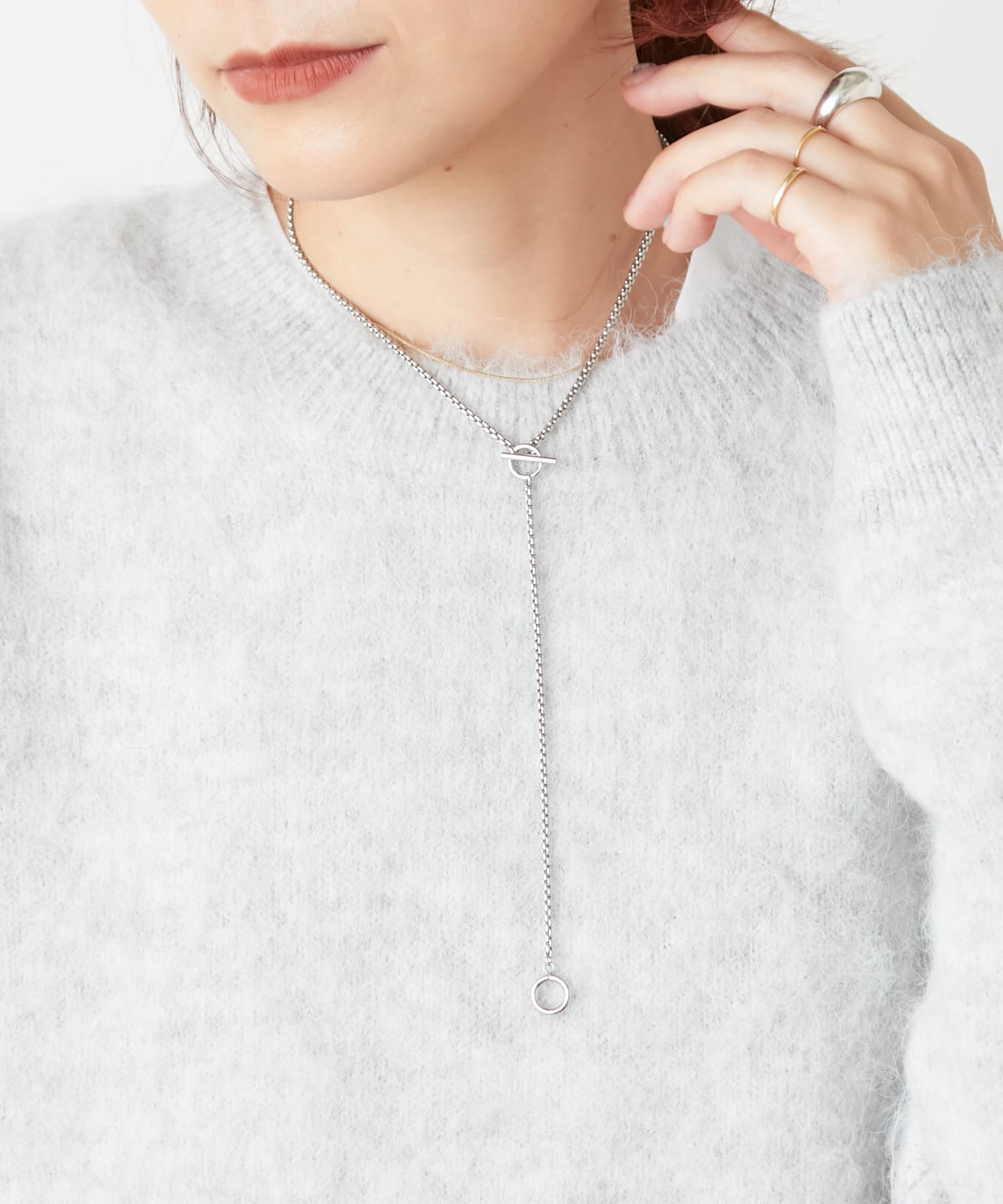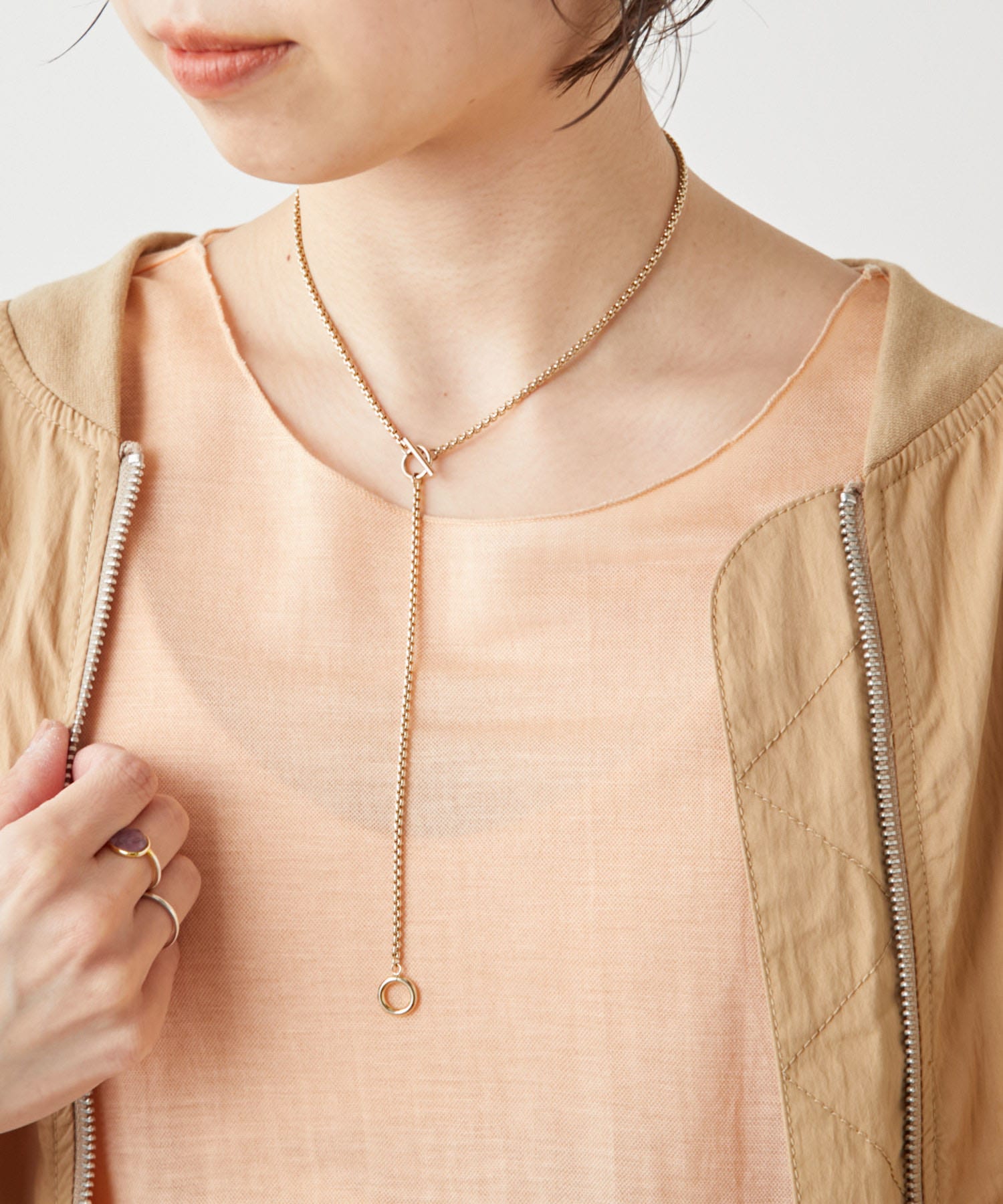 ・長さを2段階で調節できる留め具がポイントのネックレス。