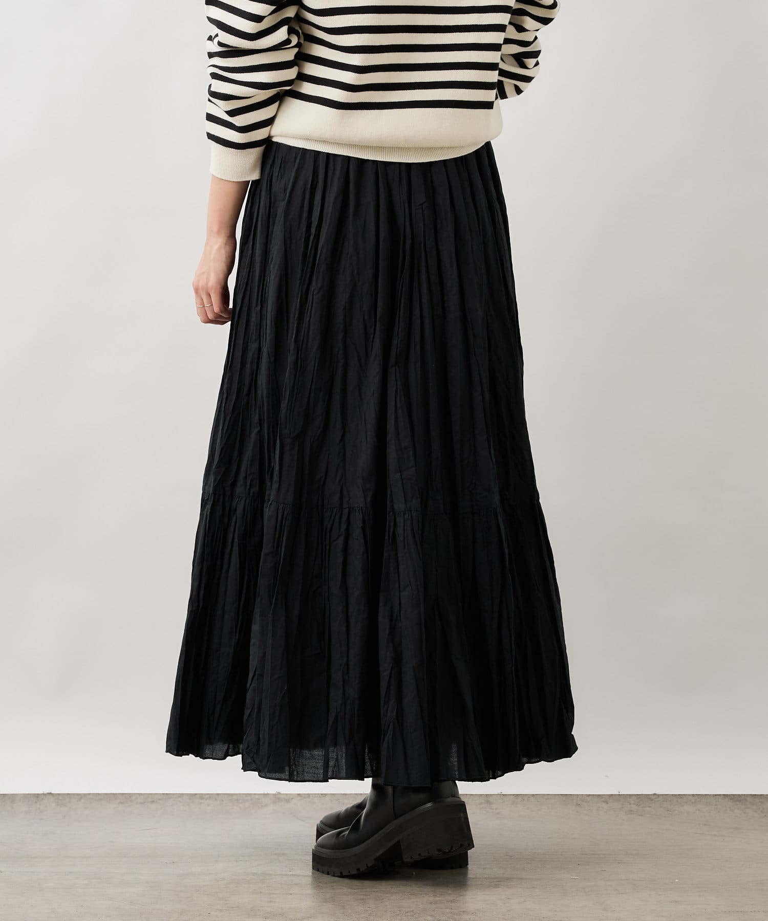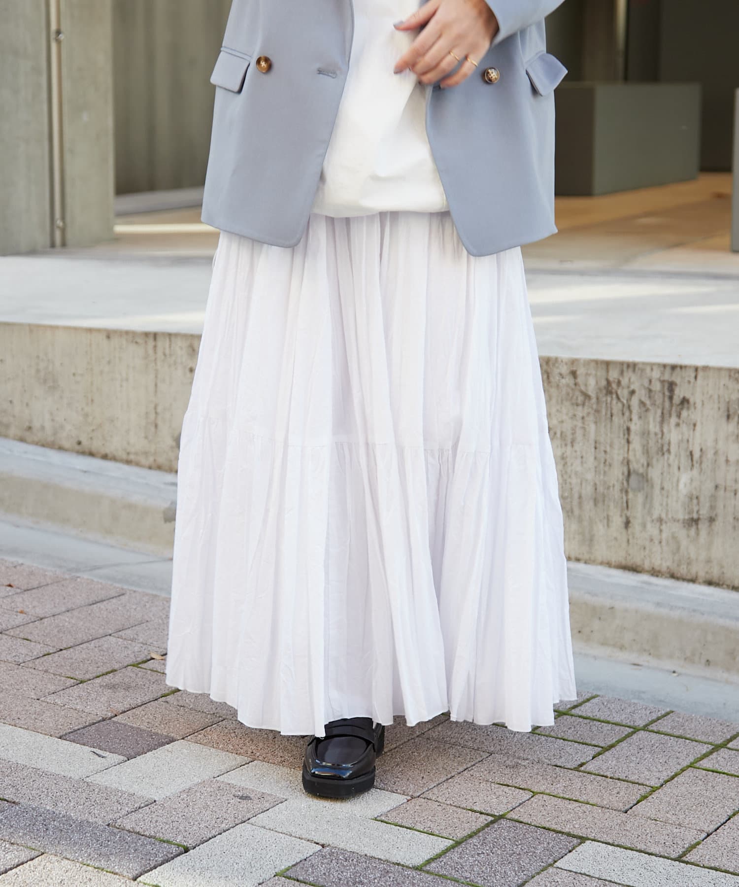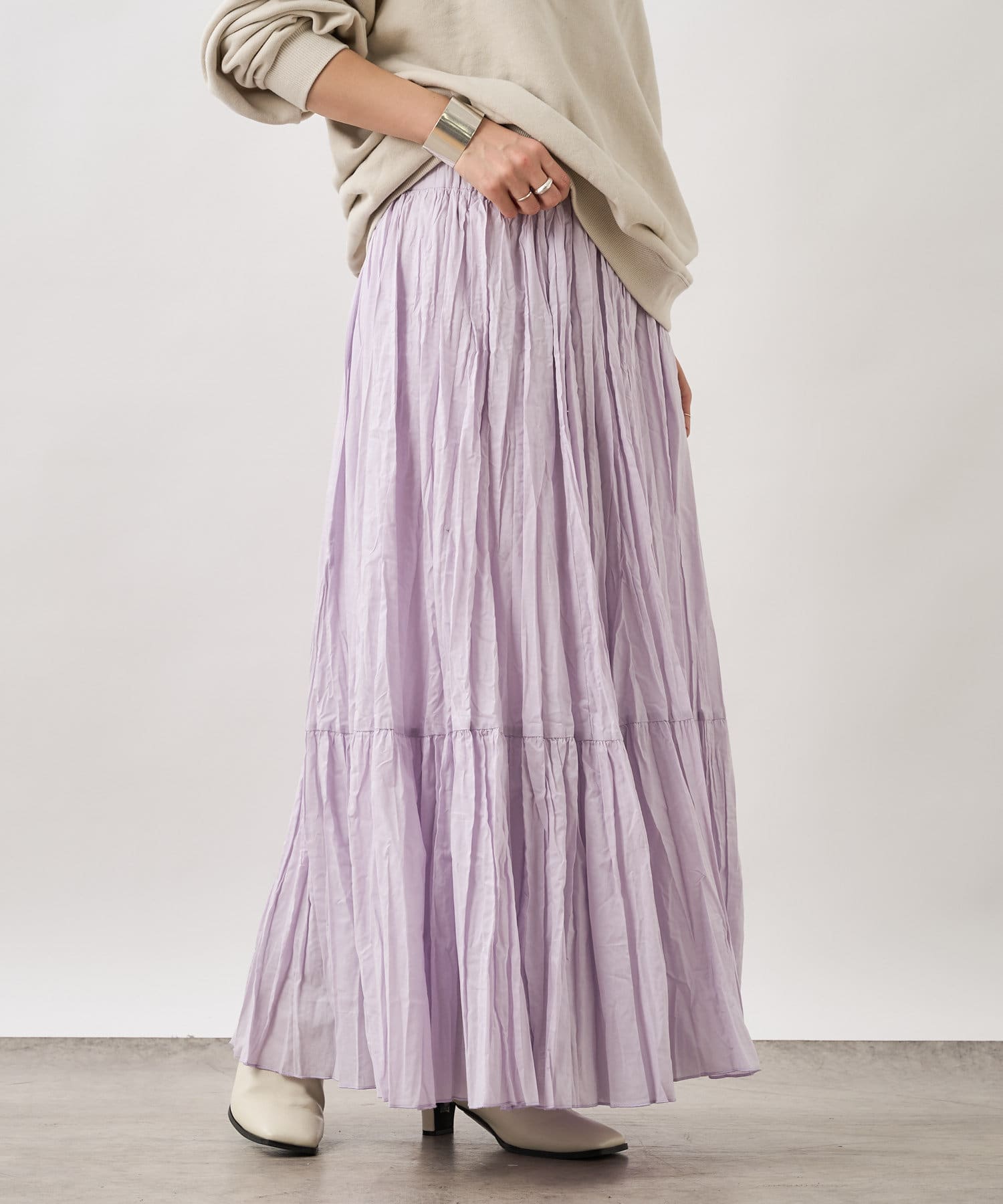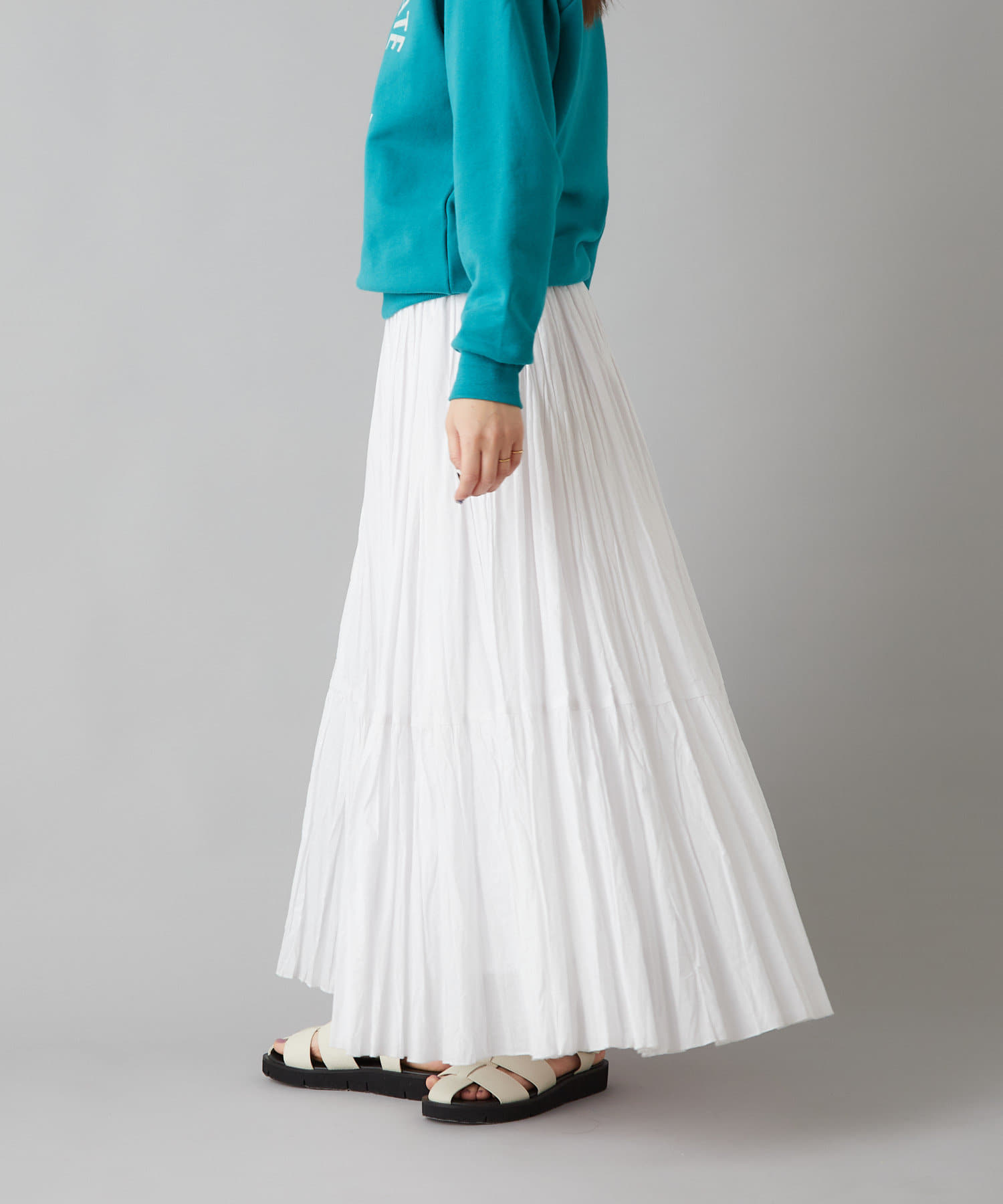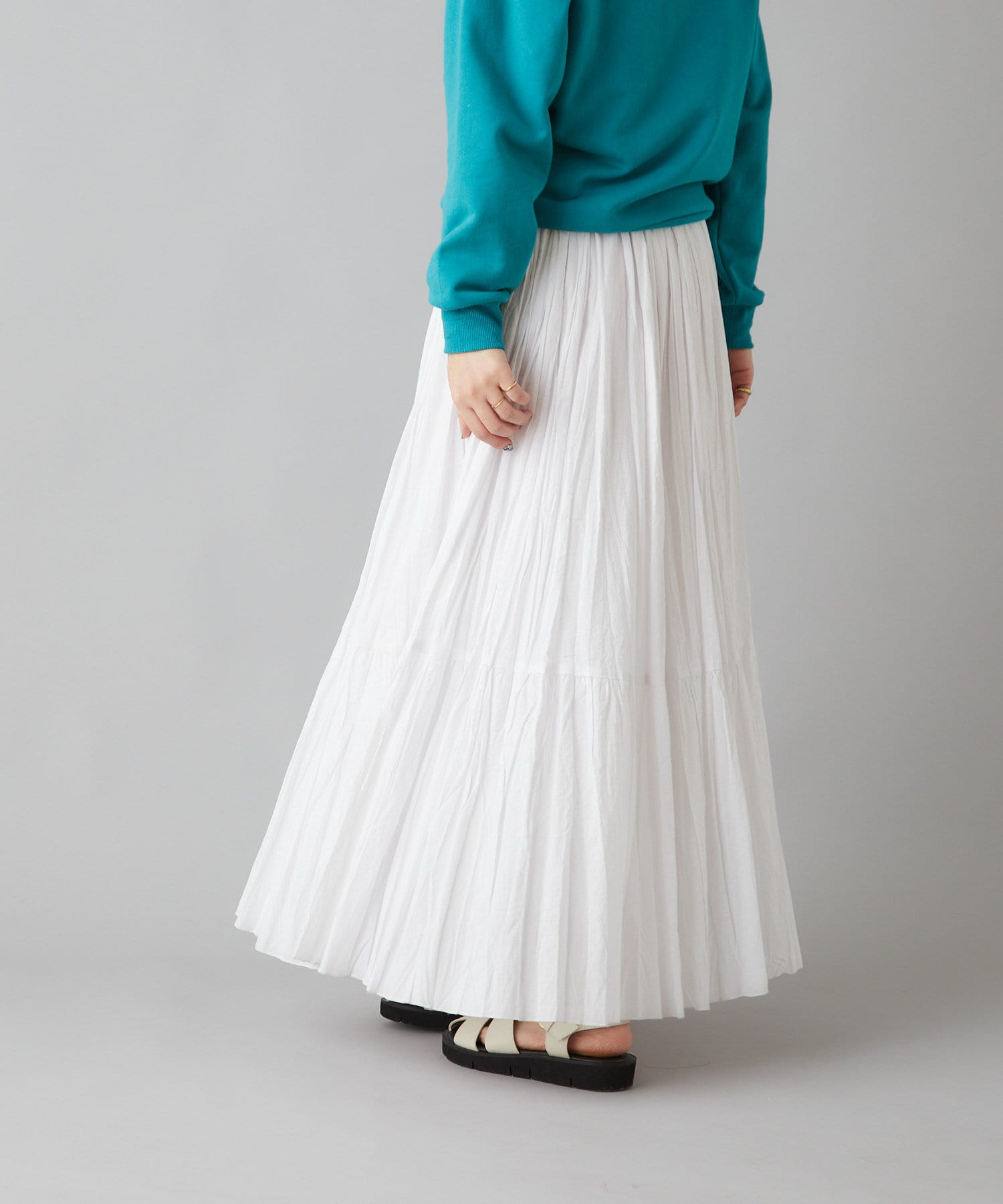 動くたびにきれいに広がるシルエットのコットンワッシャースカート