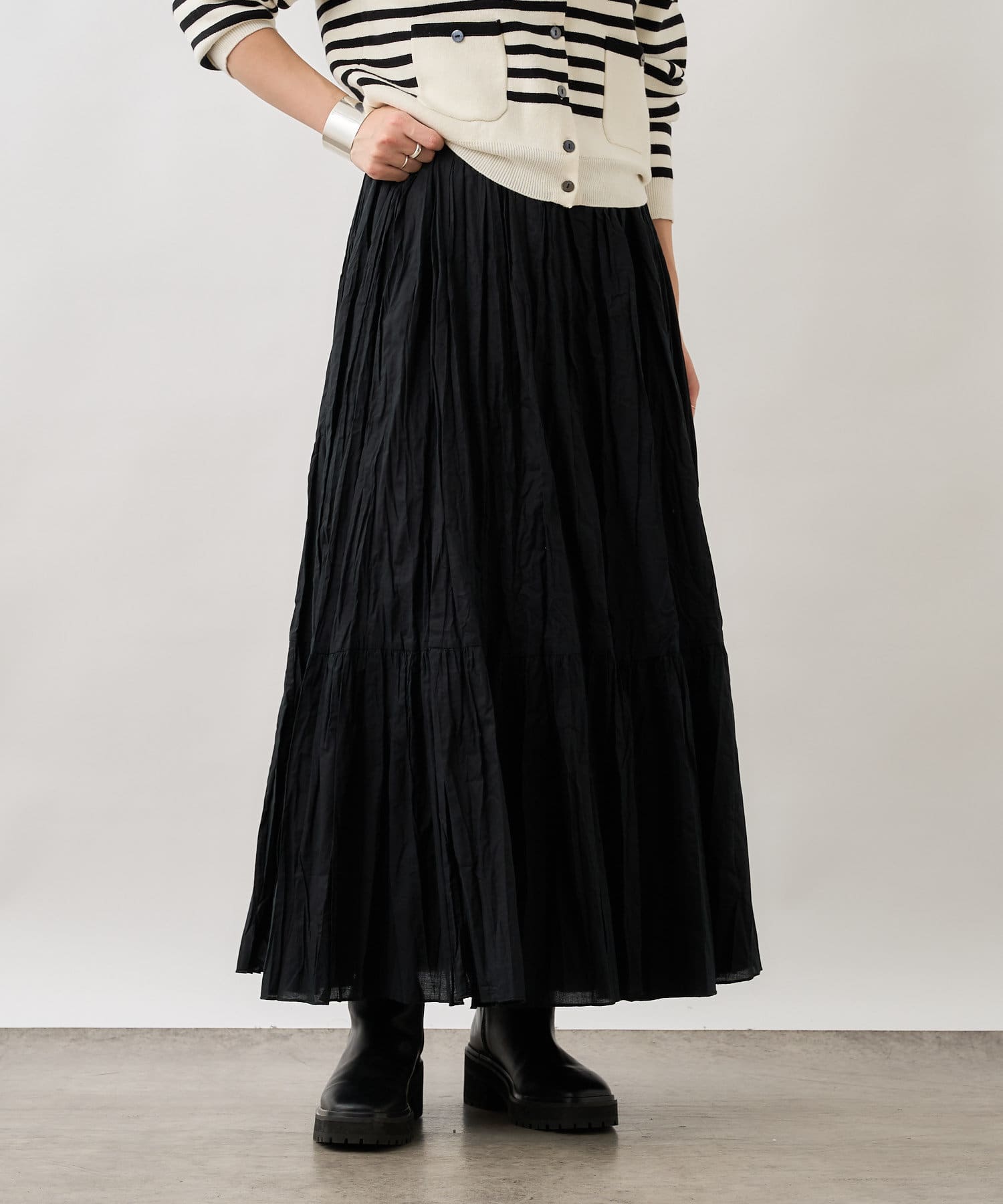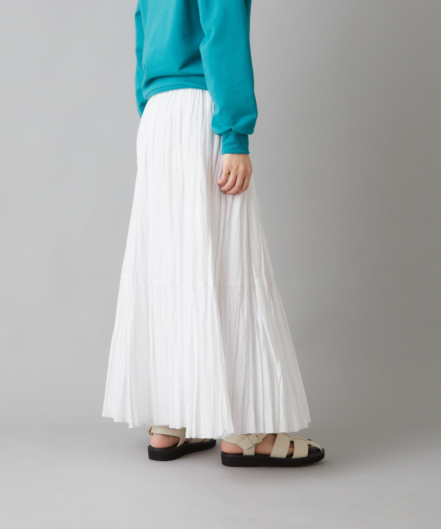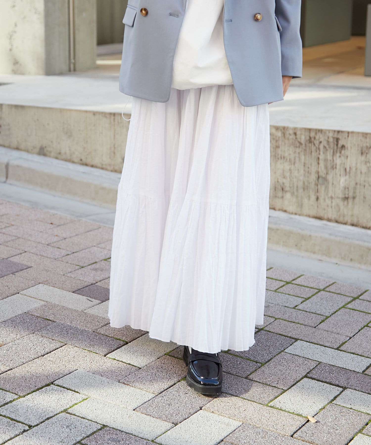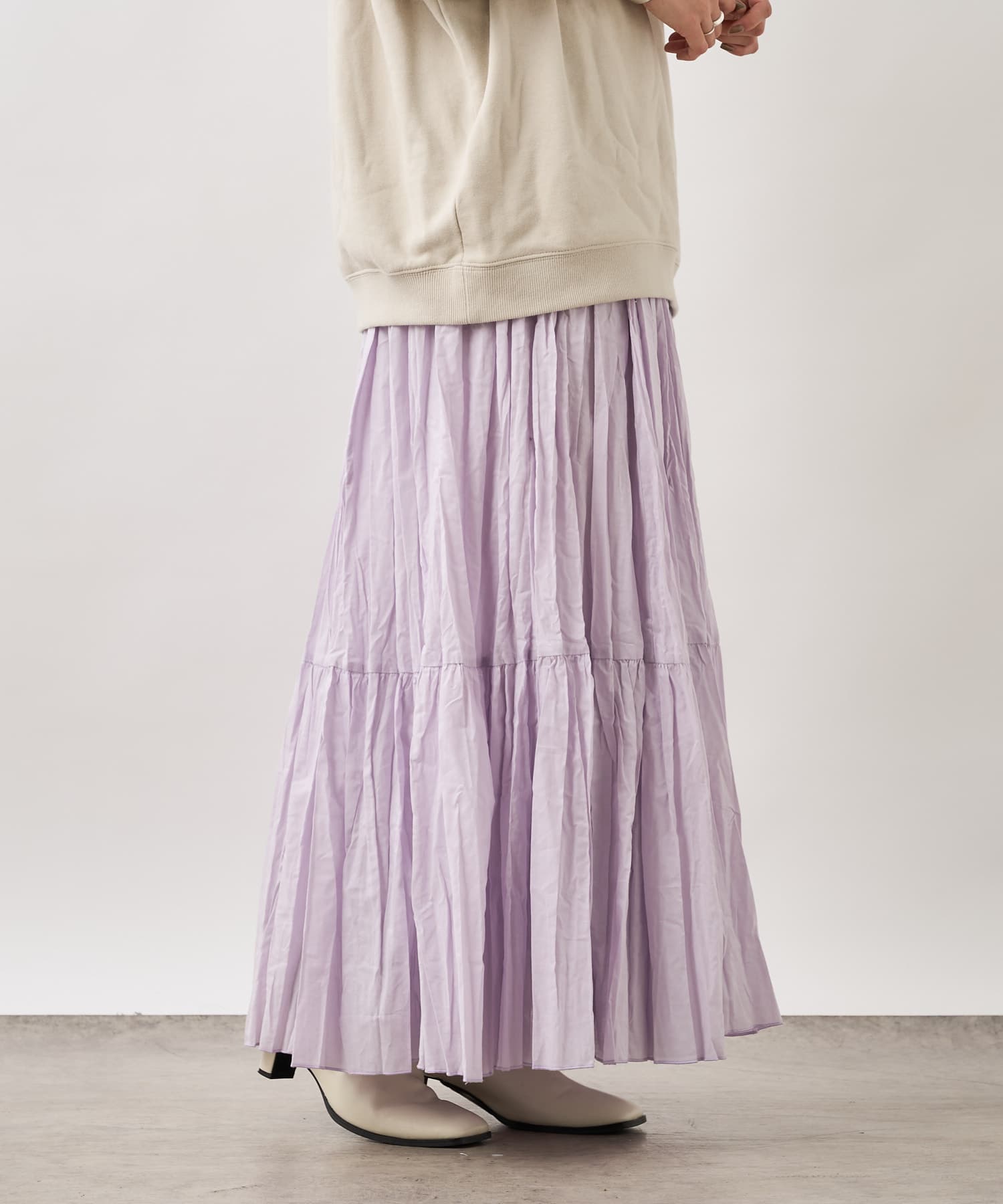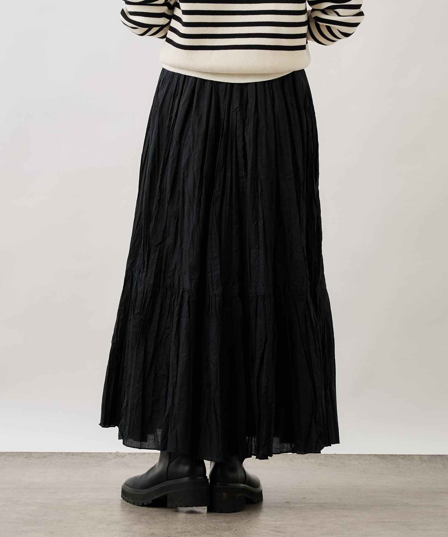 動くたびにきれいに広がるシルエットのコットンワッシャースカート