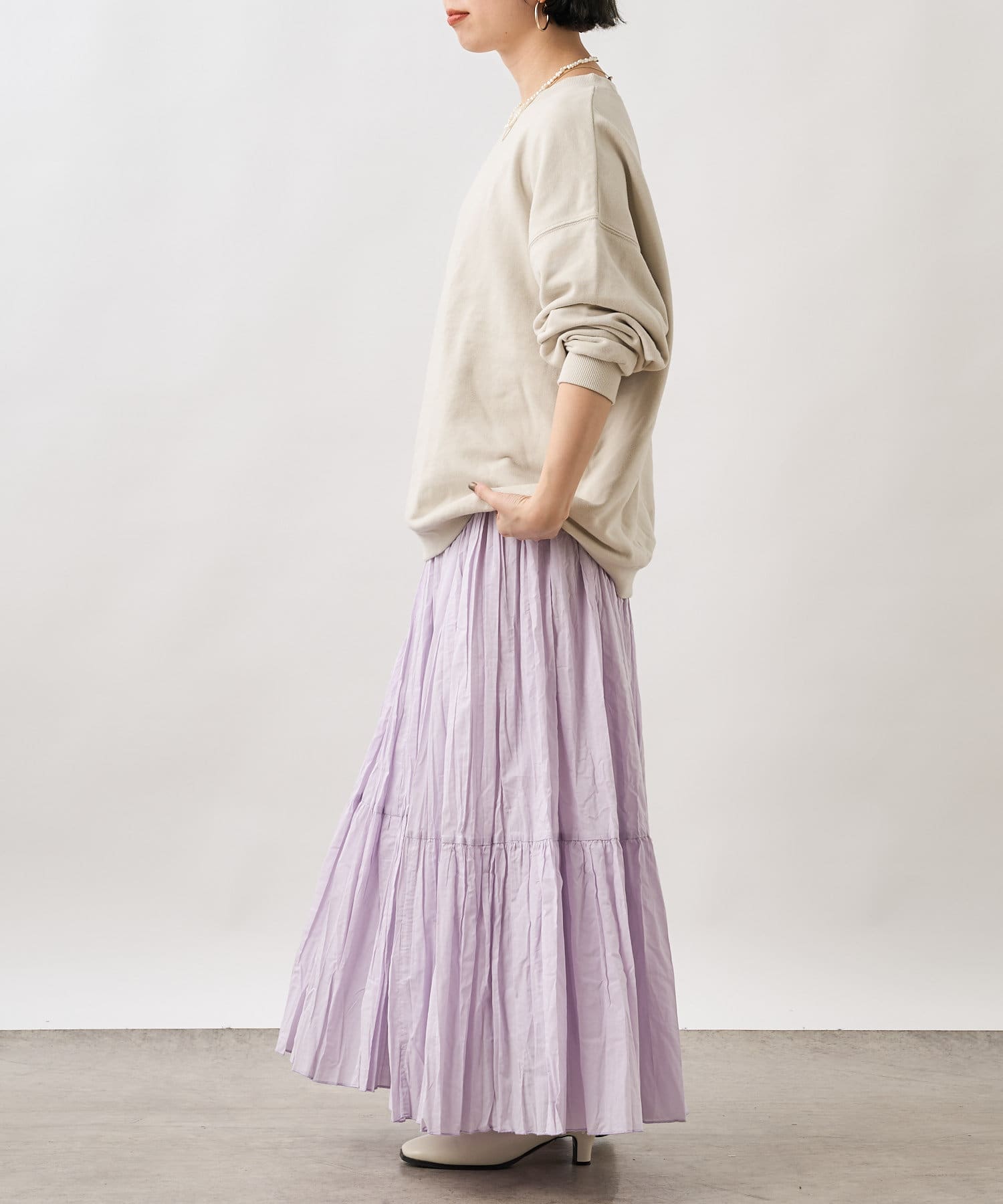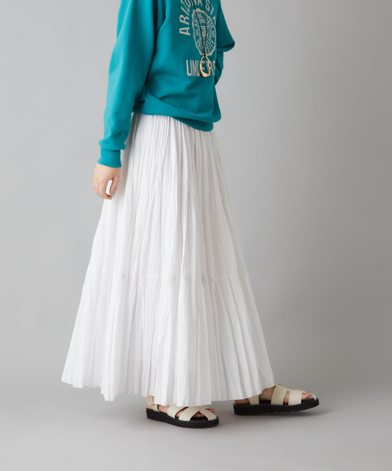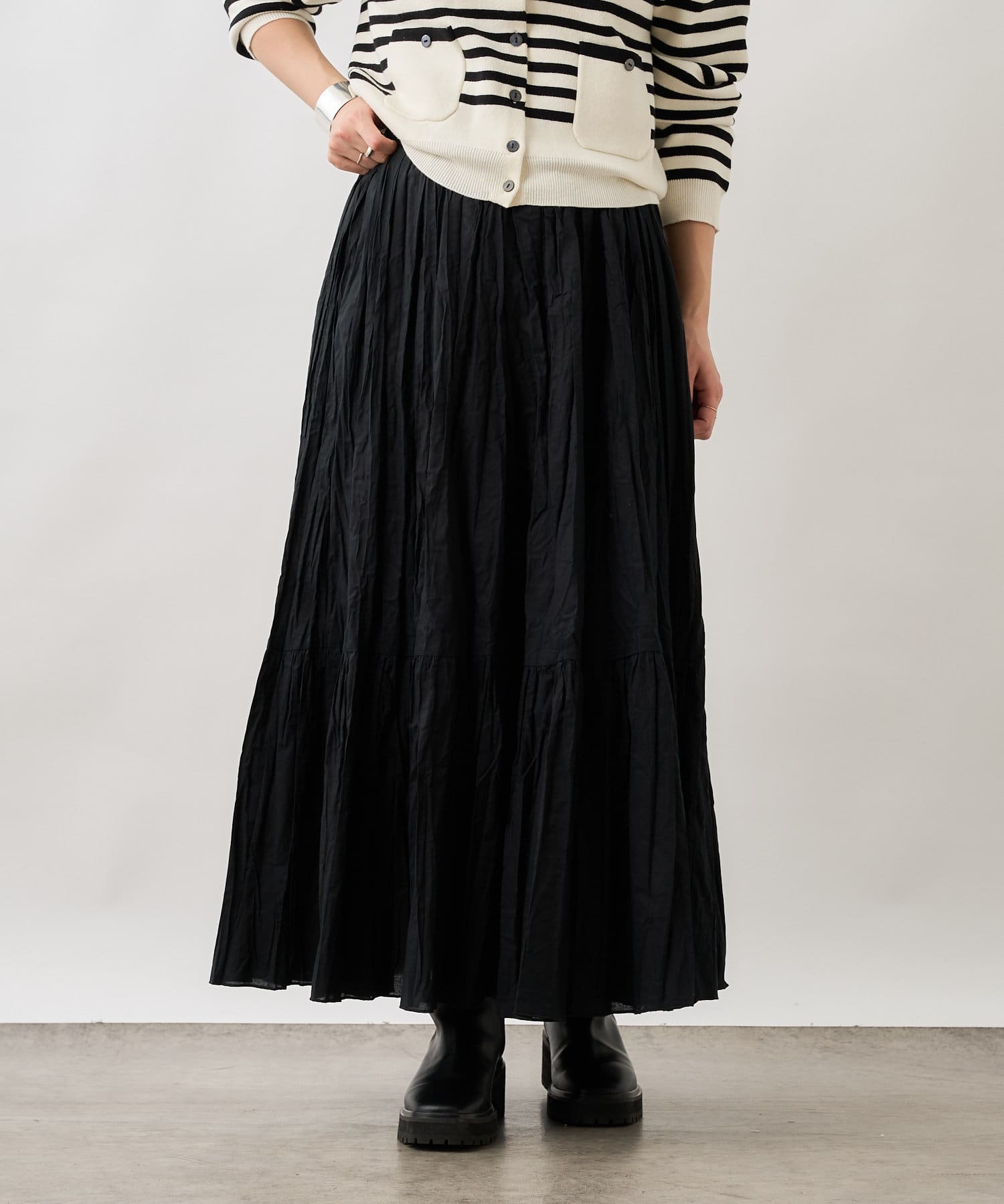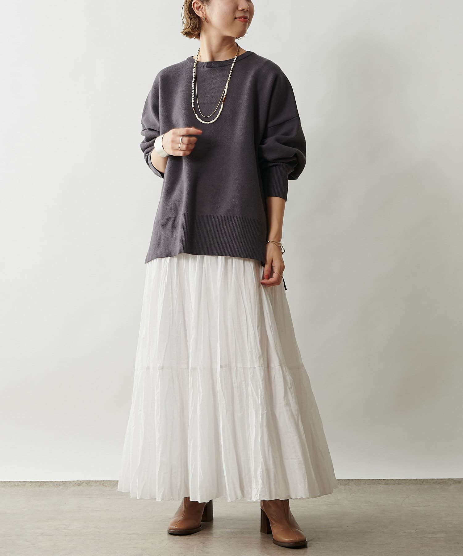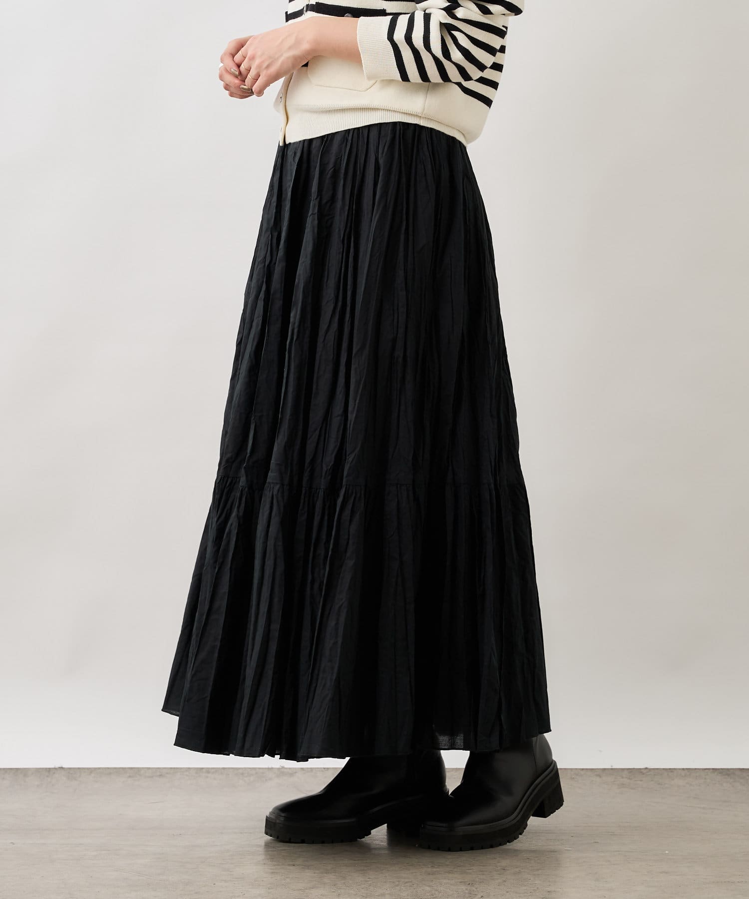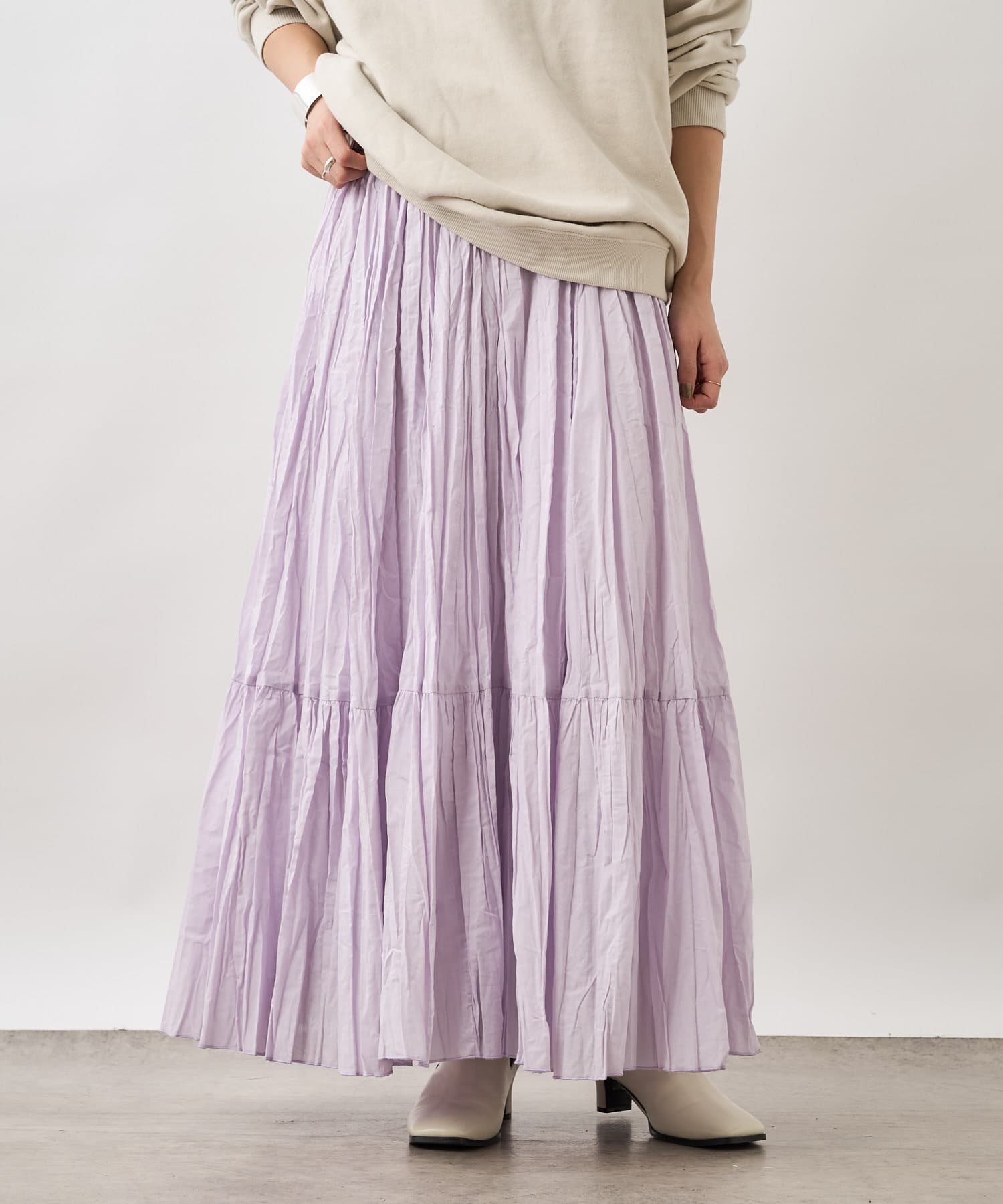 動くたびにきれいに広がるシルエットのコットンワッシャースカート