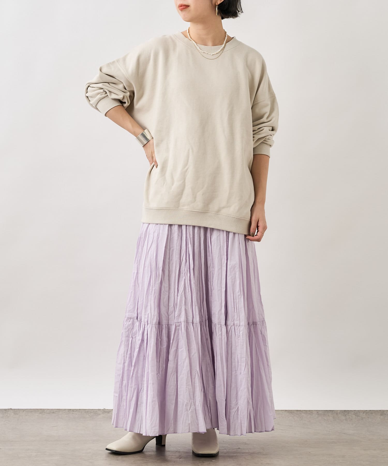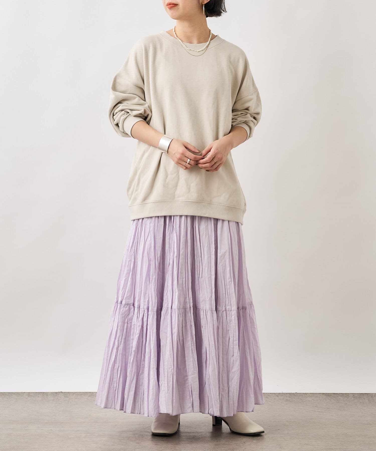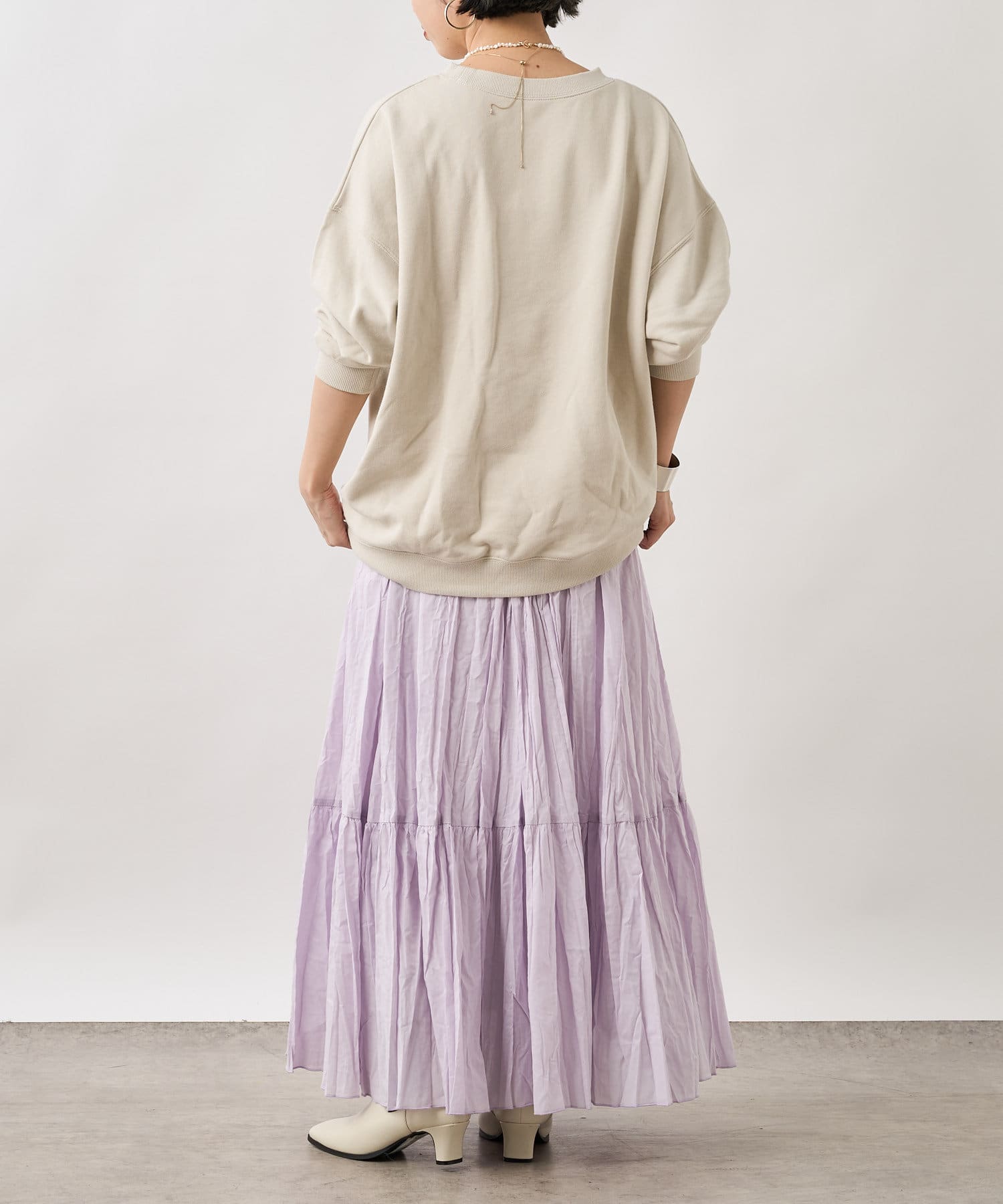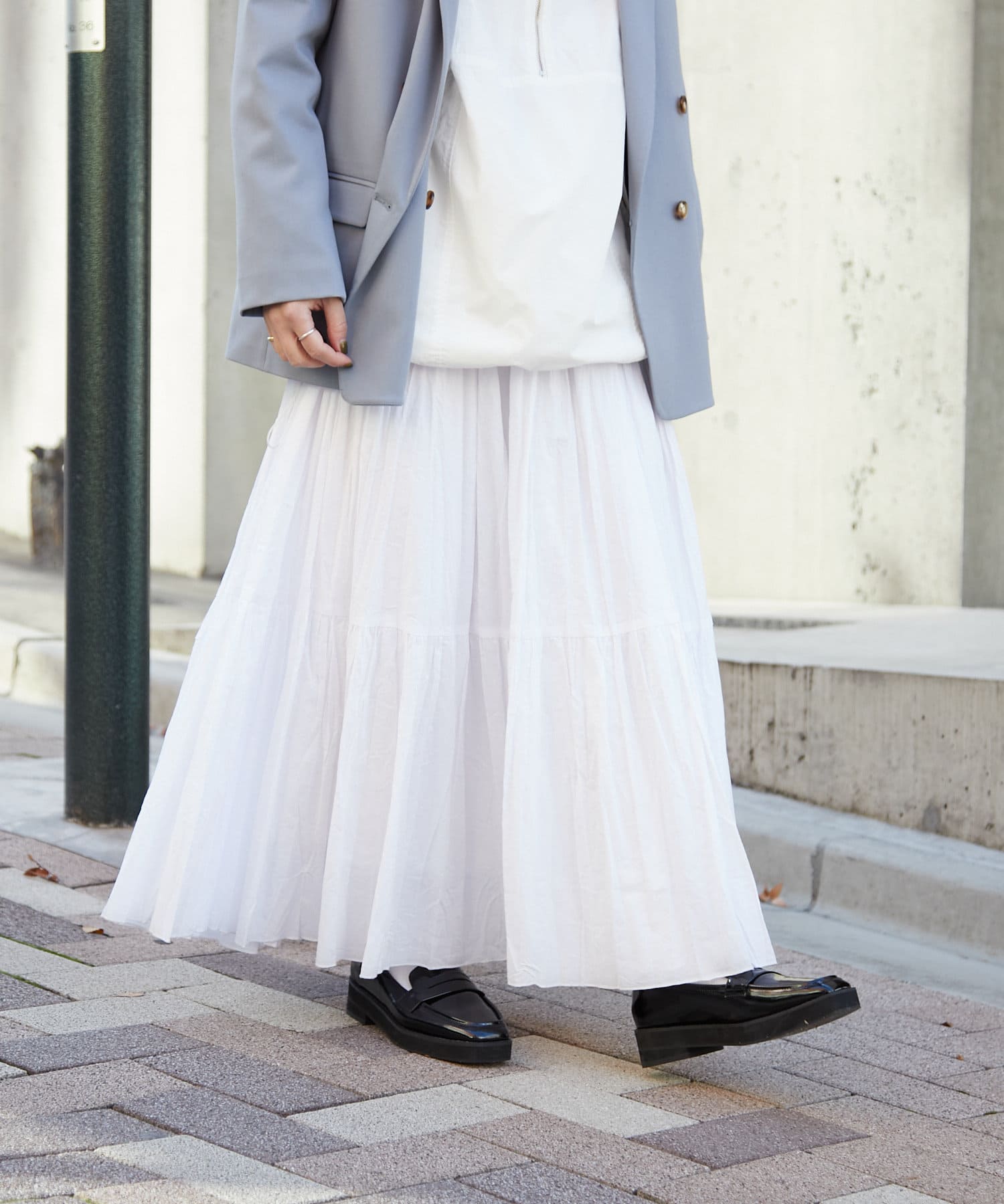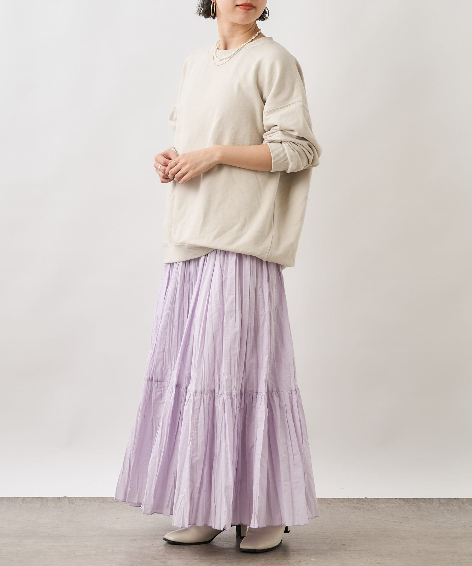 動くたびにきれいに広がるシルエットのコットンワッシャースカート