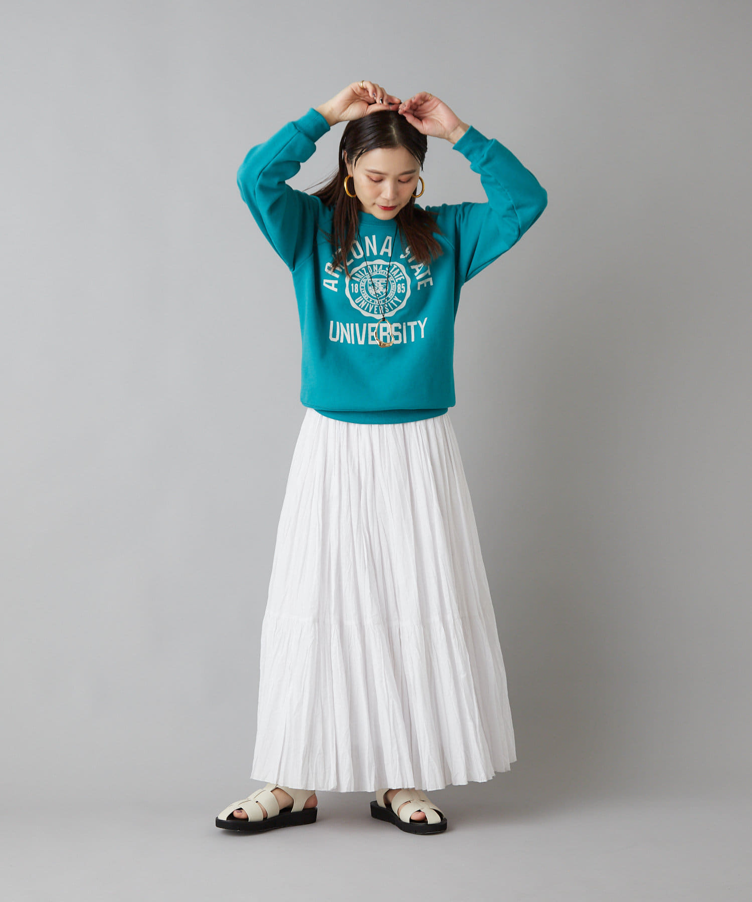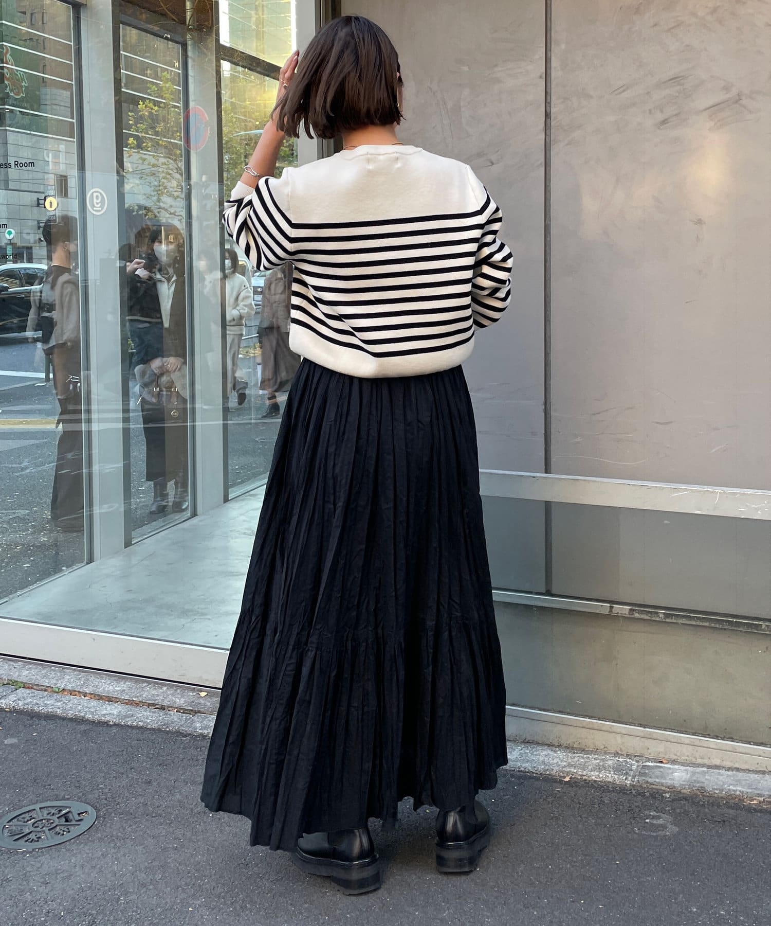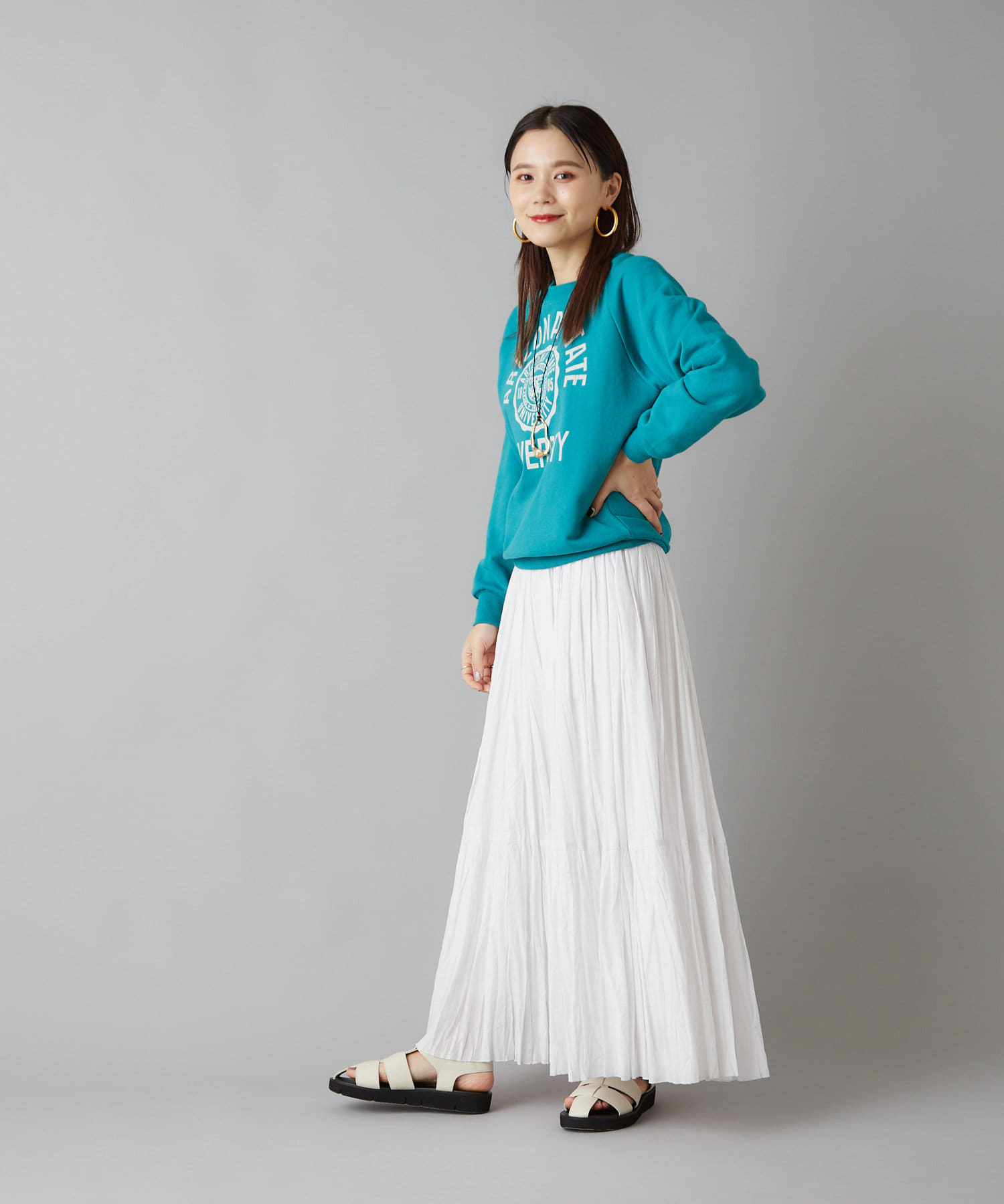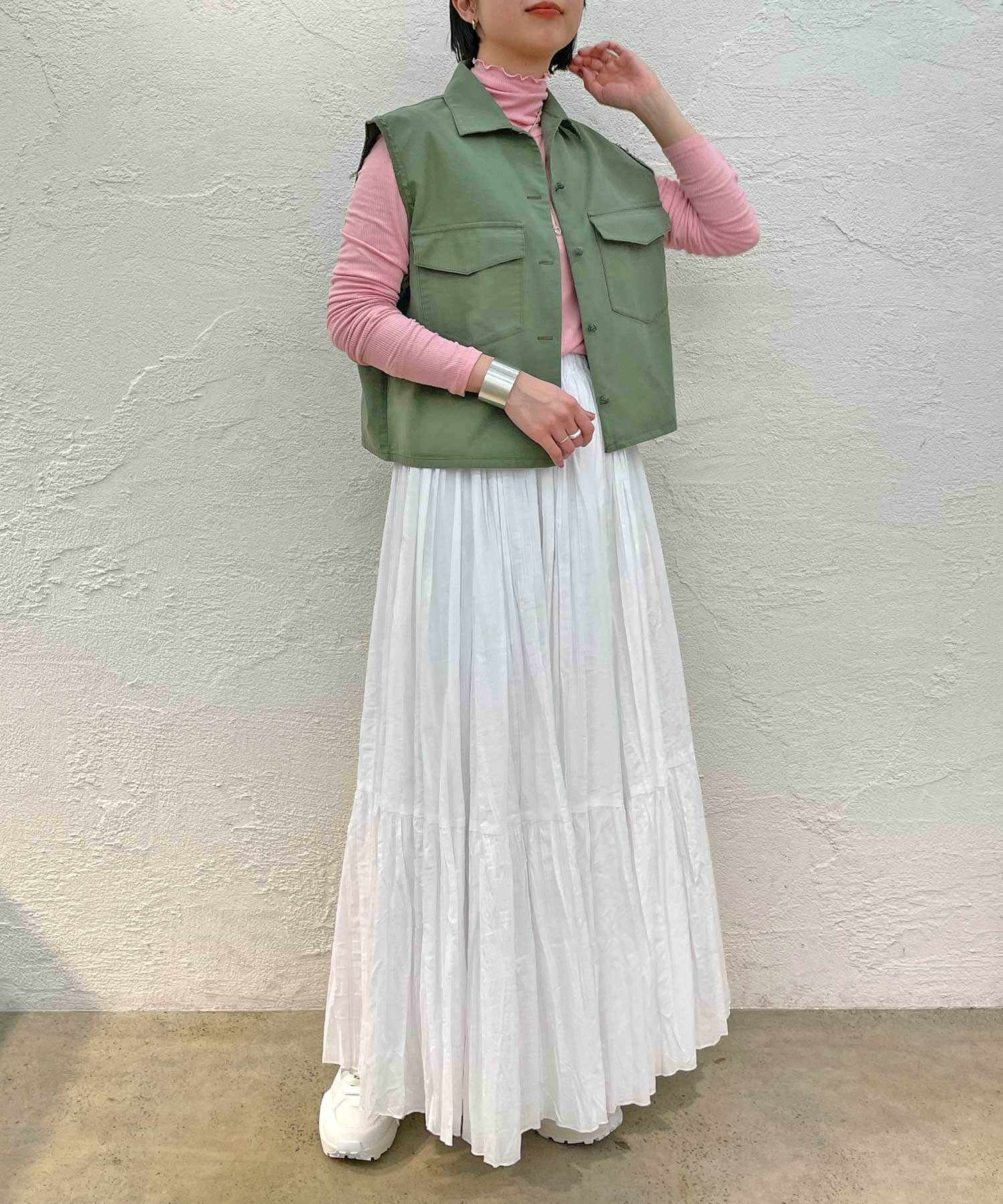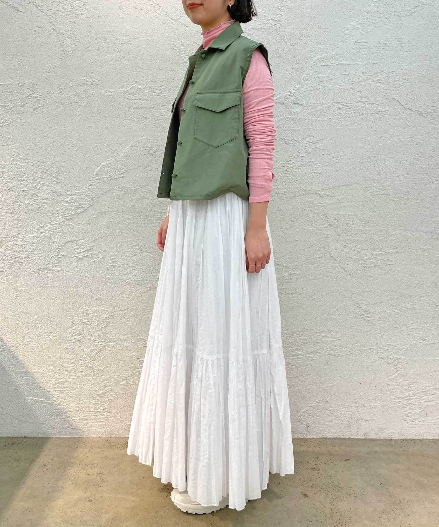 動くたびにきれいに広がるシルエットのコットンワッシャースカート